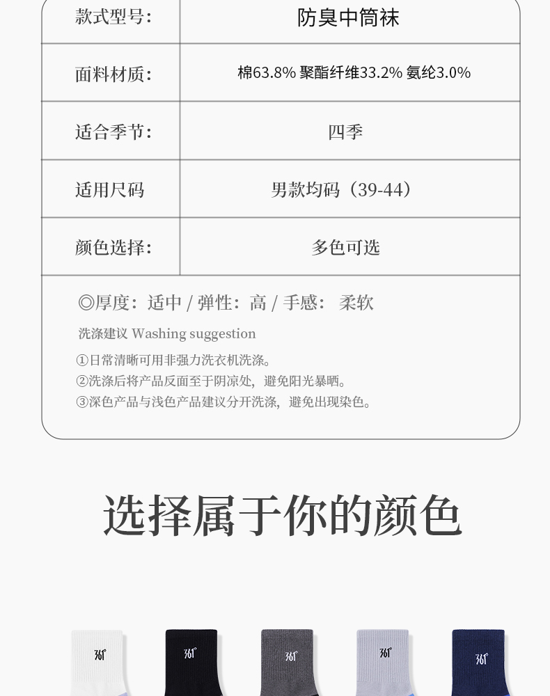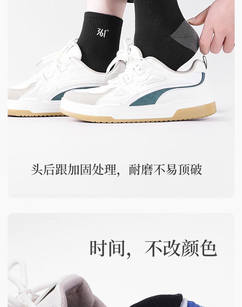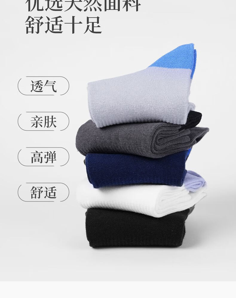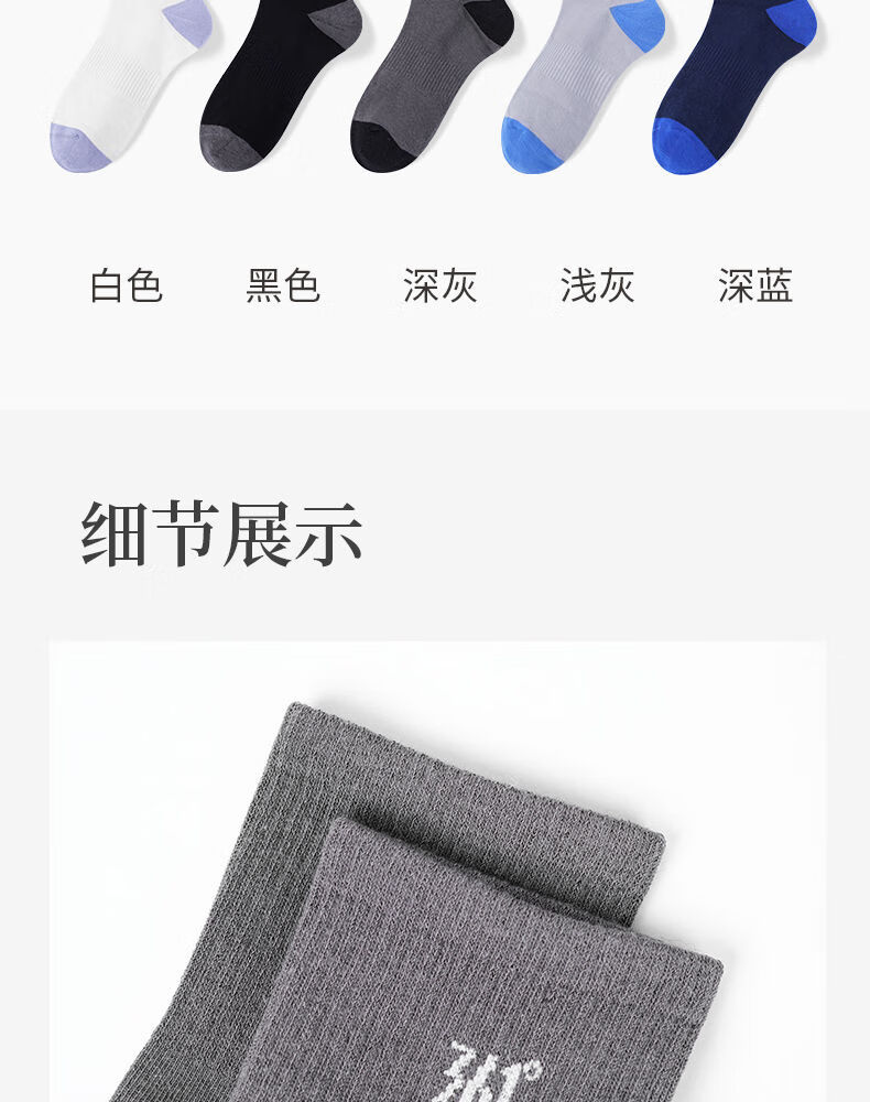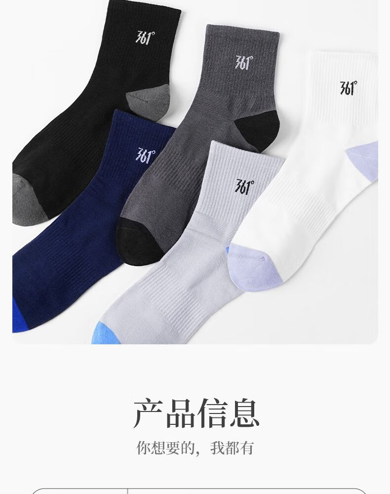 361°男士袜子男棉袜透气吸汗长筒袜抗菌防臭休闲舒适撞色中筒运动袜 混色10双装