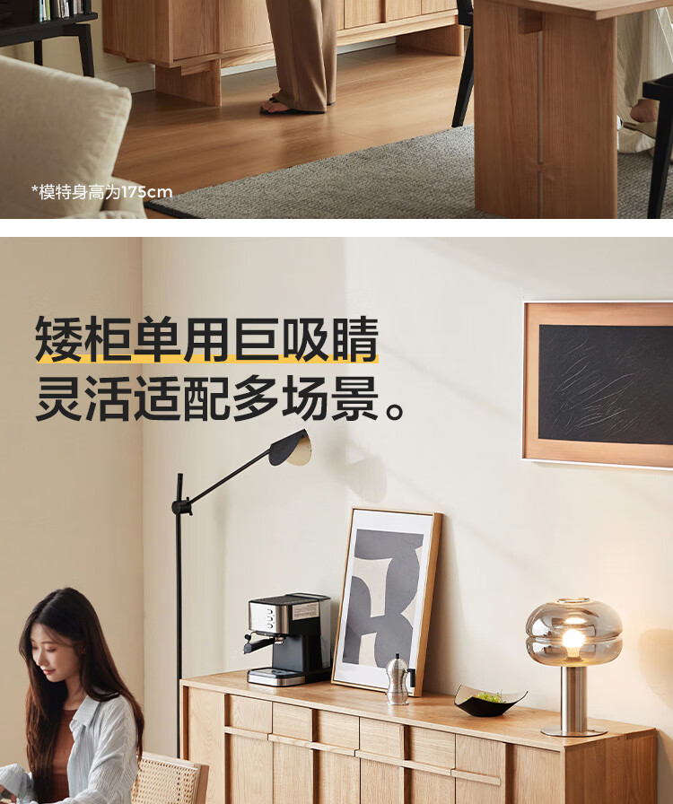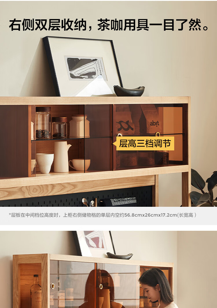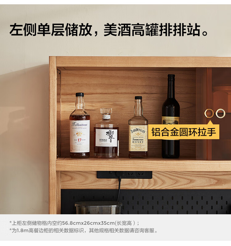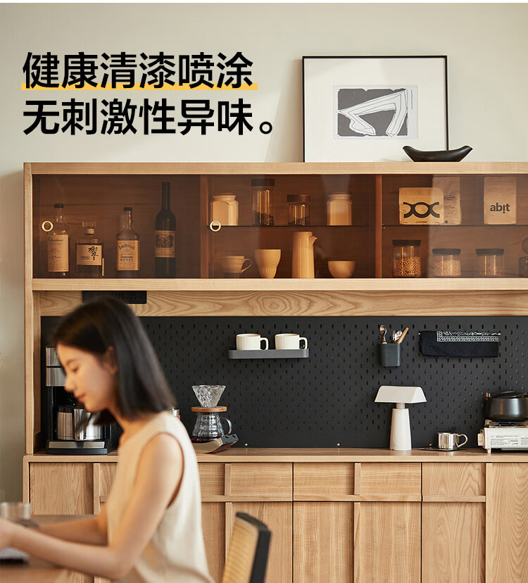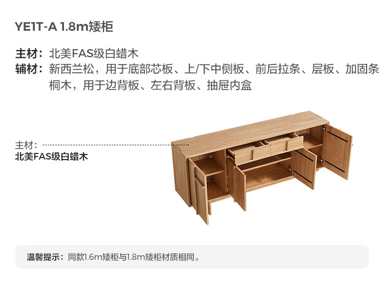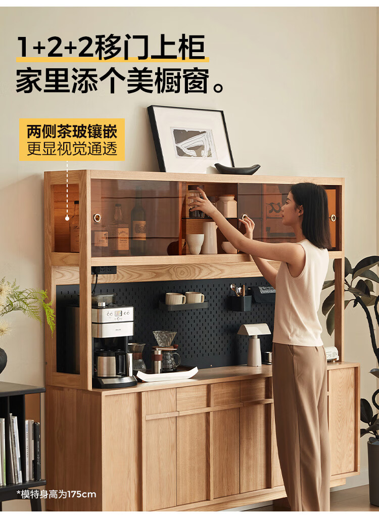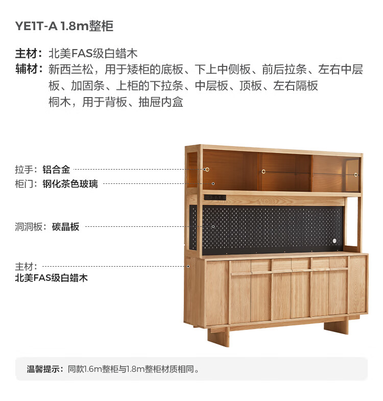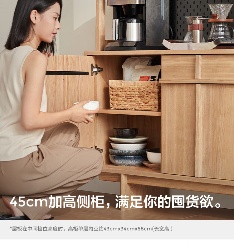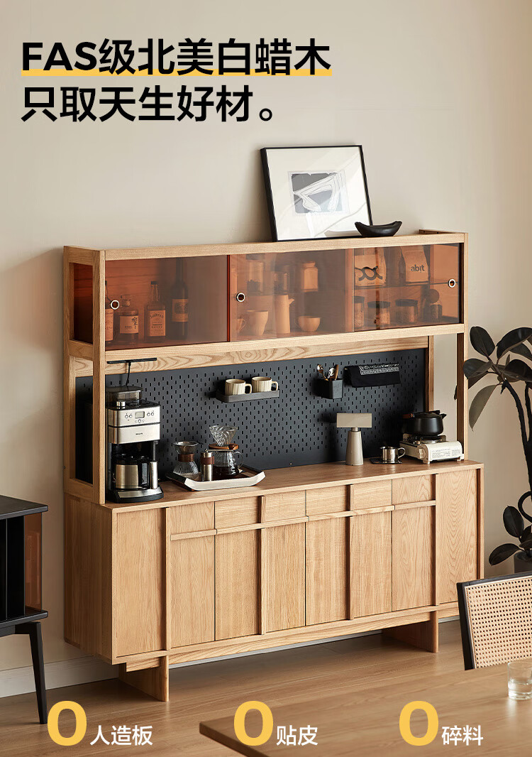 林氏家居北欧风白蜡木实木餐边柜靠墙一体储物柜置物客厅木业续木系列YE1T 【小麦色】1.8m整柜 1.8m