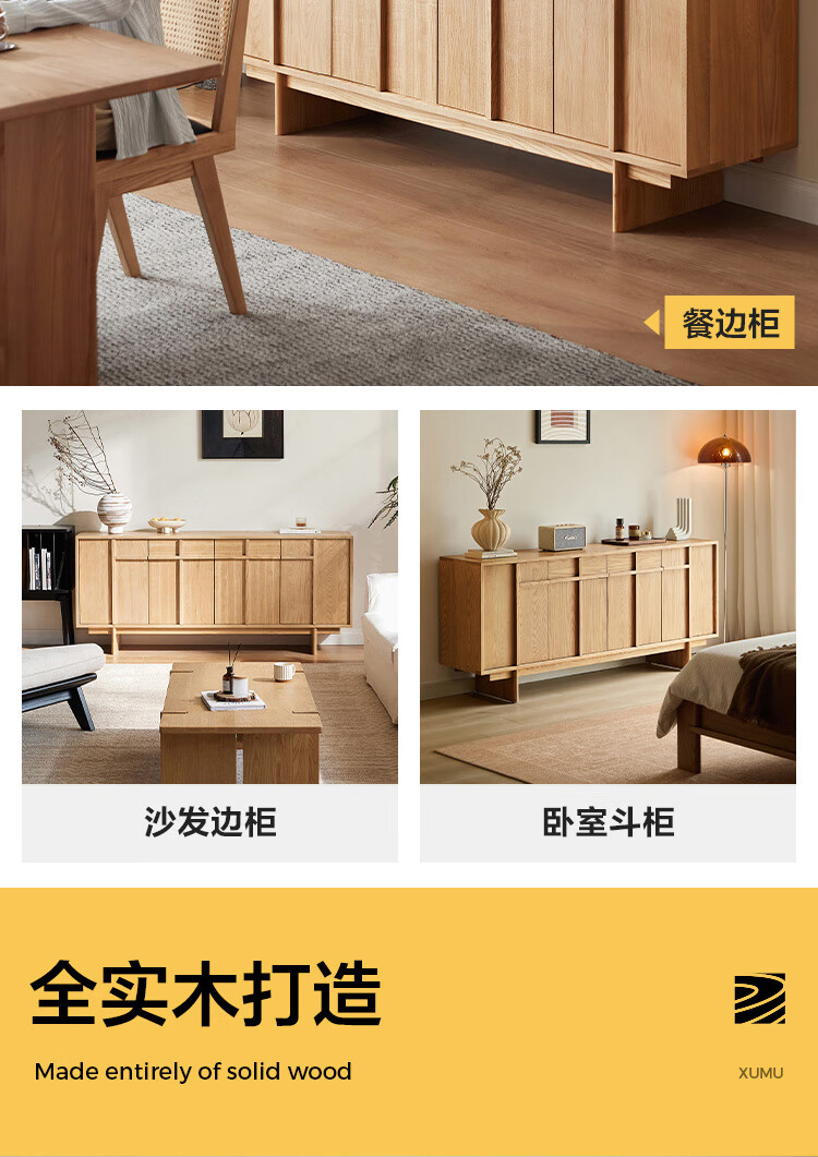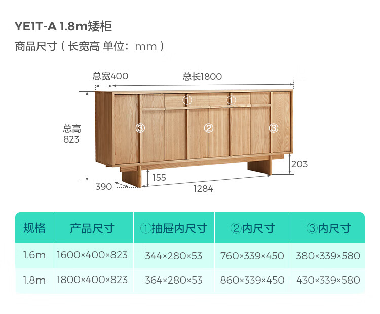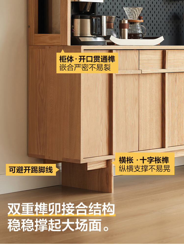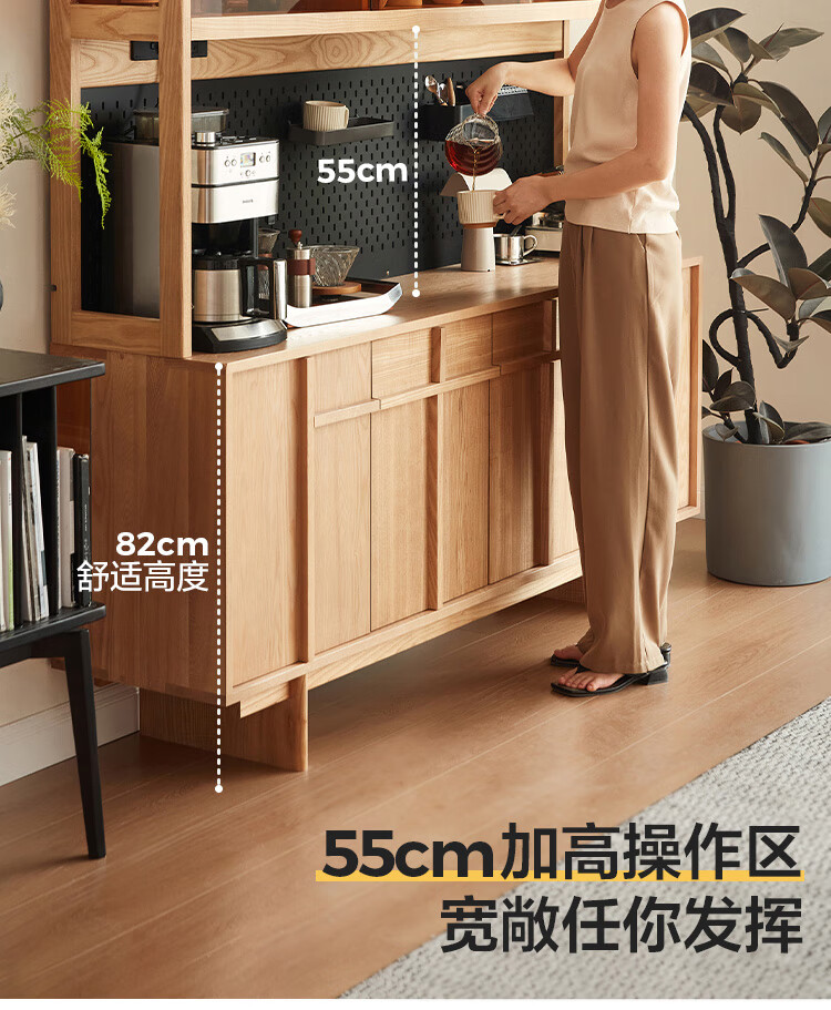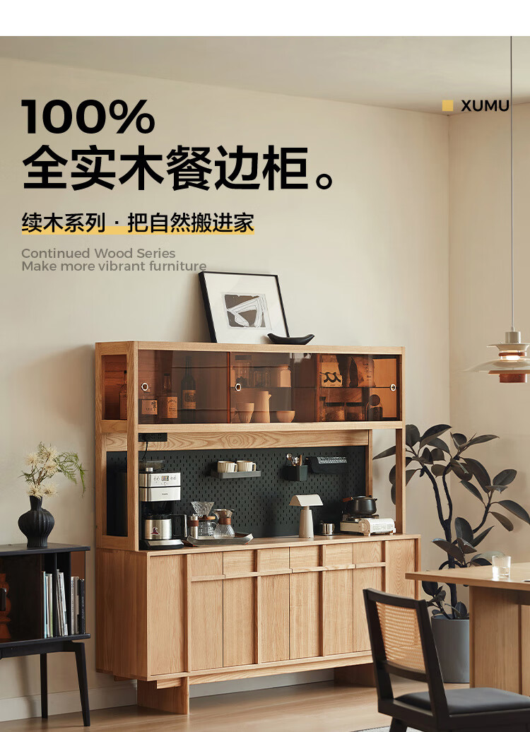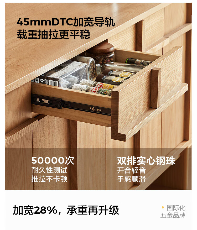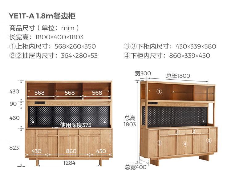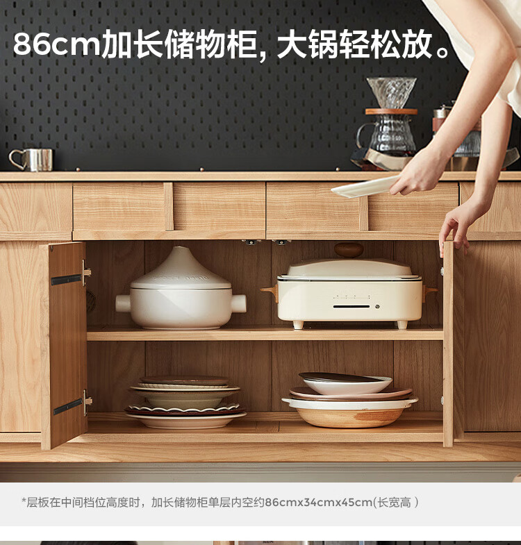 林氏家居北欧风白蜡木实木餐边柜靠墙一体储物柜置物客厅木业续木系列YE1T 【小麦色】1.8m整柜 1.8m