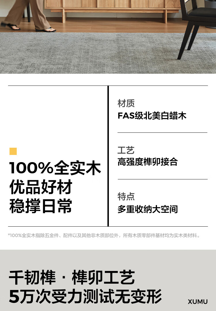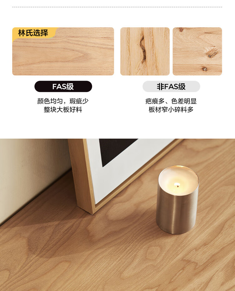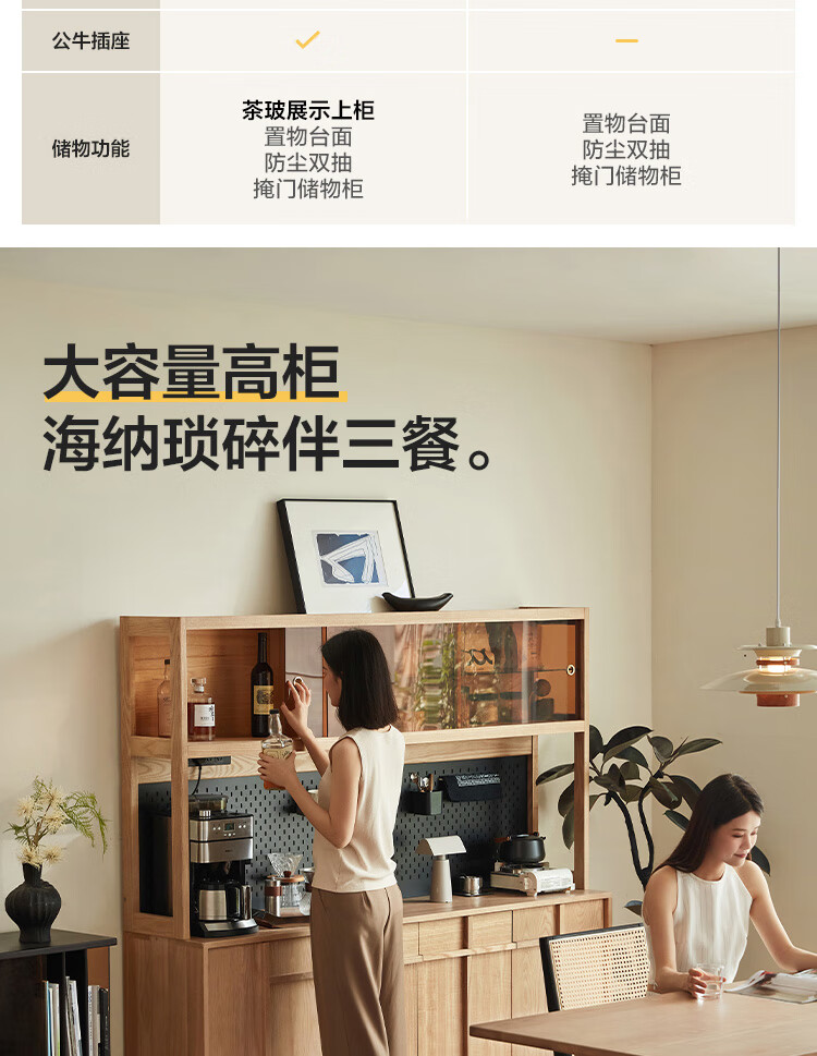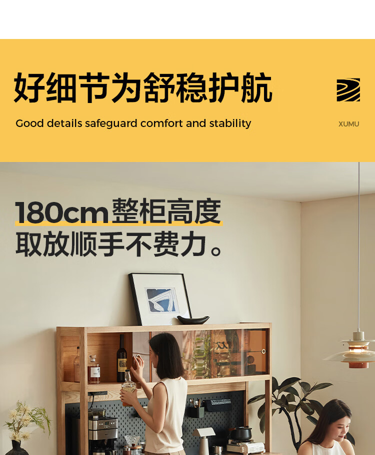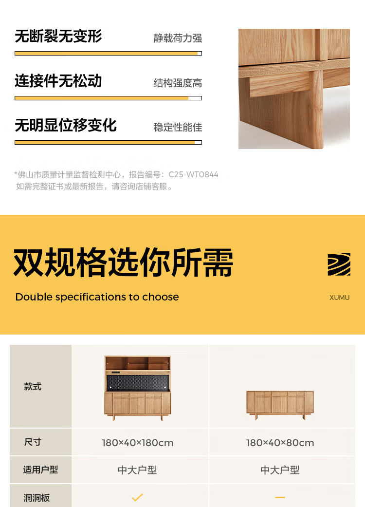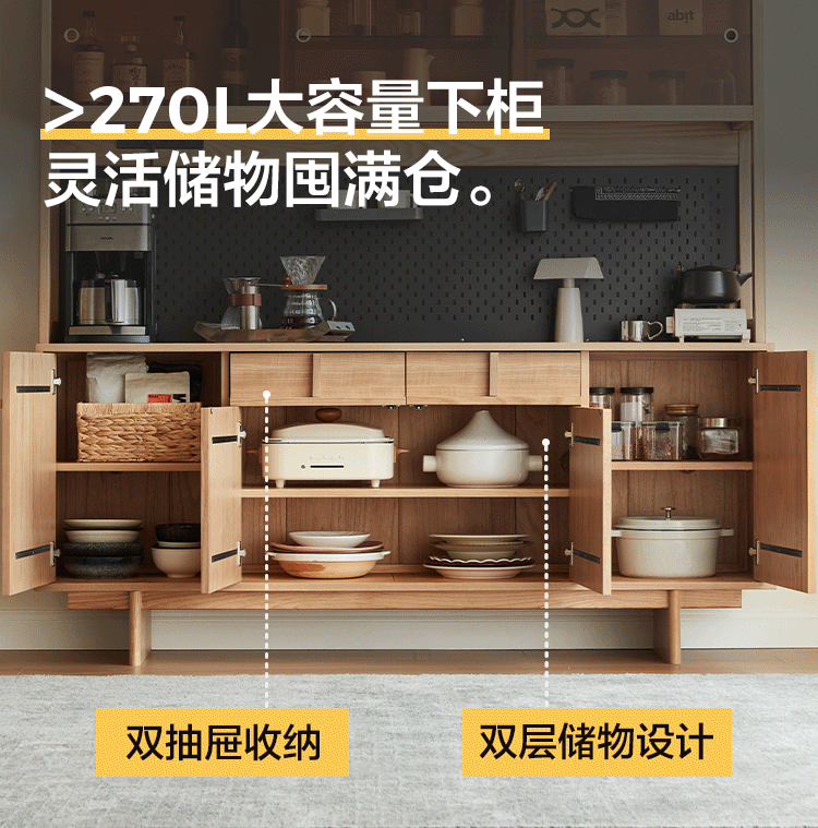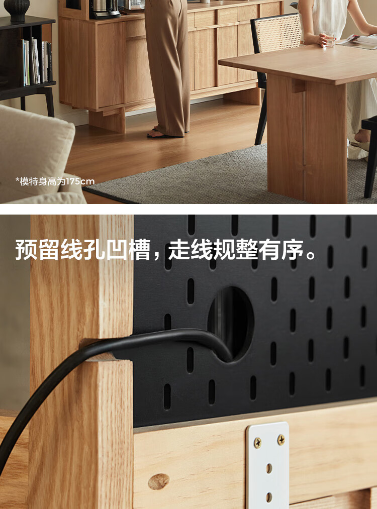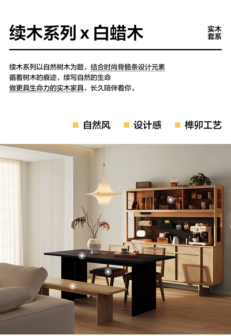 林氏家居北欧风白蜡木实木餐边柜靠墙一体储物柜置物客厅木业续木系列YE1T 【小麦色】1.8m整柜 1.8m