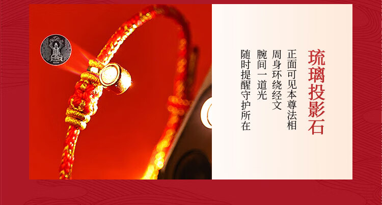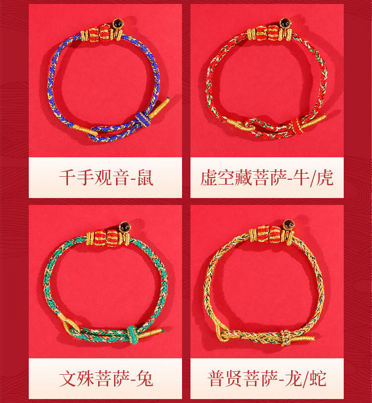 锦福五台山八大守护神手绳手工编织楞严咒投影石本命年红绳十二生肖 阿弥陀佛守护手绳-生肖狗猪