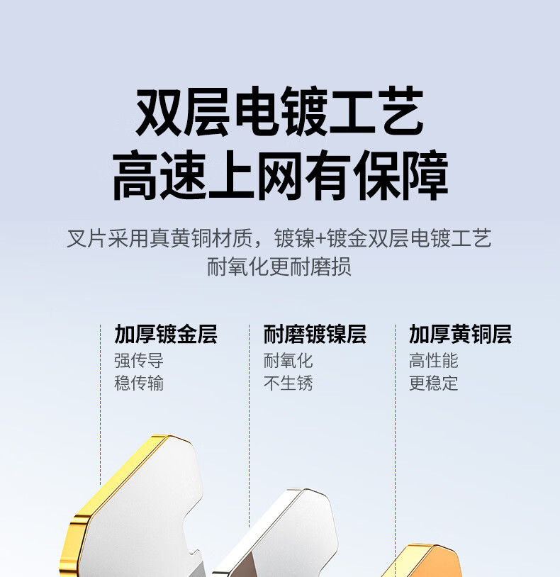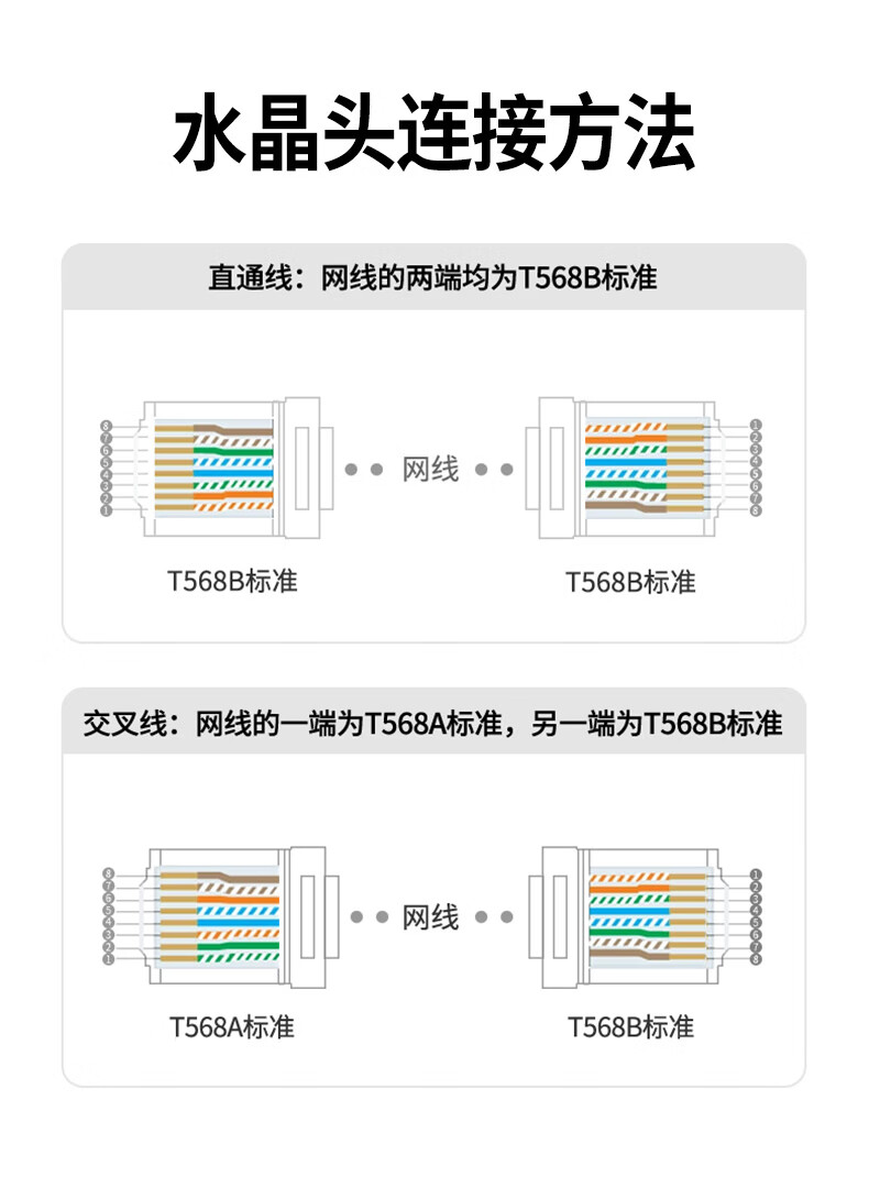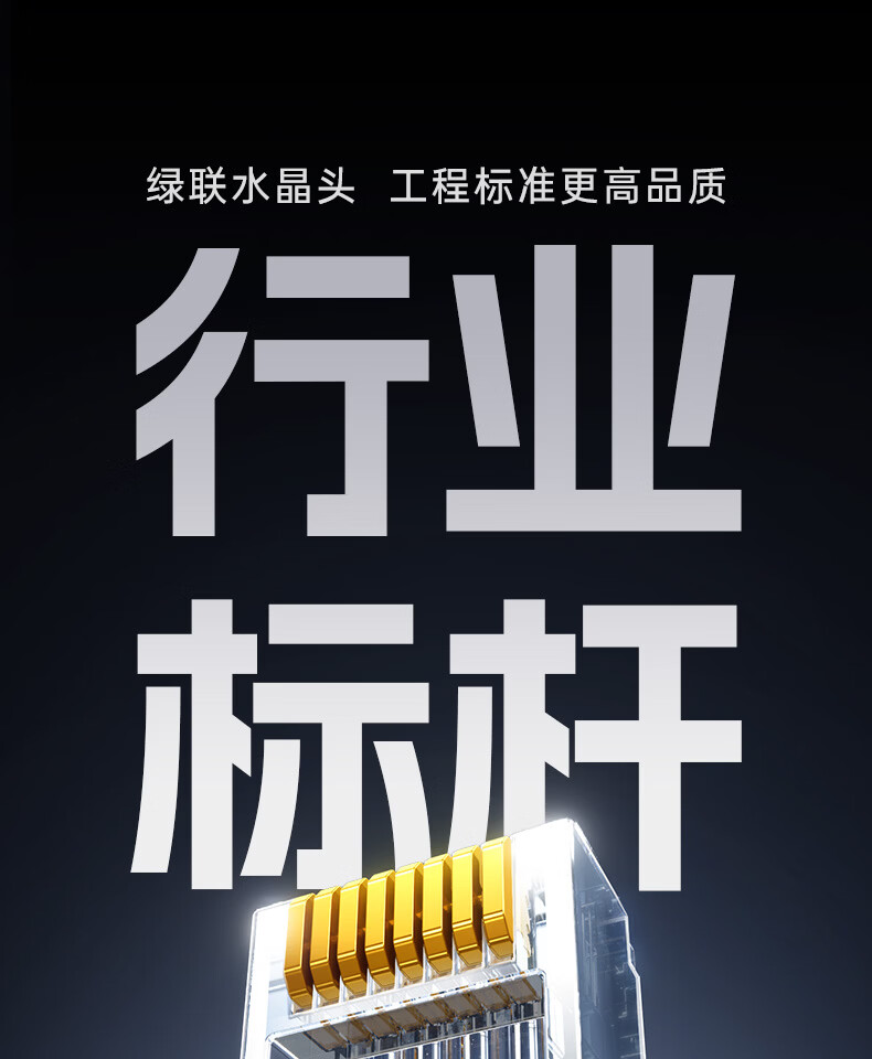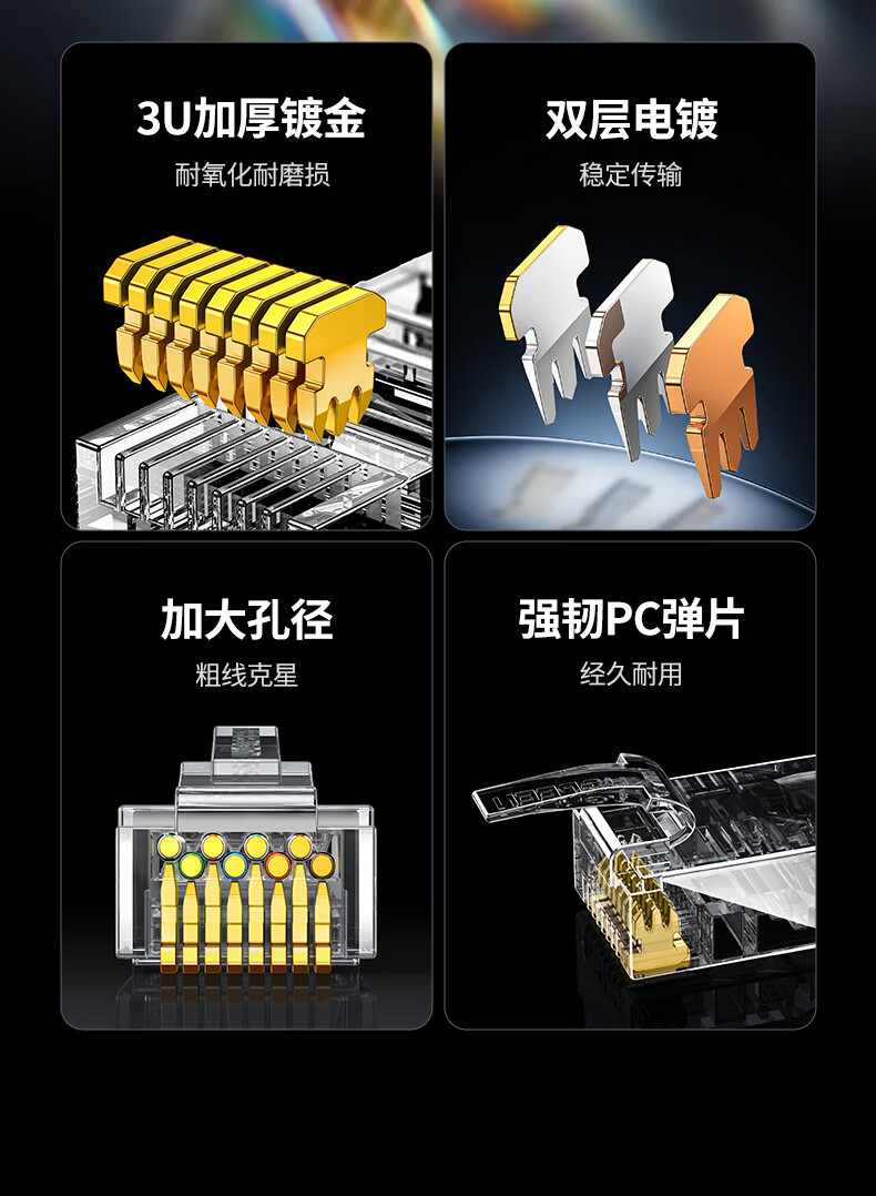 绿联六类网线水晶头 6类千兆网络接头 CAT6镀金工程级RJ45电脑连接器适用超六类万兆非屏蔽网线10个
