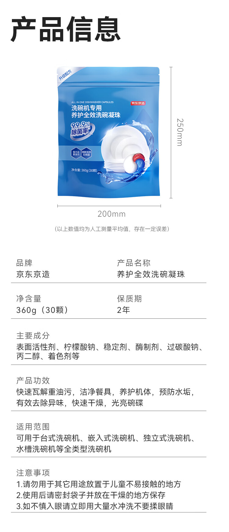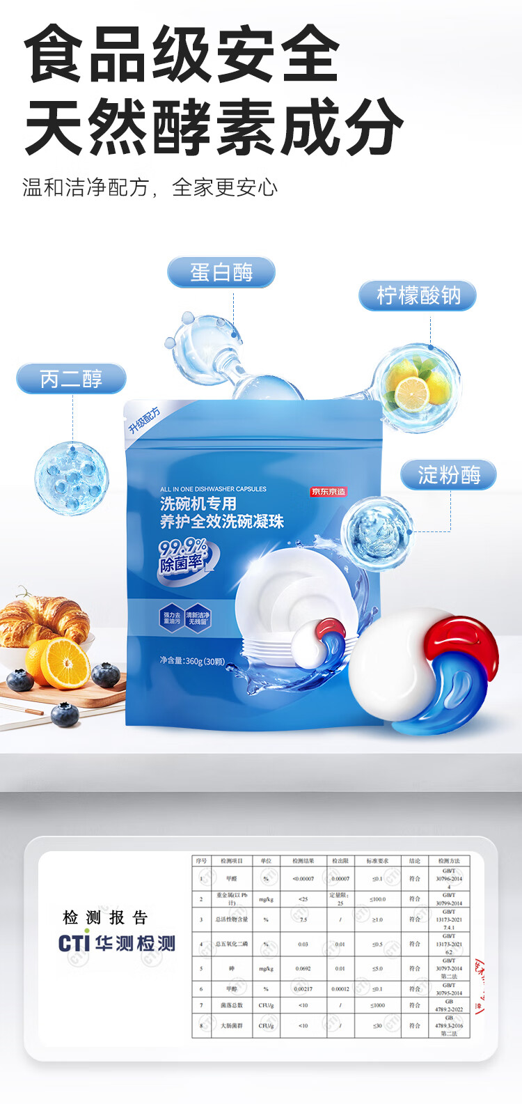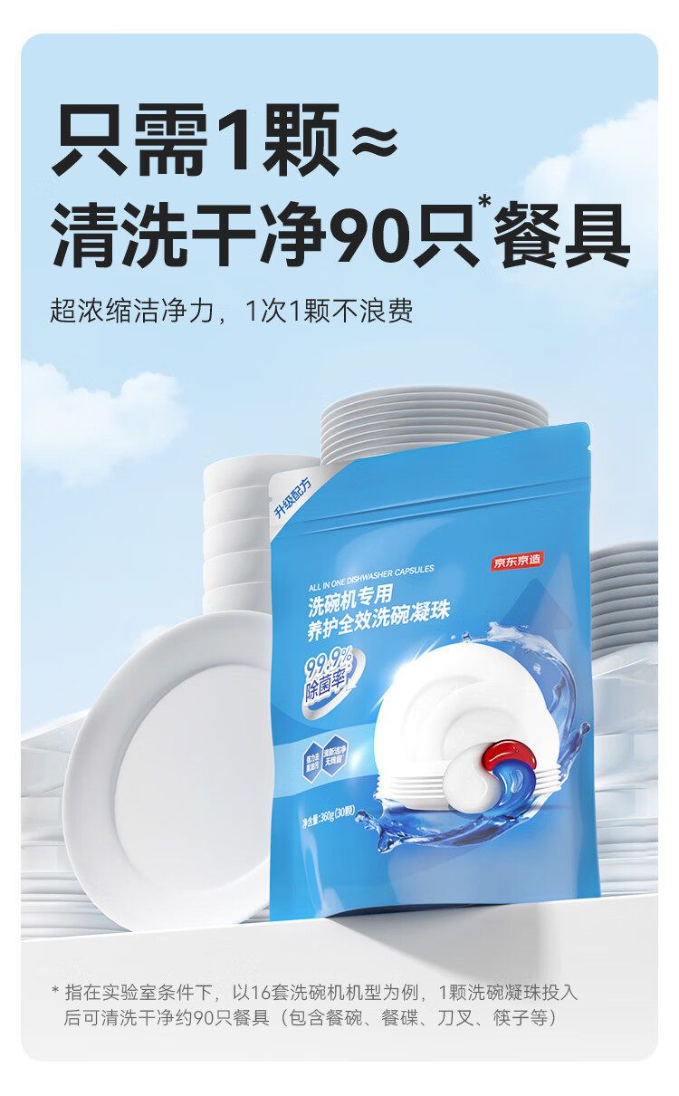 京东京造洗碗凝珠30颗 洗碗机专用洗涤剂清洁养护 浓缩洗洁精洗碗粉洗碗块