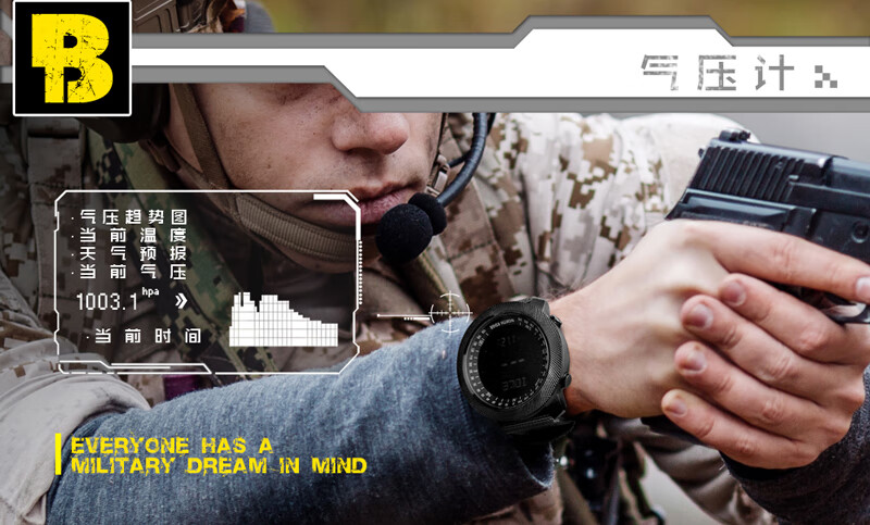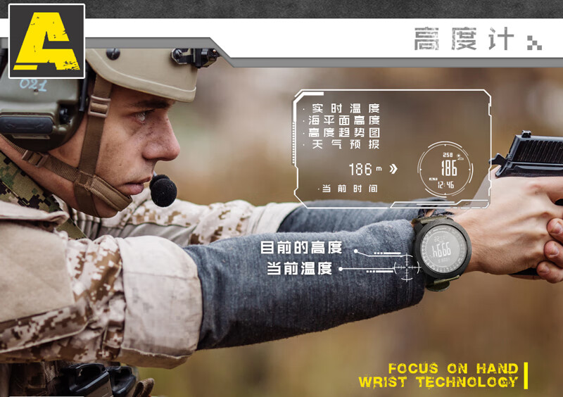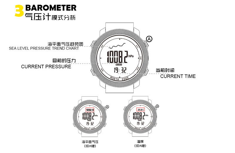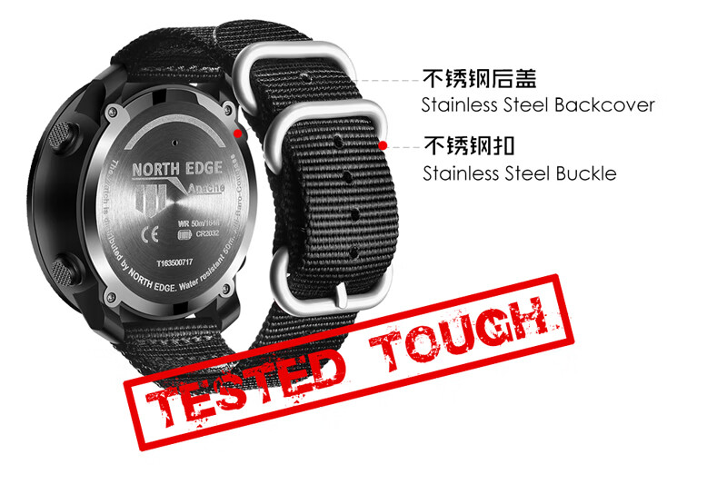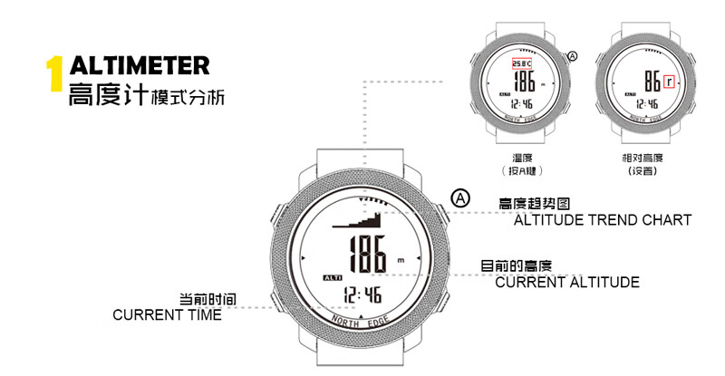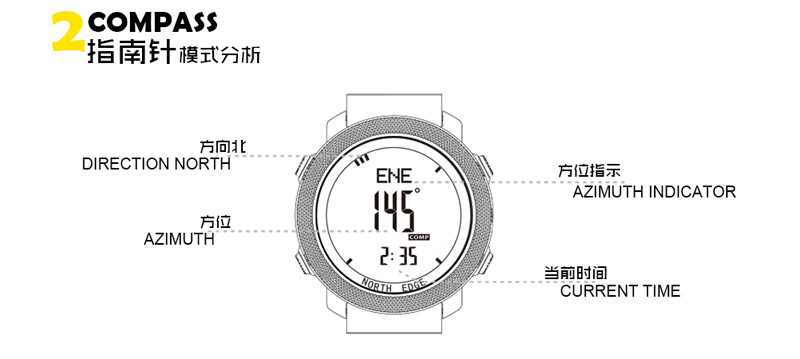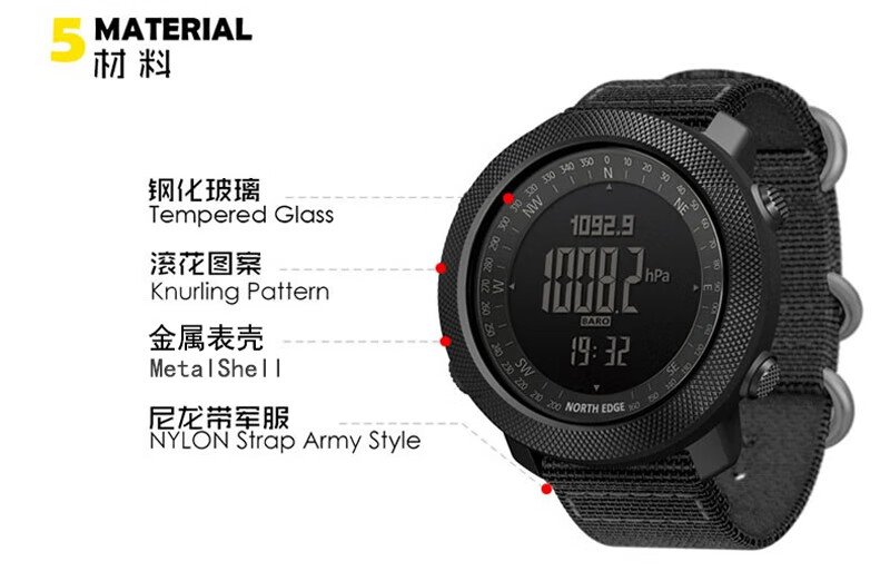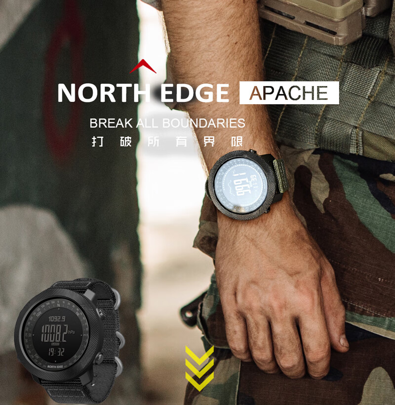 NORTH EDGE大表盘军事风运动电子手表指南针高度气压防水闹钟秒表温度计男士