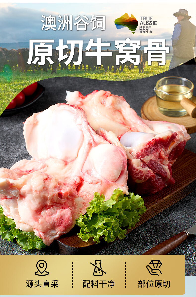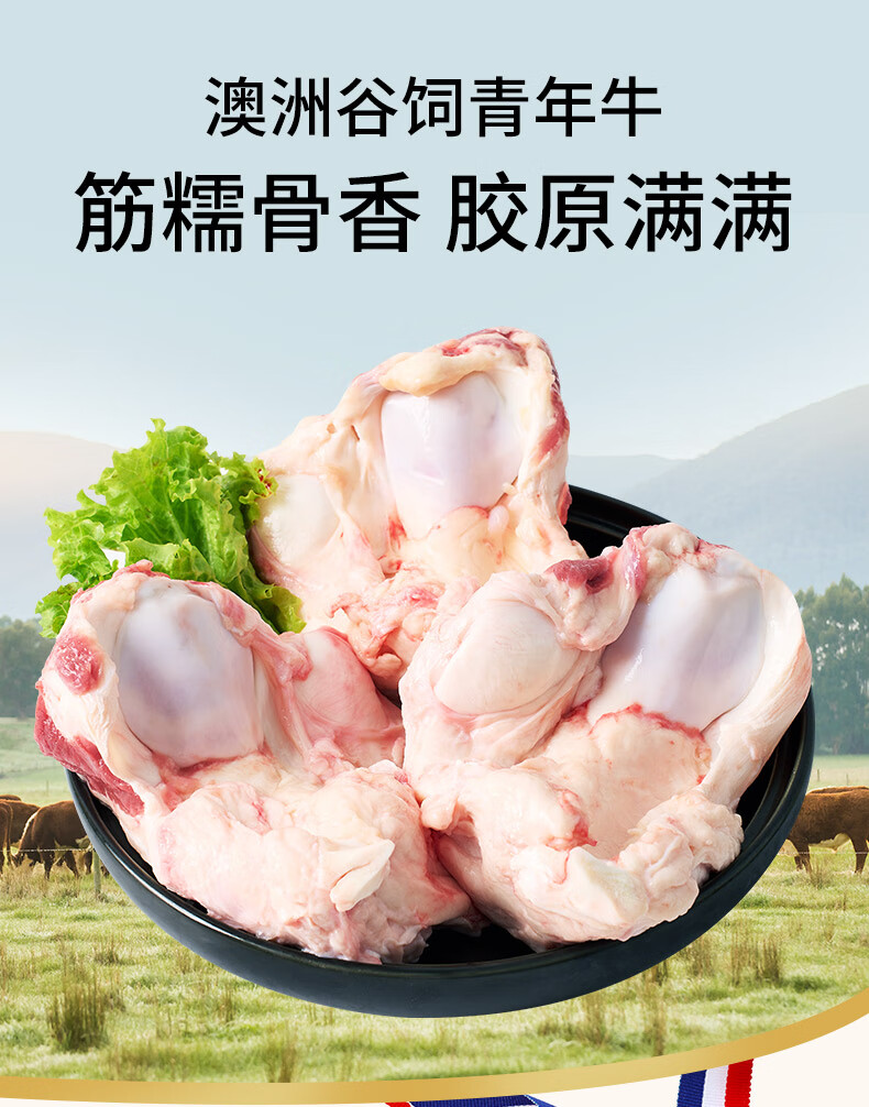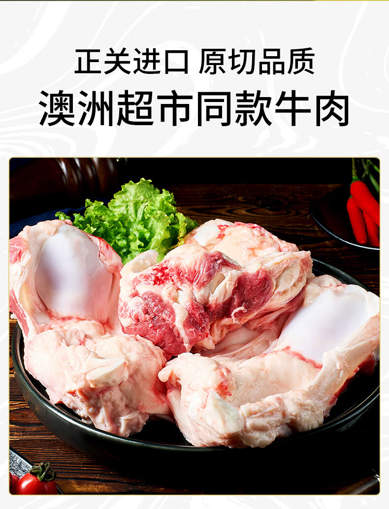 卓宸 澳洲Coles谷饲牛窝骨净重4斤 牛膝盖骨牛大骨火锅炖煮 源头直发