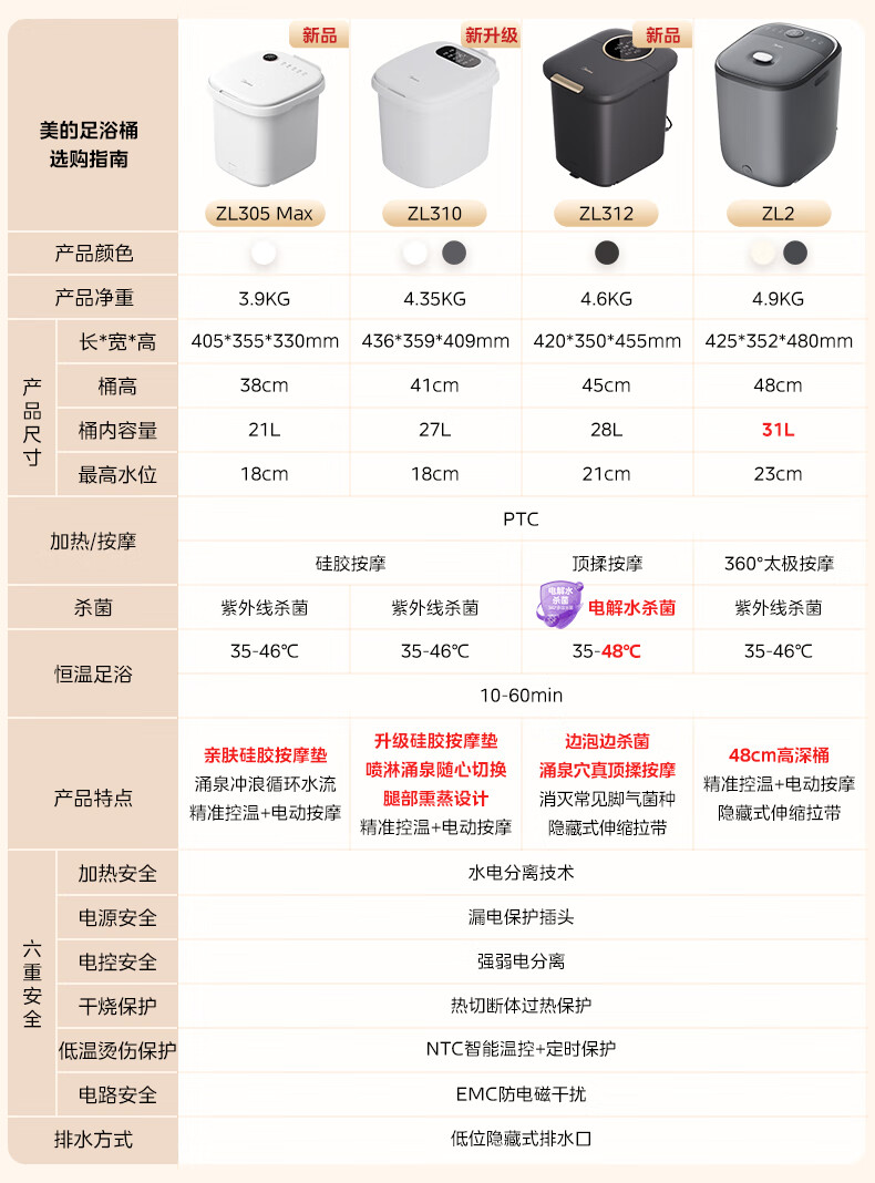 美的(Midea)泡脚桶杀菌洗脚盆加热电动按摩足浴盆理疗泡小腿可拆洗中秋礼物生日送男女友送长辈ZL2雅致灰