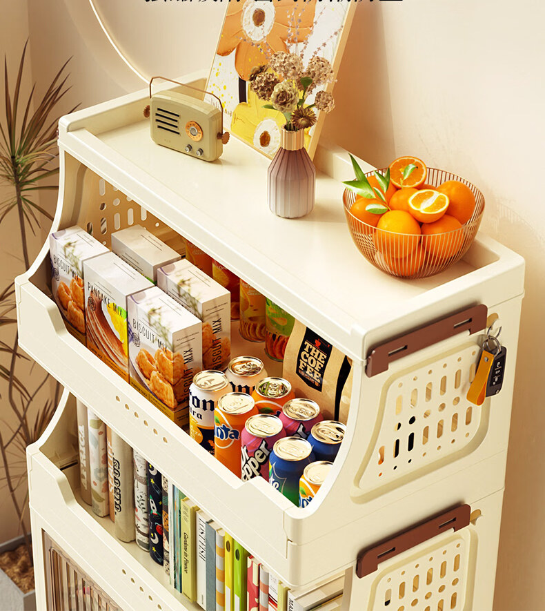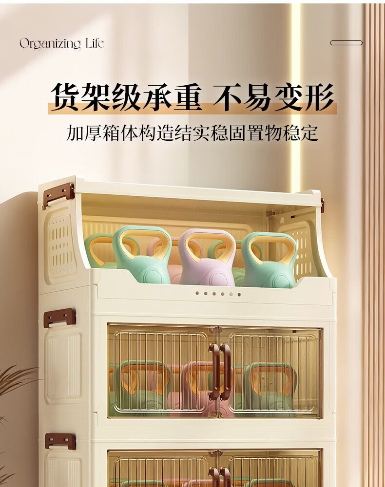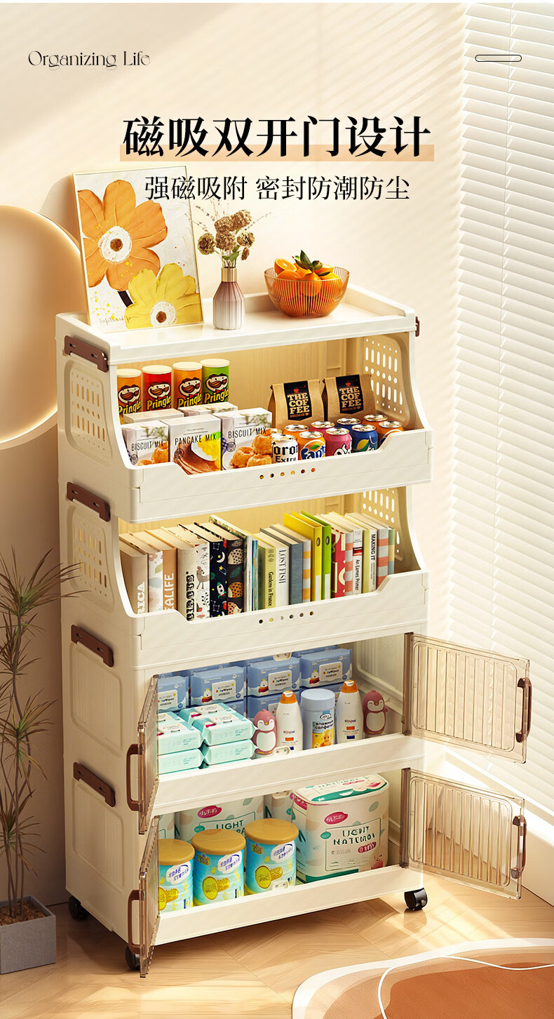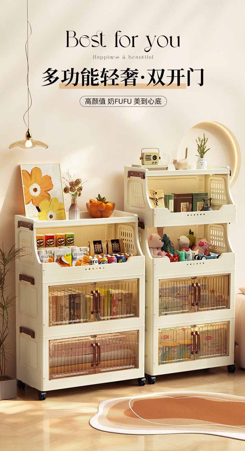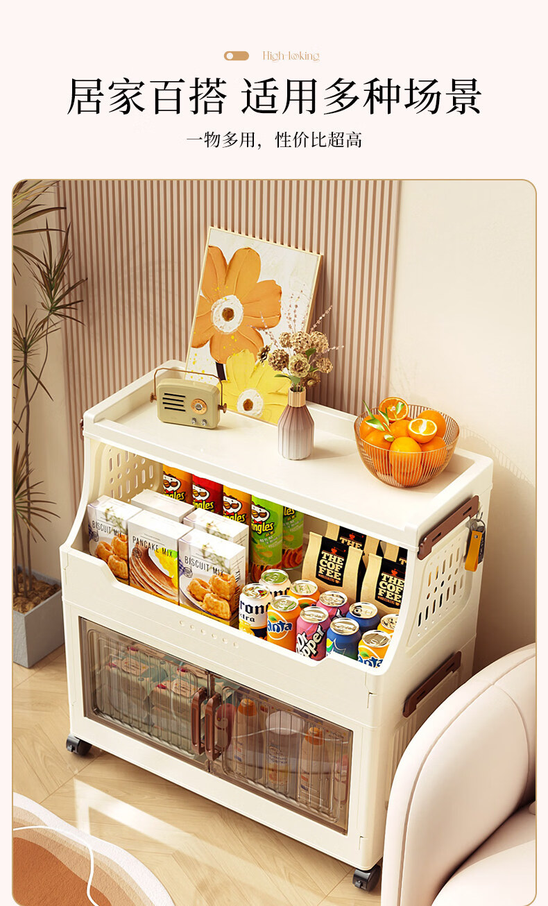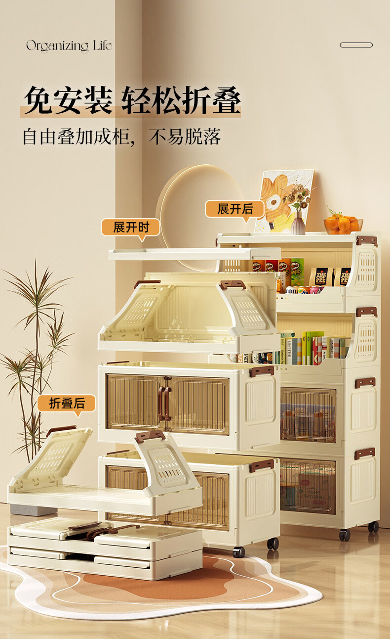 免安装折叠收纳柜客厅零食杂物开口柜卧室床头储物柜多层置物架子 40面宽【免安装/可折叠】 1层置物架+2收纳箱