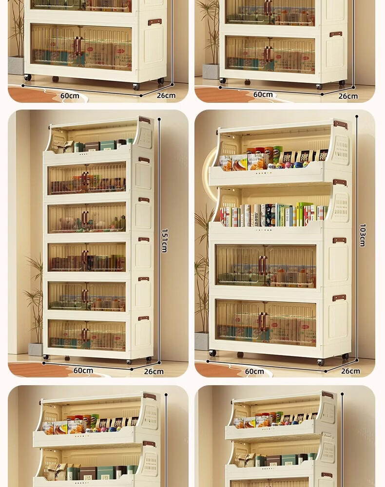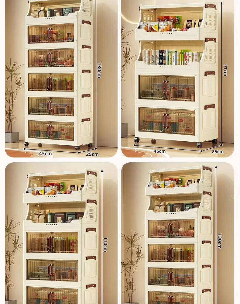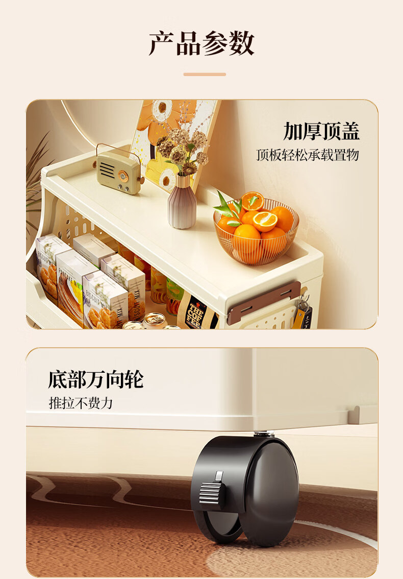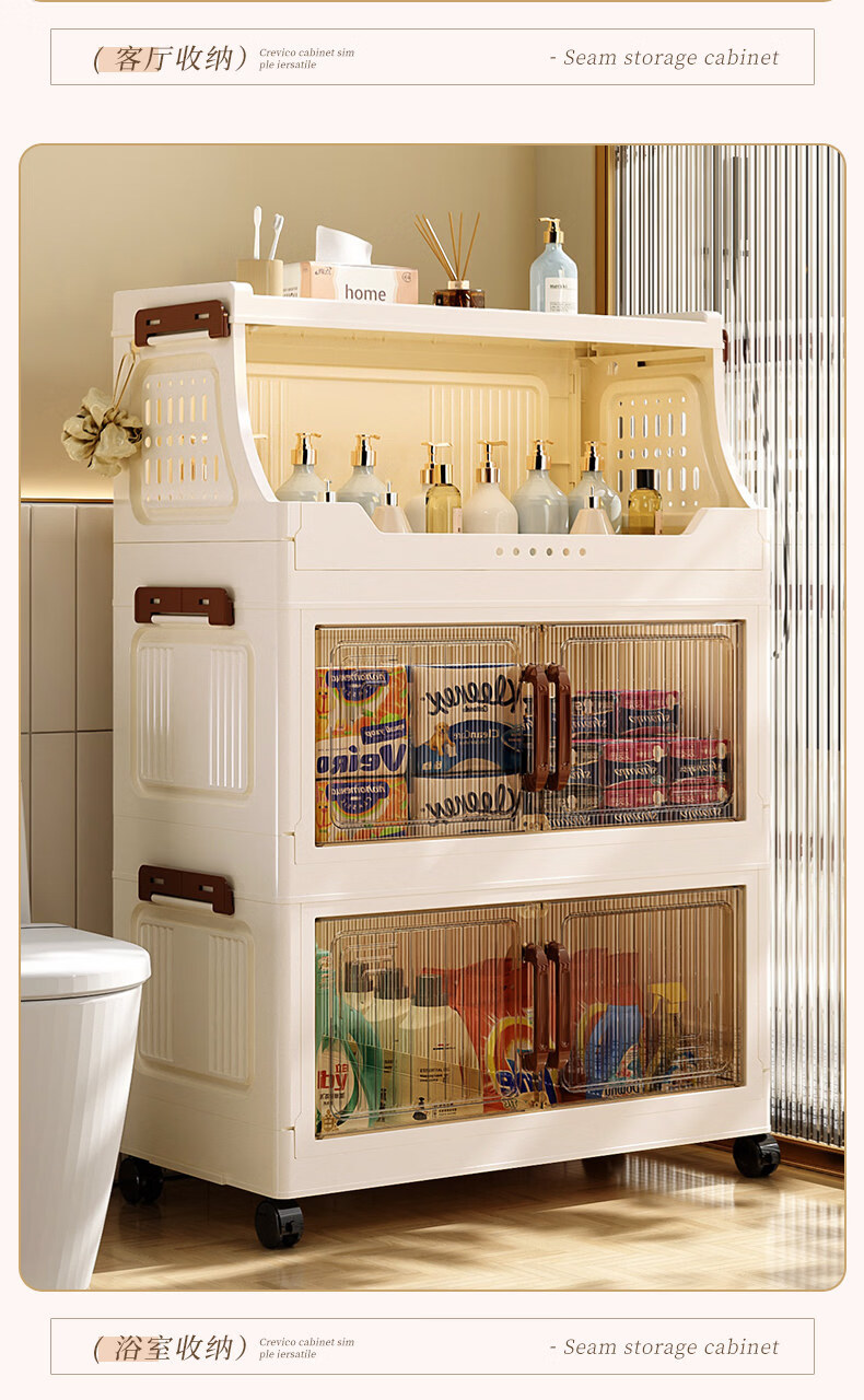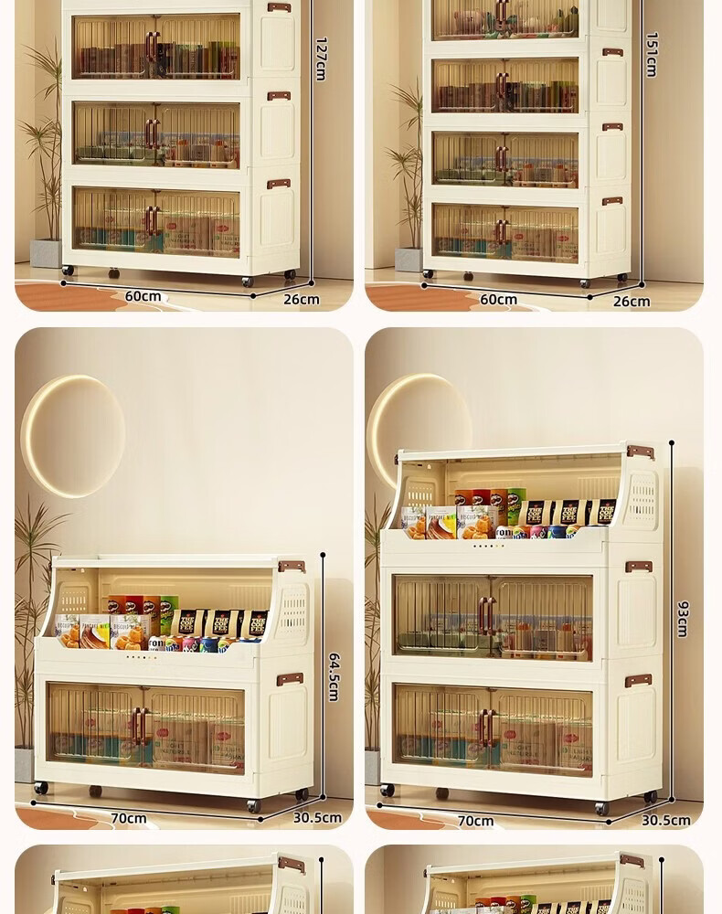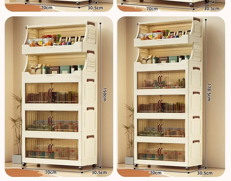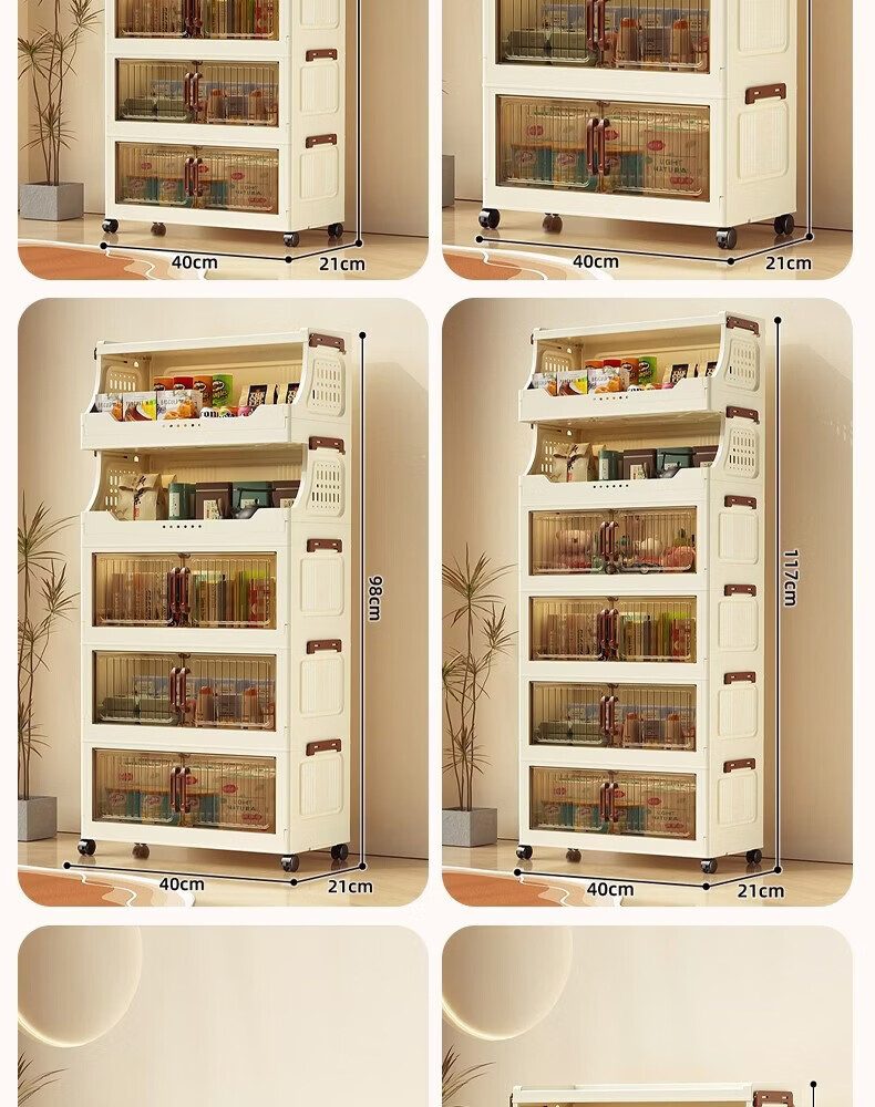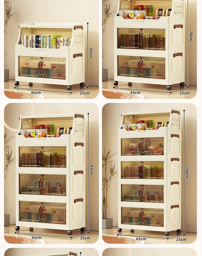 免安装折叠收纳柜客厅零食杂物开口柜卧室床头储物柜多层置物架子 40面宽【免安装/可折叠】 1层置物架+2收纳箱