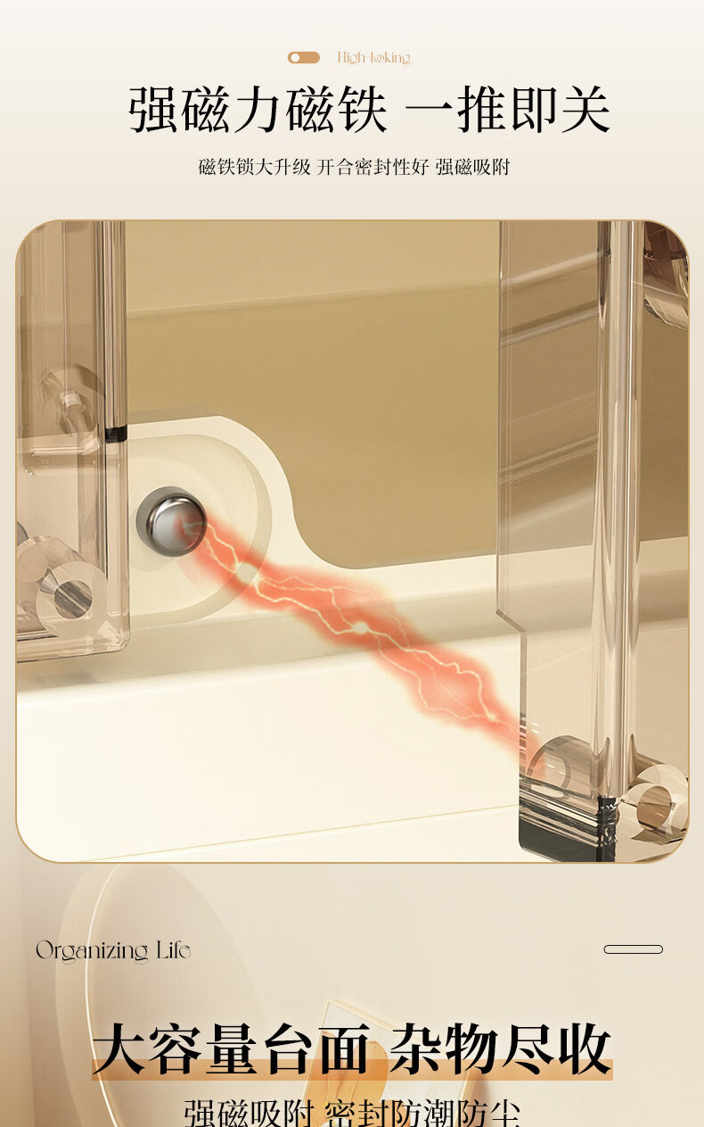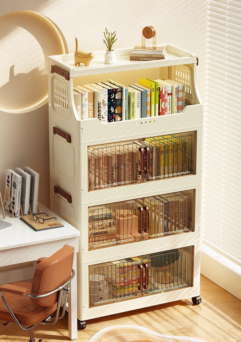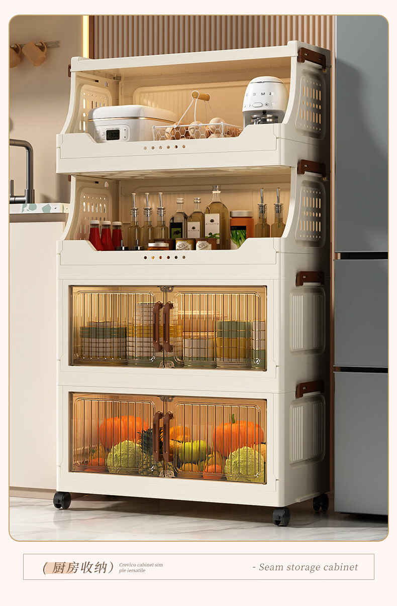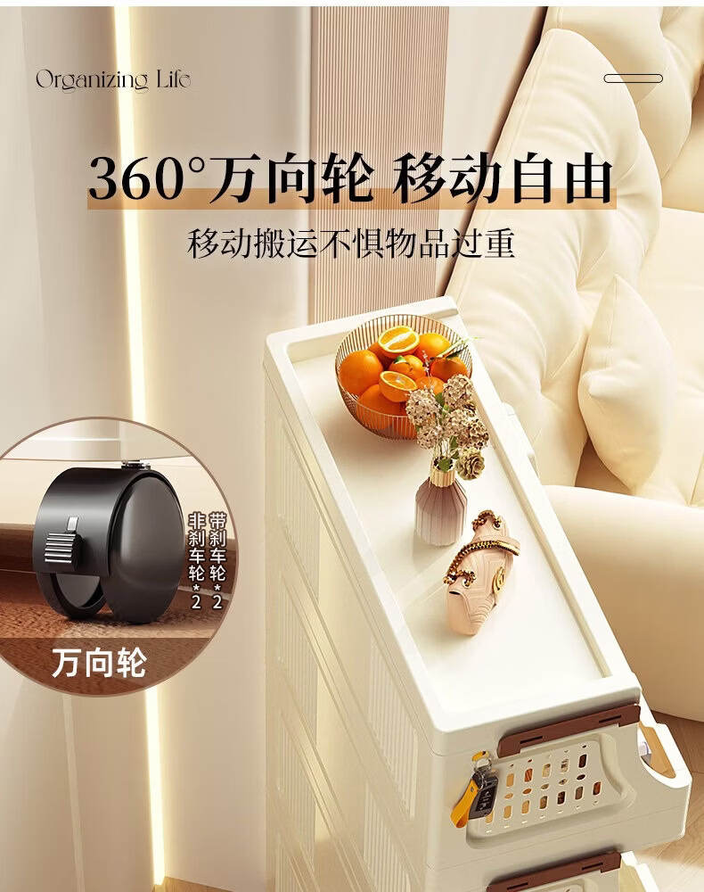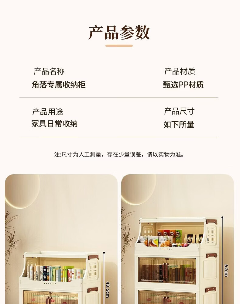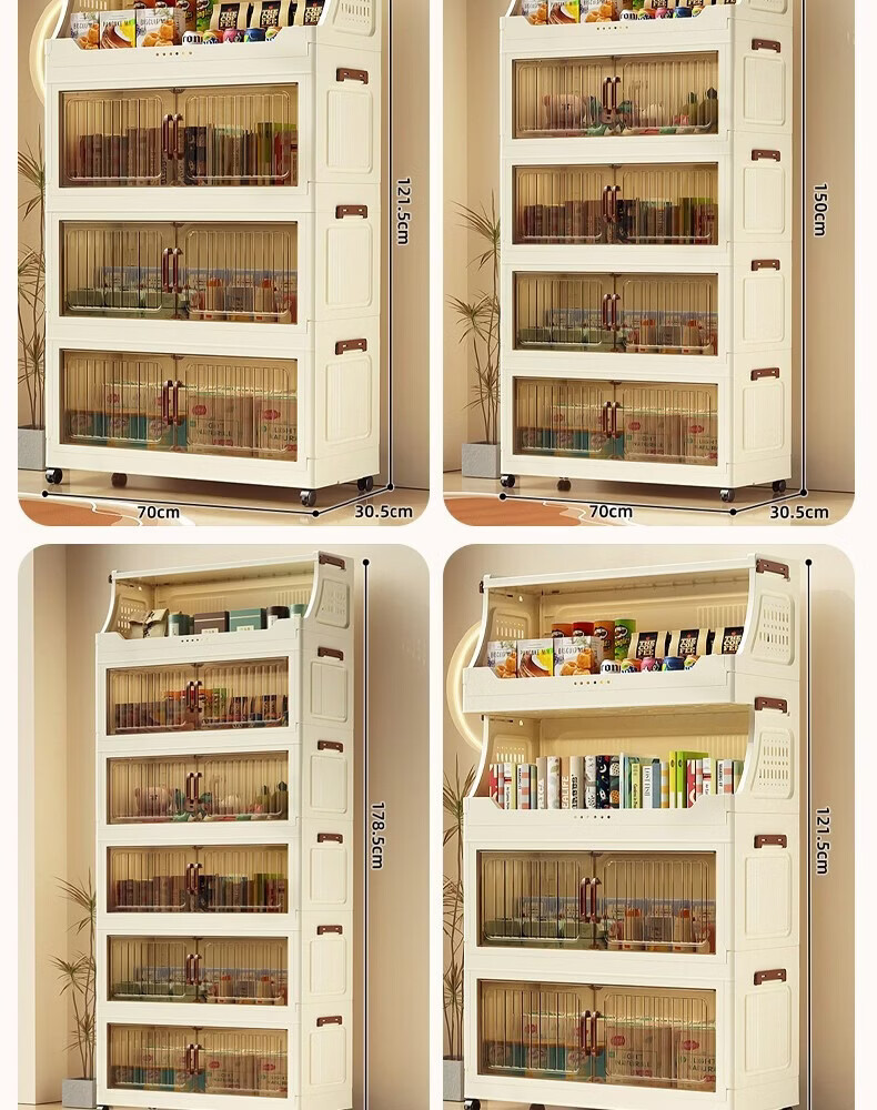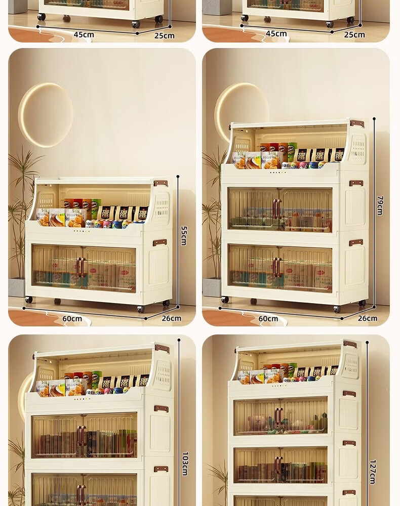 免安装折叠收纳柜客厅零食杂物开口柜卧室床头储物柜多层置物架子 40面宽【免安装/可折叠】 1层置物架+2收纳箱