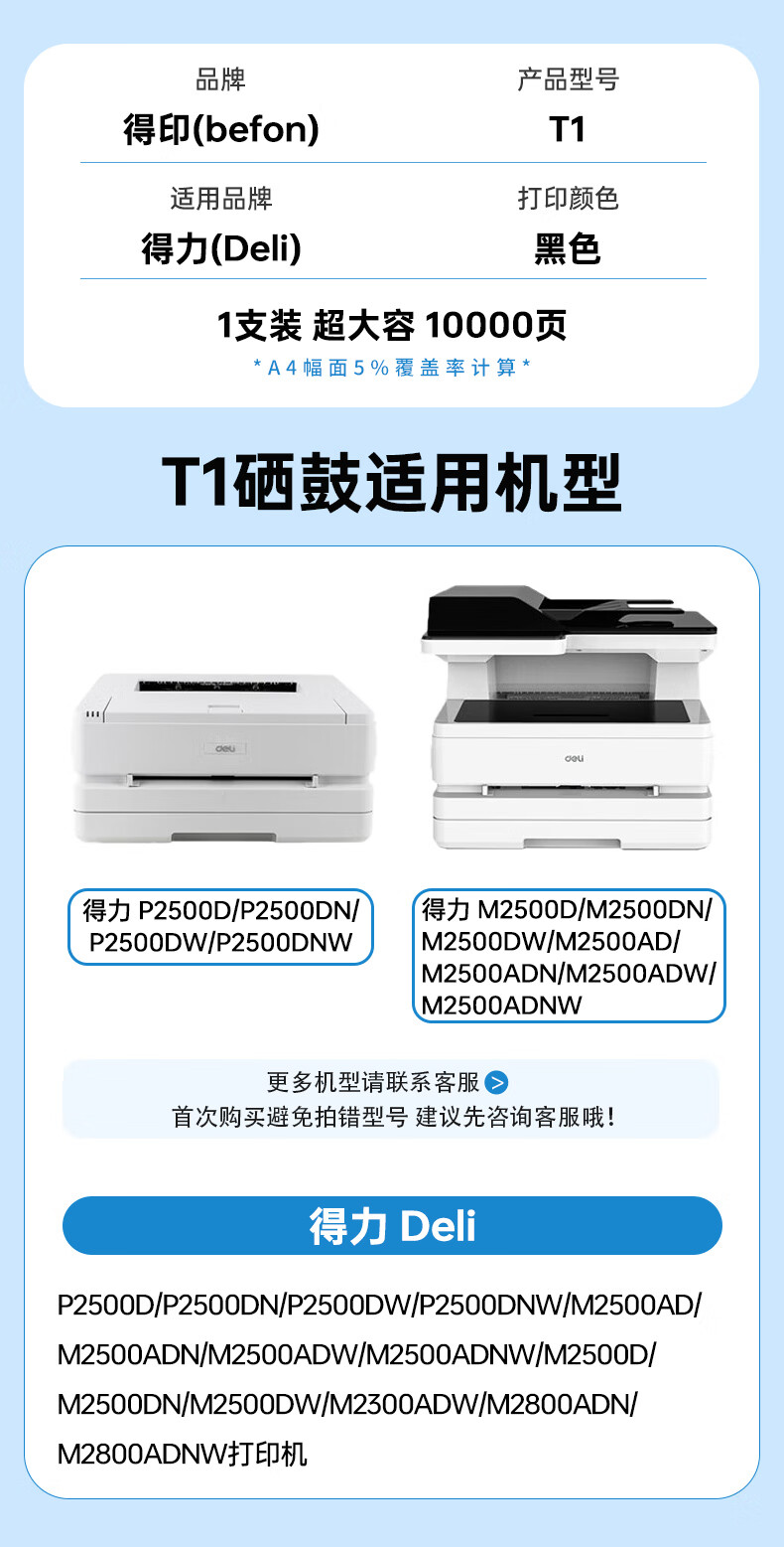 得印T1硒鼓适用得力M2500D/DN/DW/ADNW P2500D/DN/DW/DNW/M2300ADW/M2800ADNW打印机粉盒墨盒超大容量