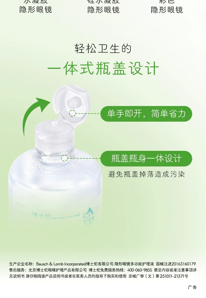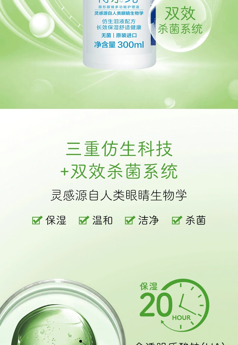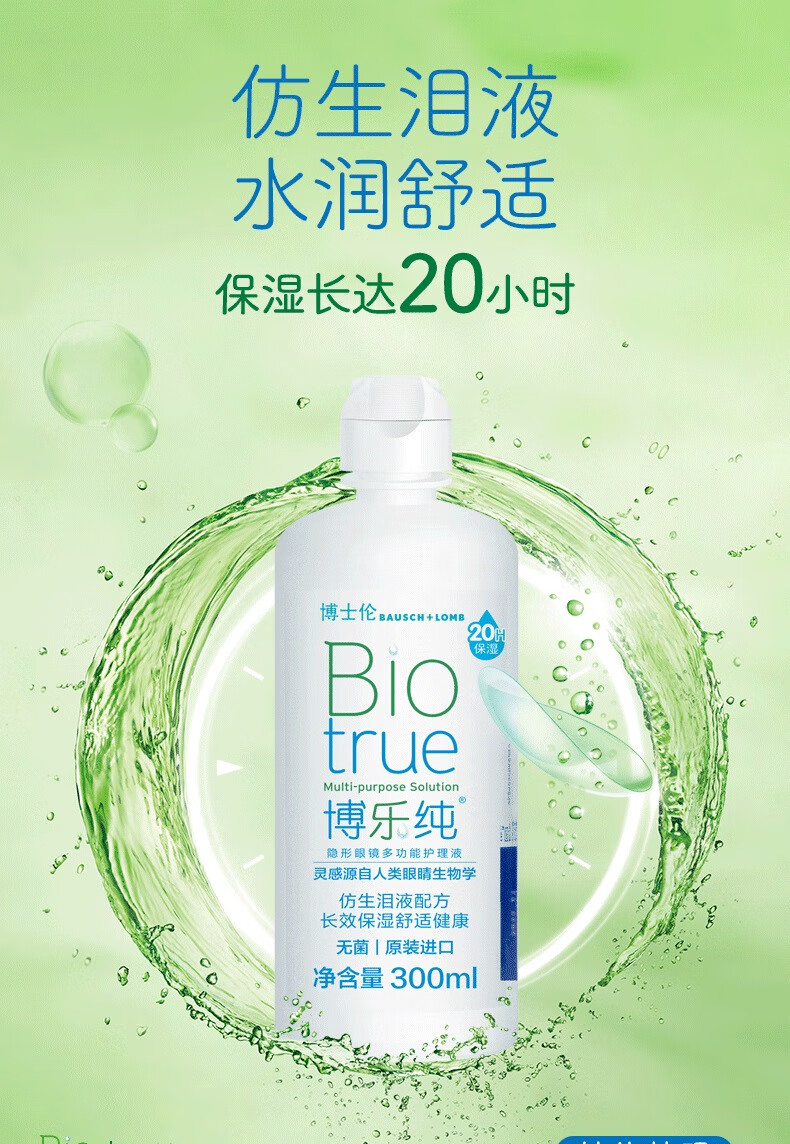 博士伦博乐纯隐形眼镜水美瞳护理液300ml*3隐形眼镜多功能护理液年货节
