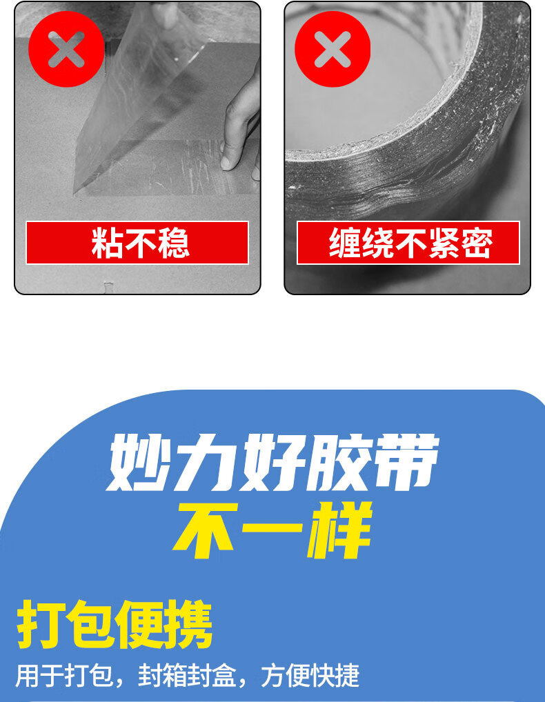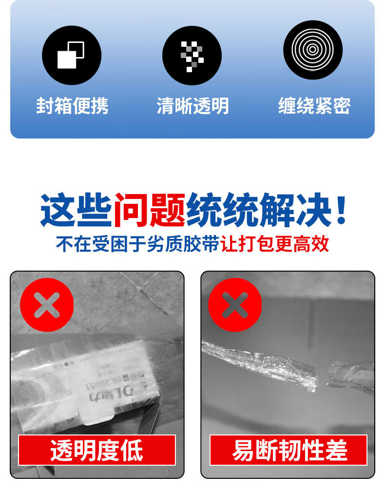透明胶带 高粘性抗拉扯不易残胶 搬家打包适用 透明白【宽40mm*30米长】