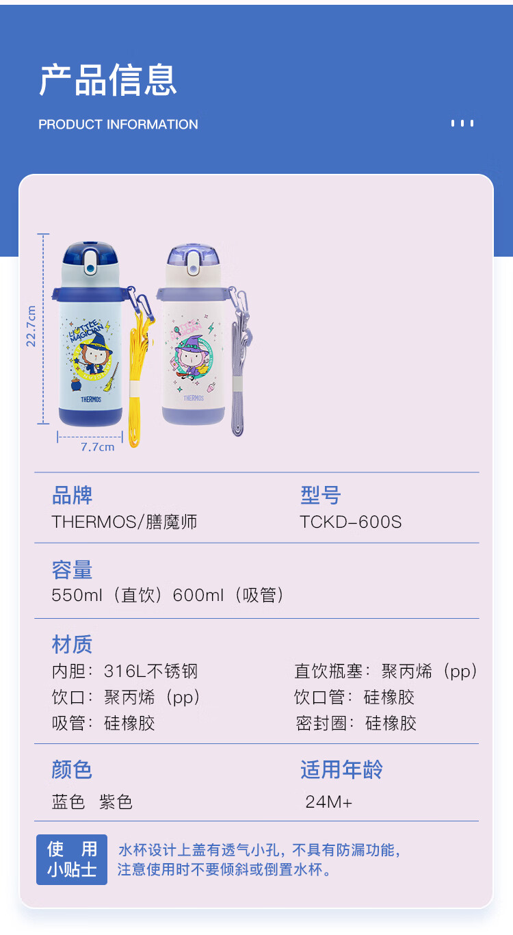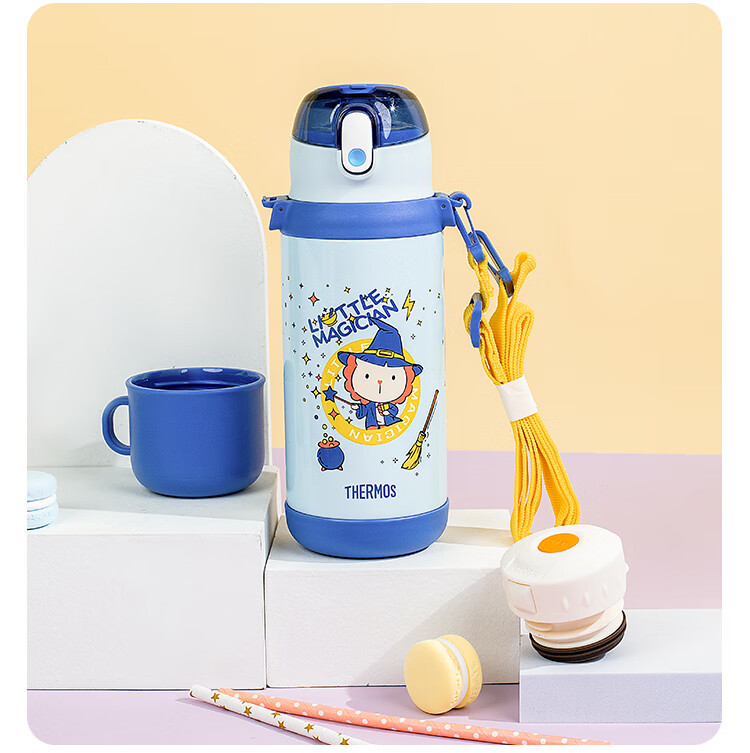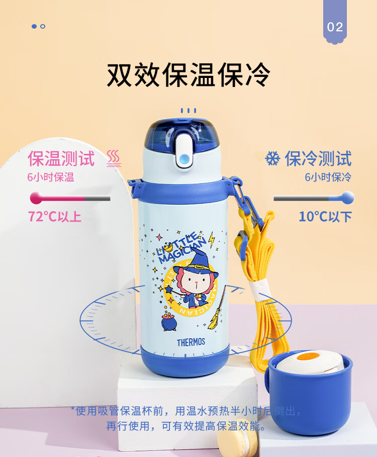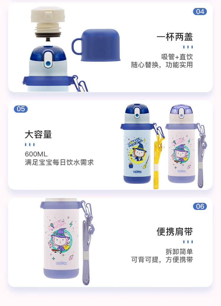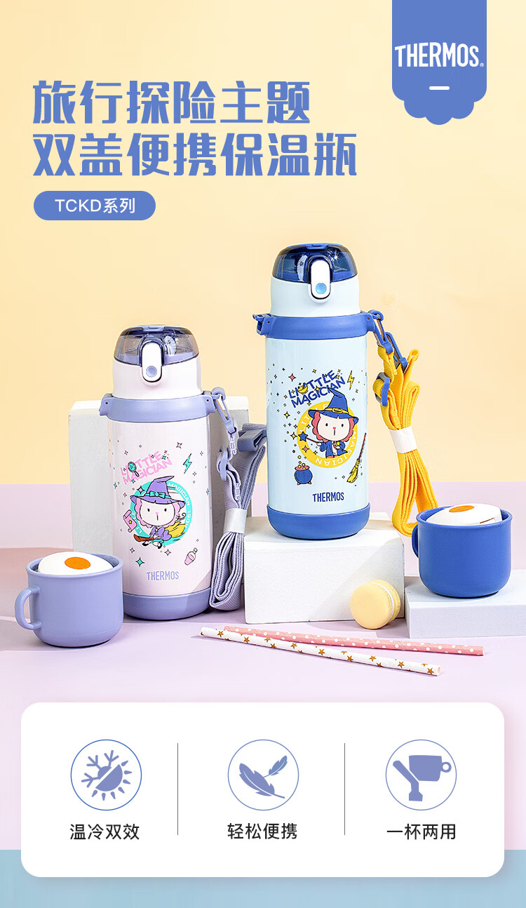 膳魔师母婴高真空儿童学生上学便携保温瓶316L不锈钢大容量双盖杯吸管杯