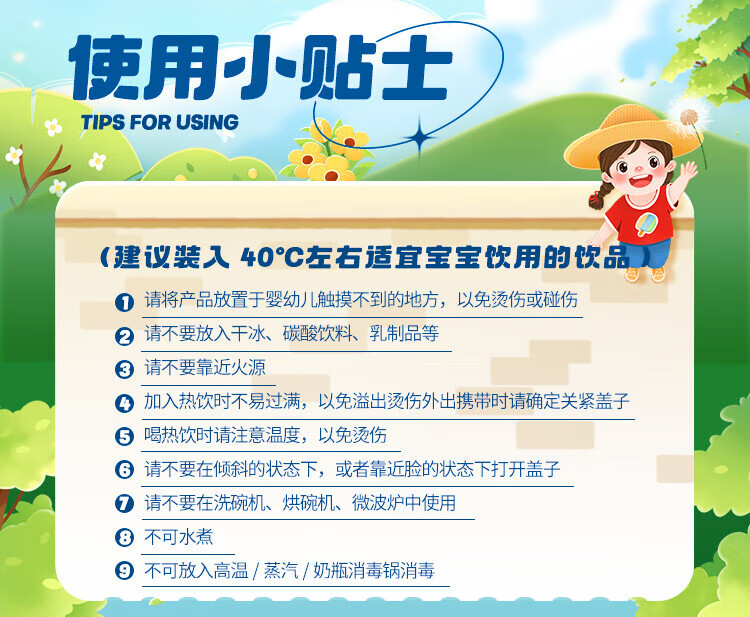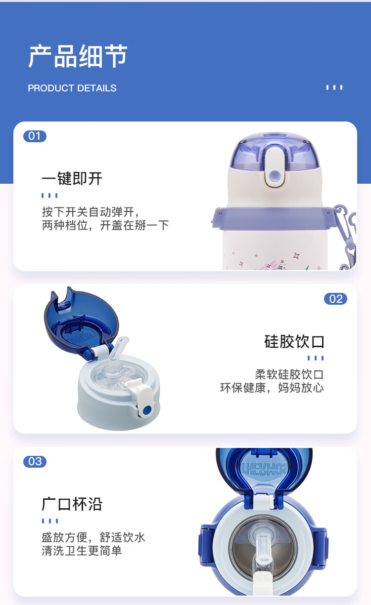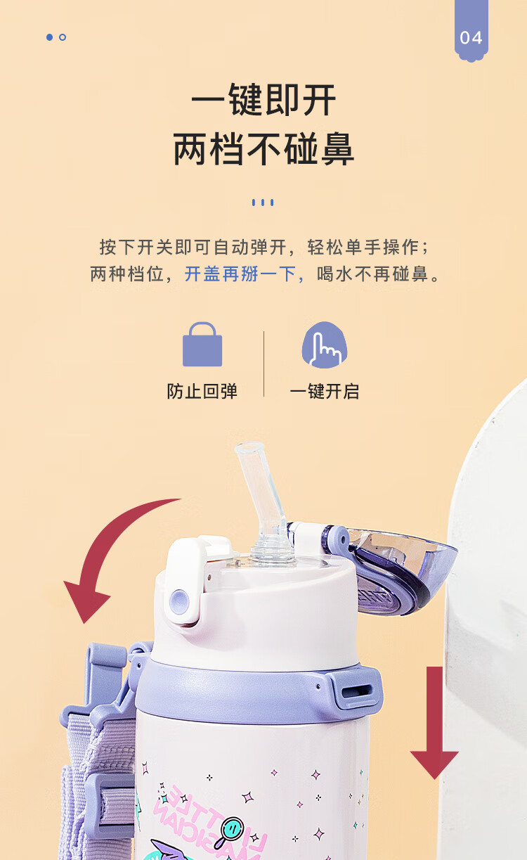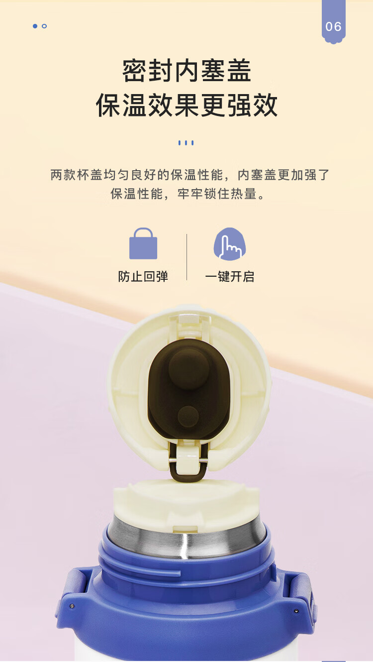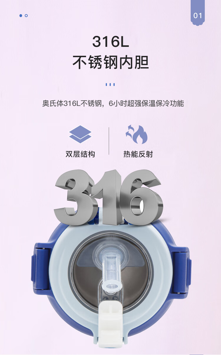 膳魔师母婴高真空儿童学生上学便携保温瓶316L不锈钢大容量双盖杯吸管杯
