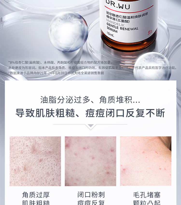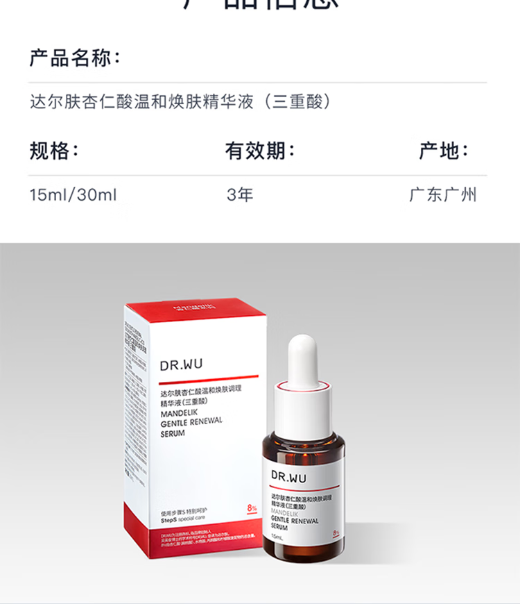 达尔肤(DR.WU)杏仁酸精华8%双支45ml三重酸果酸水杨酸抗痘祛闭口黑头新年礼物