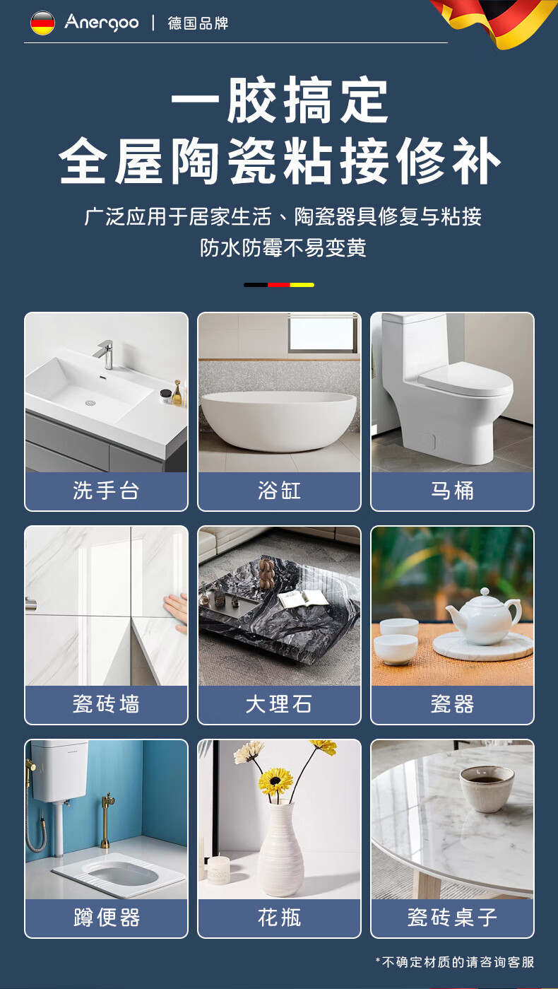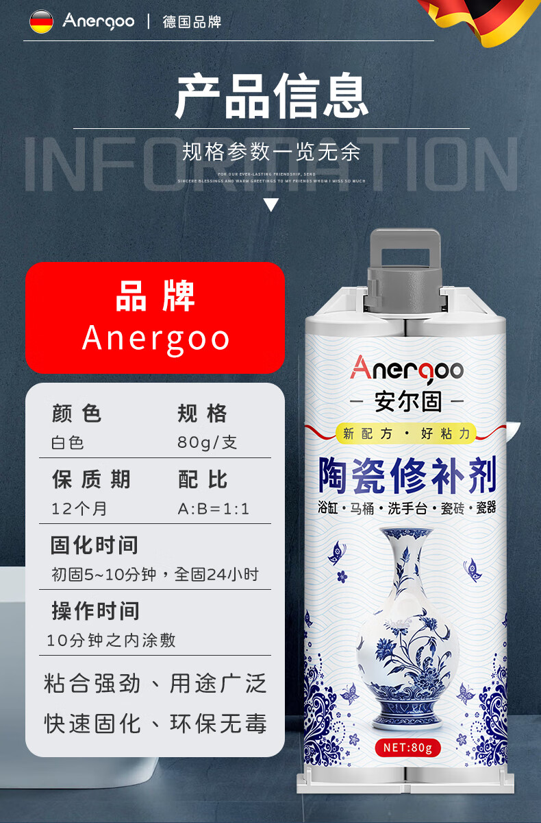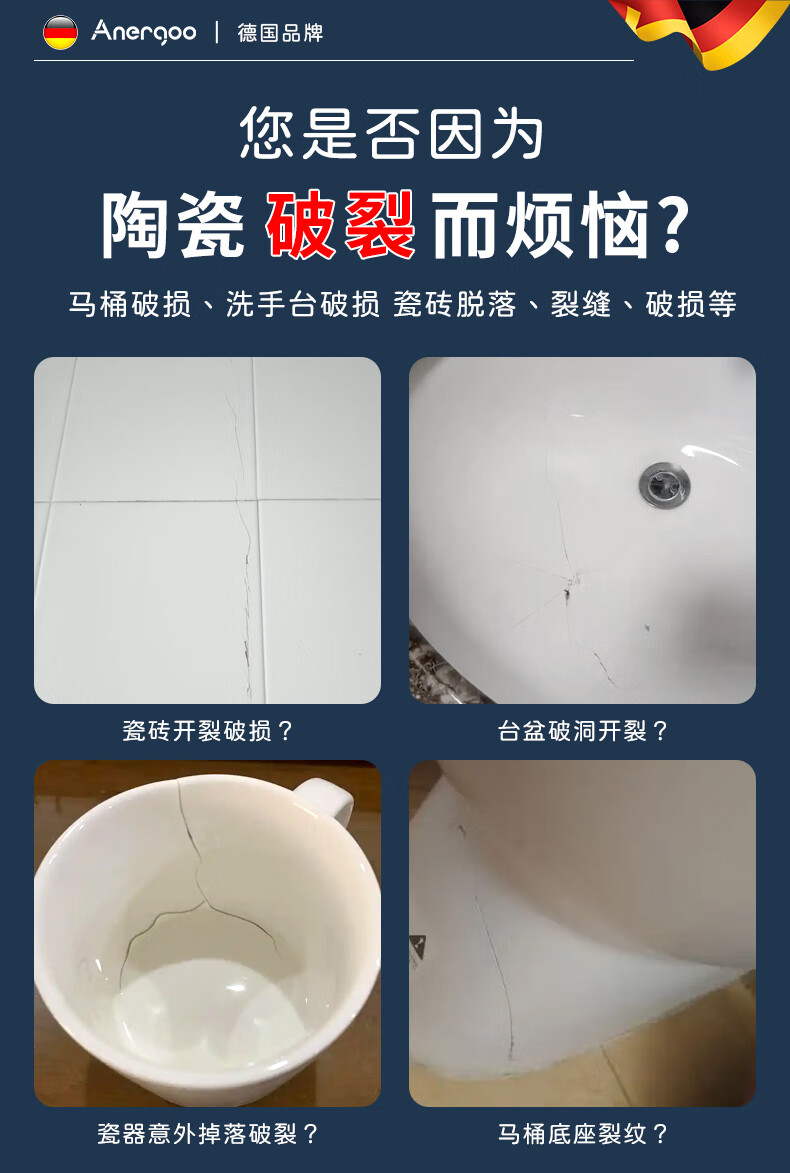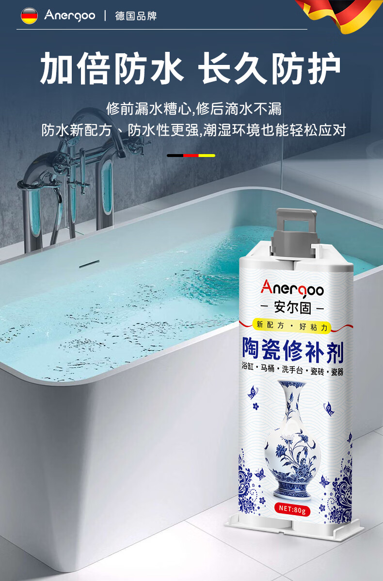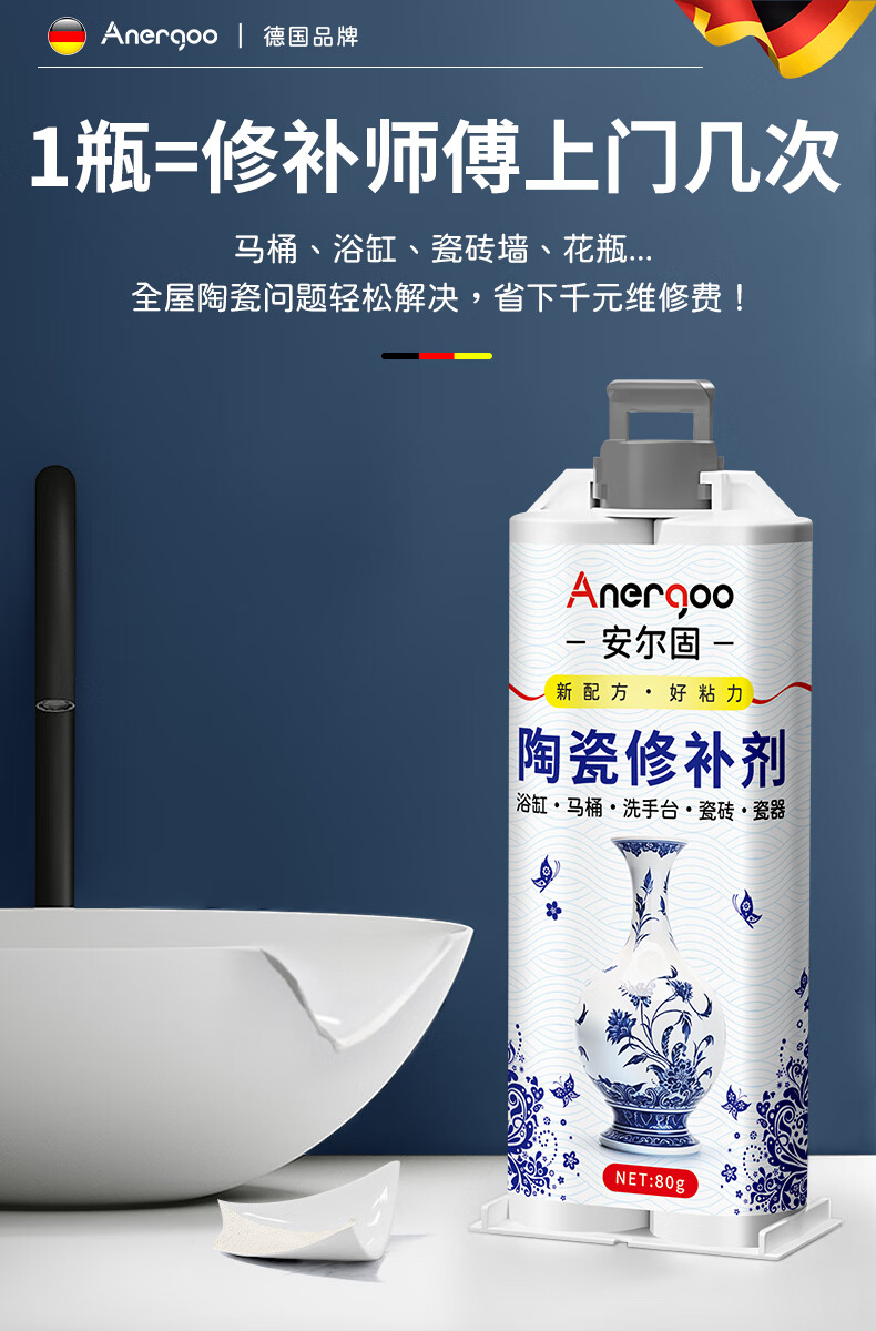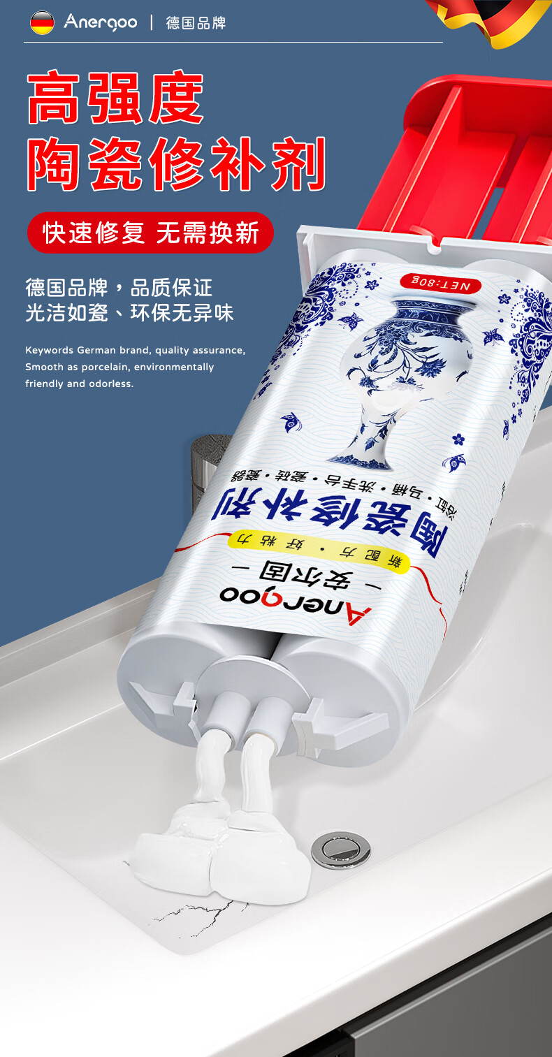 ANERGOO 安尔固陶瓷修补胶 修补剂釉面修复 强力无痕粘洗手盆瓷器裂缝陶瓷艺术品耐高低温防水家用环保无味修复胶