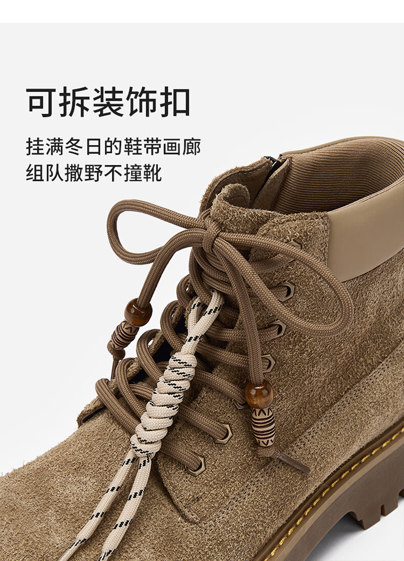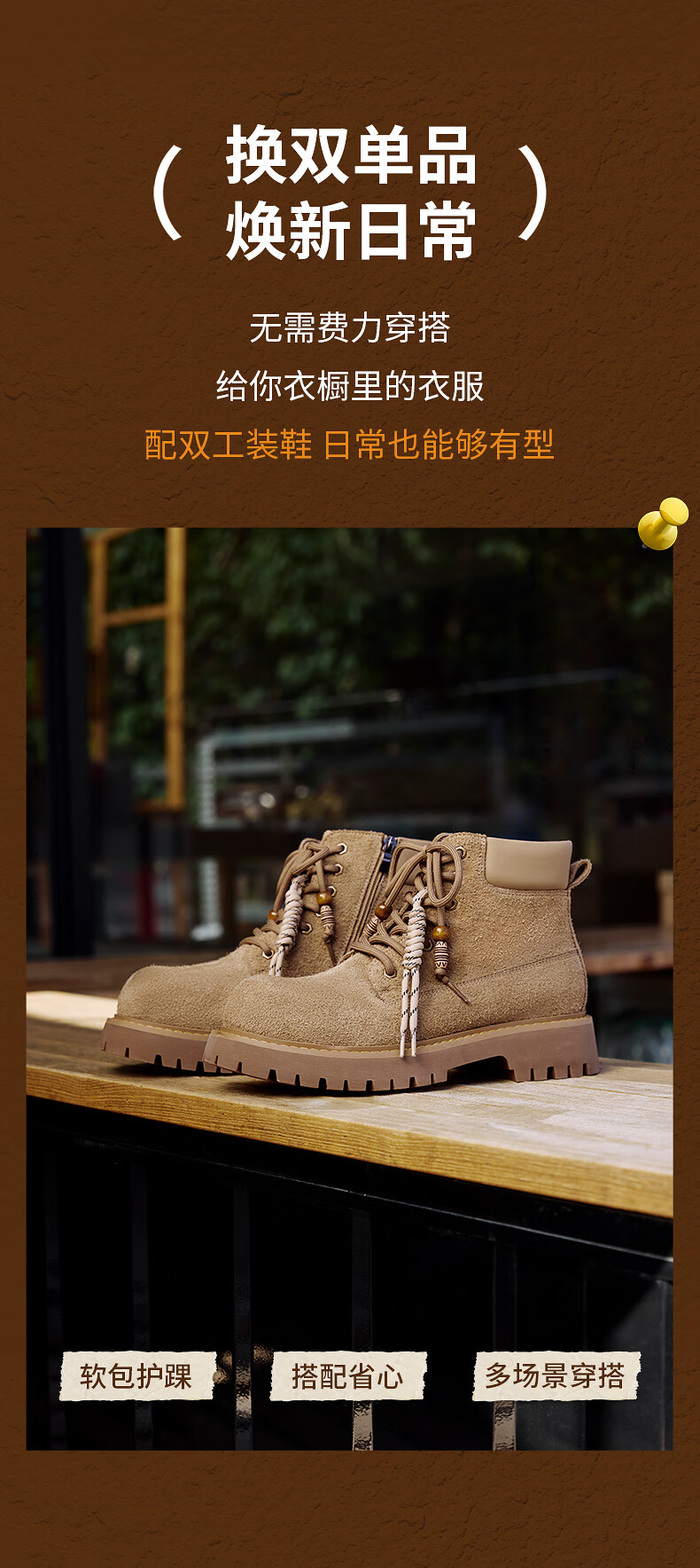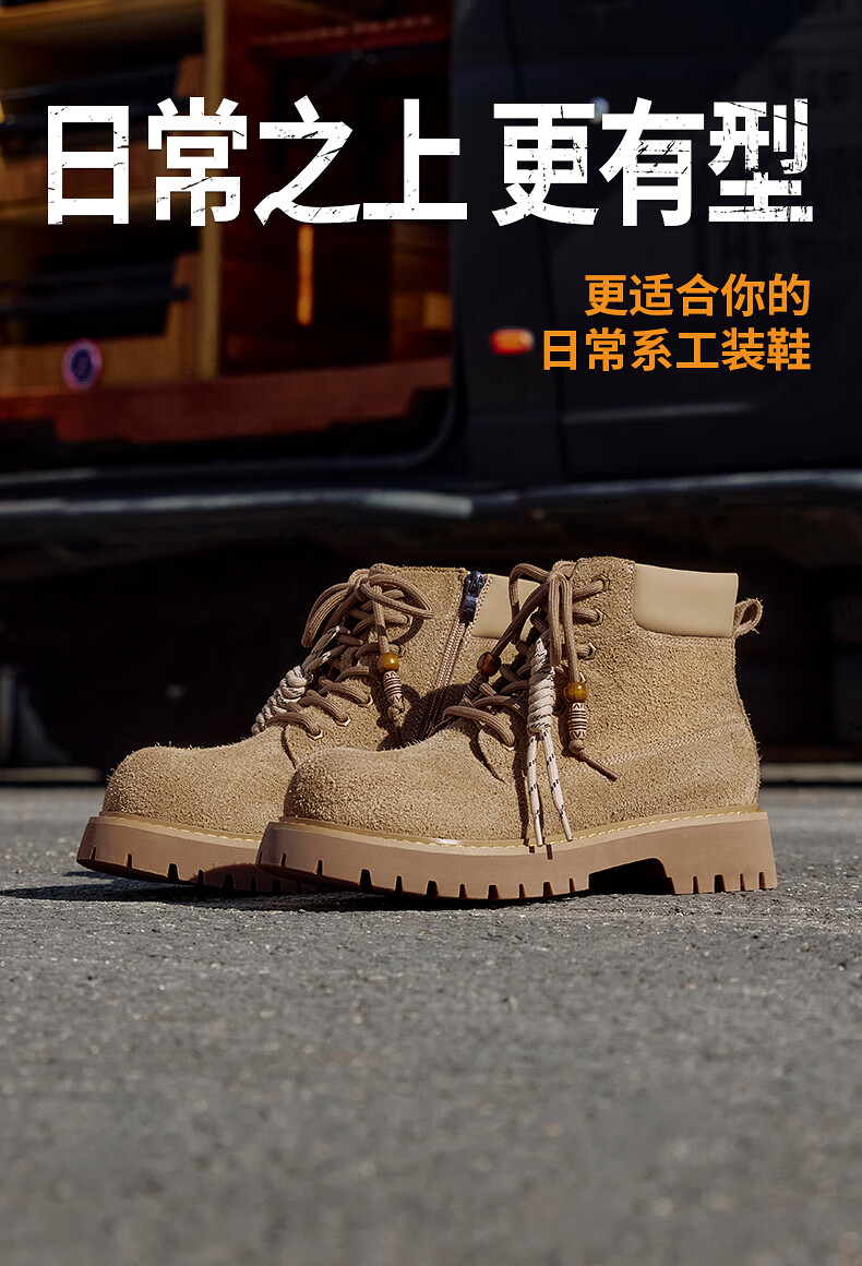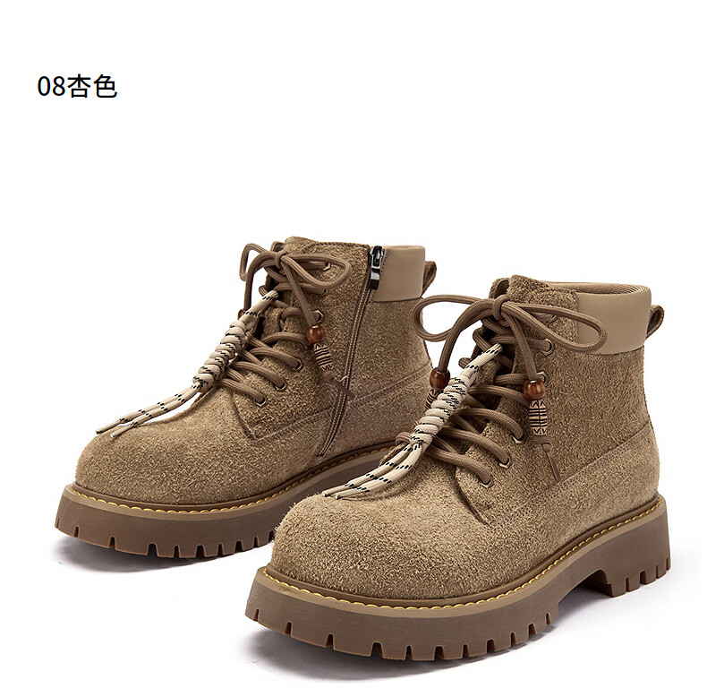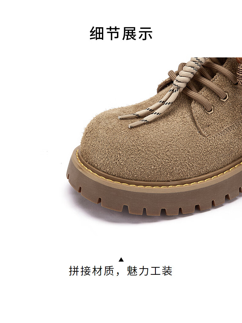 热风男鞋2025年冬季新款厚底户外工装靴百搭黑色马丁靴子男款鞋子 08杏色 38
