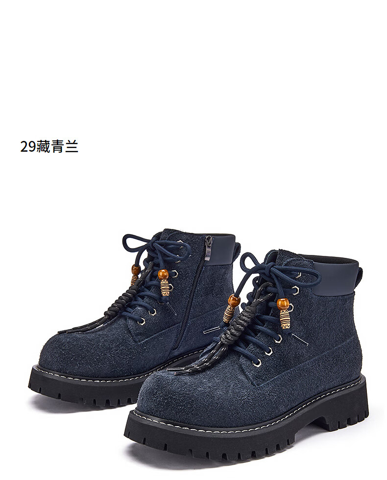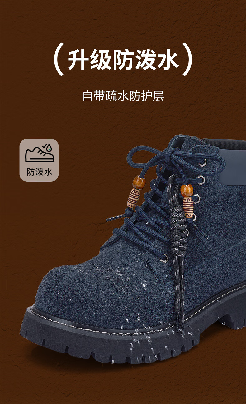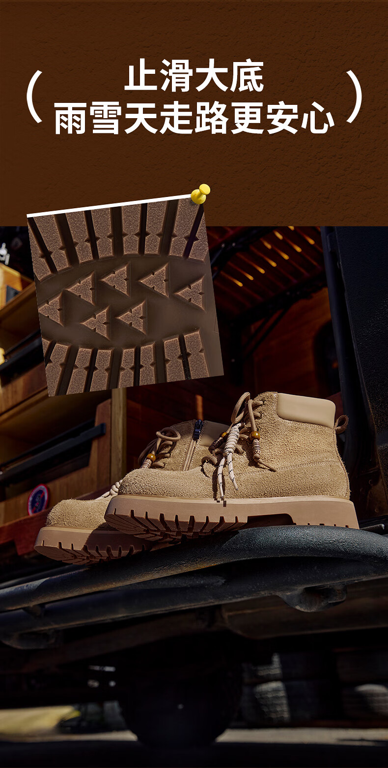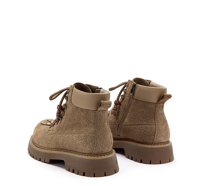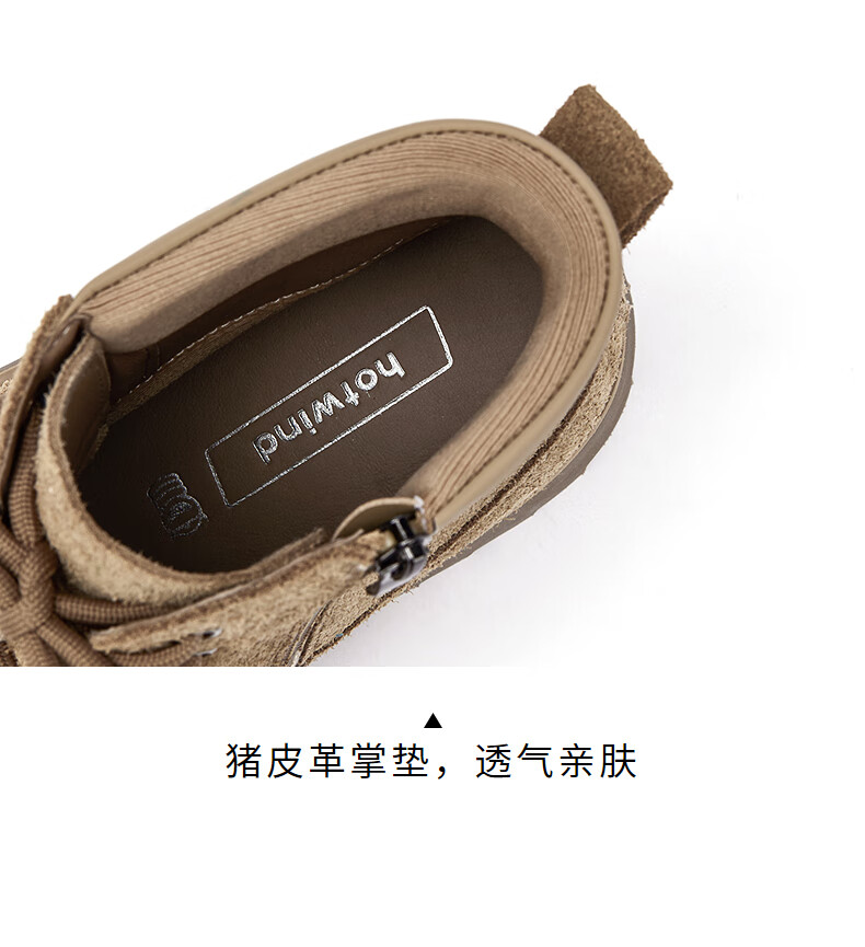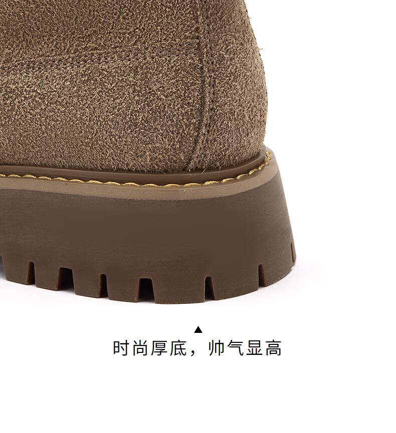 热风男鞋2025年冬季新款厚底户外工装靴百搭黑色马丁靴子男款鞋子 08杏色 38