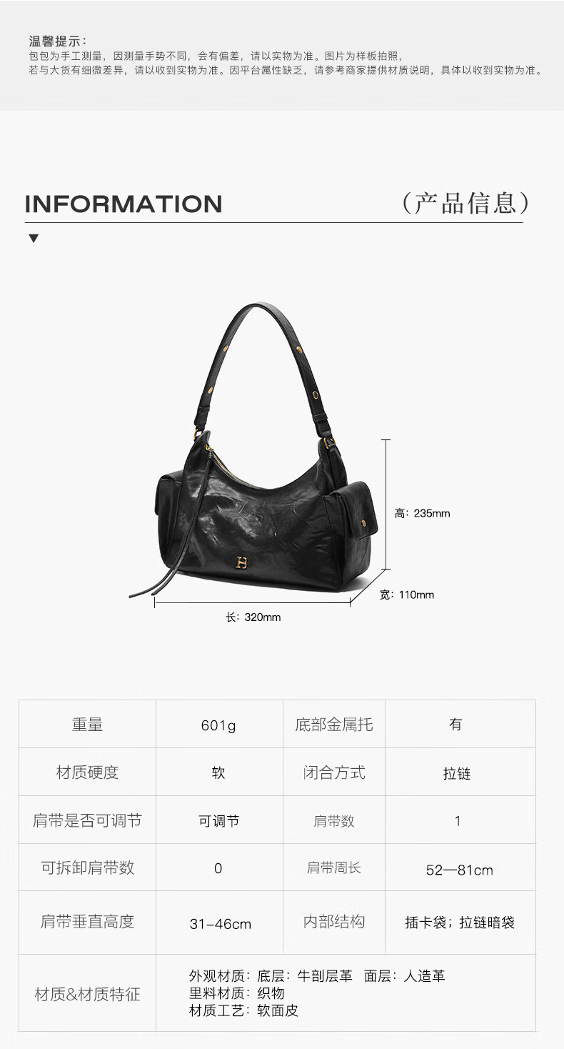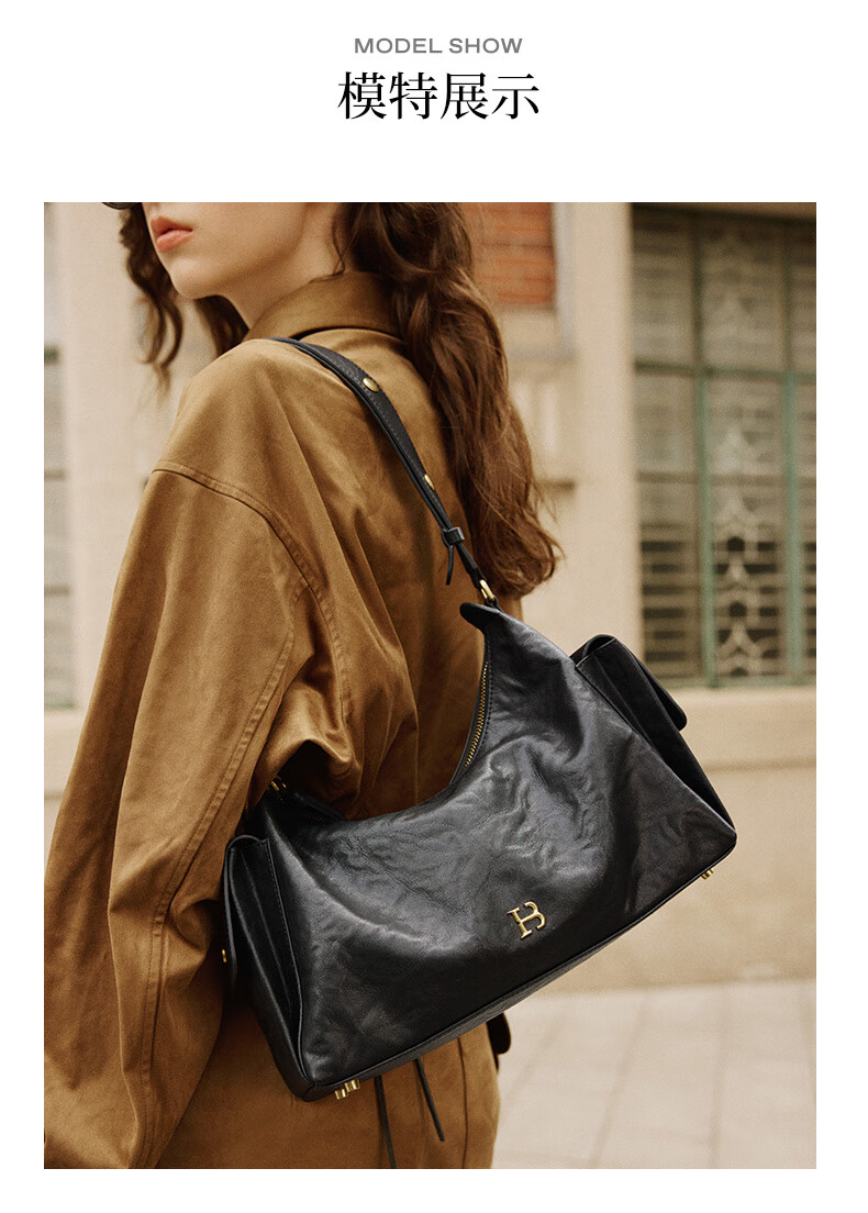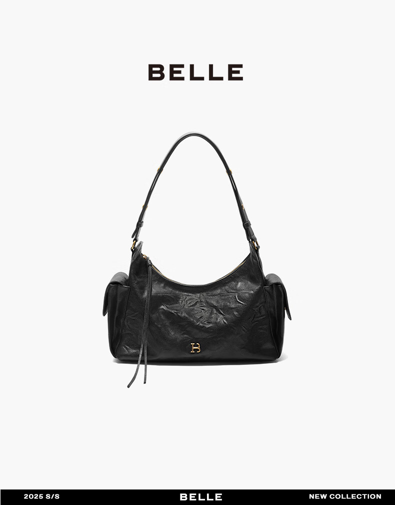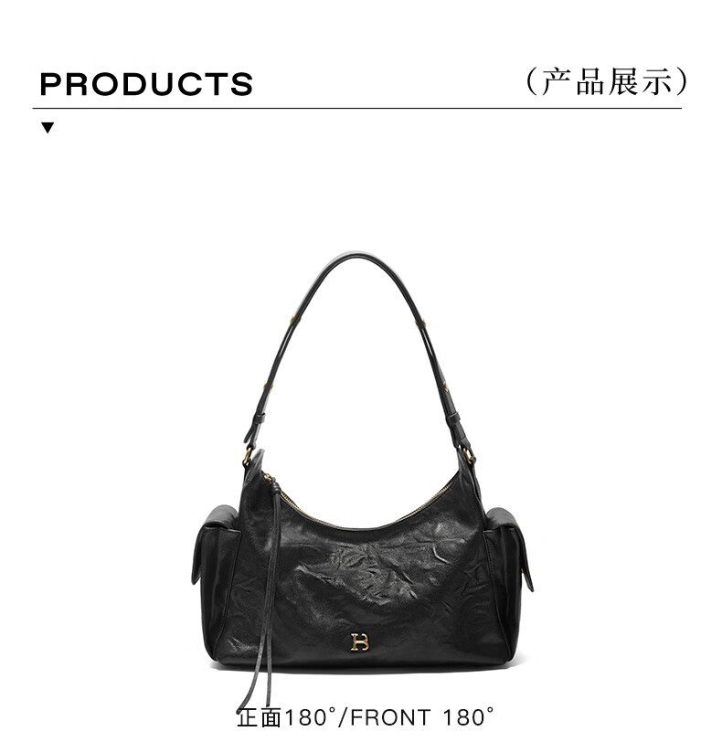 百丽包女25新商场同款手抓纹褶皱肌理HOBO单肩斜挎腋下包X7432CX5 黑色 F