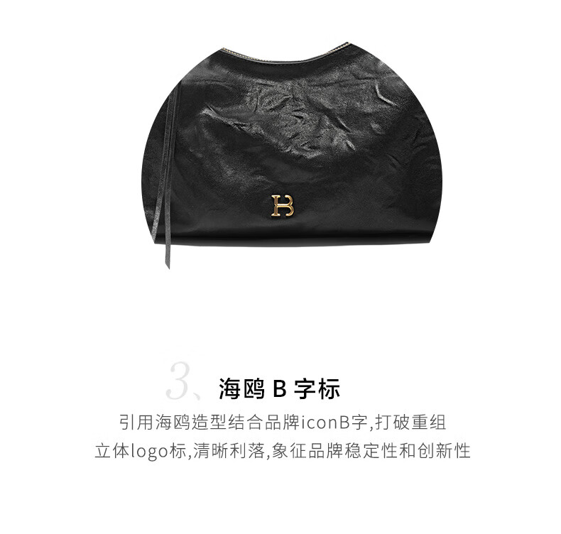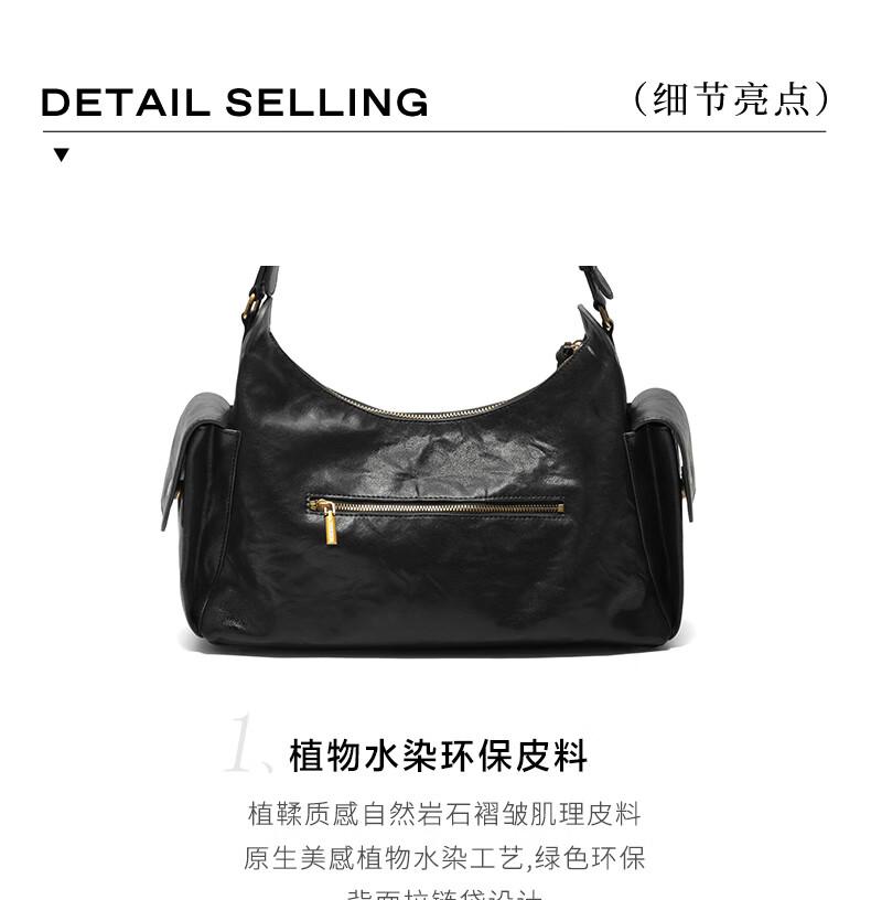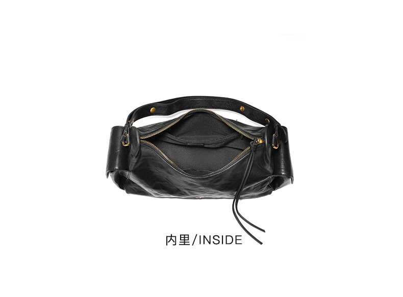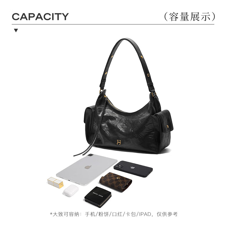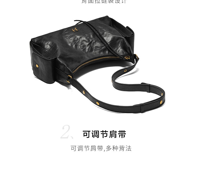 百丽包女25新商场同款手抓纹褶皱肌理HOBO单肩斜挎腋下包X7432CX5 黑色 F