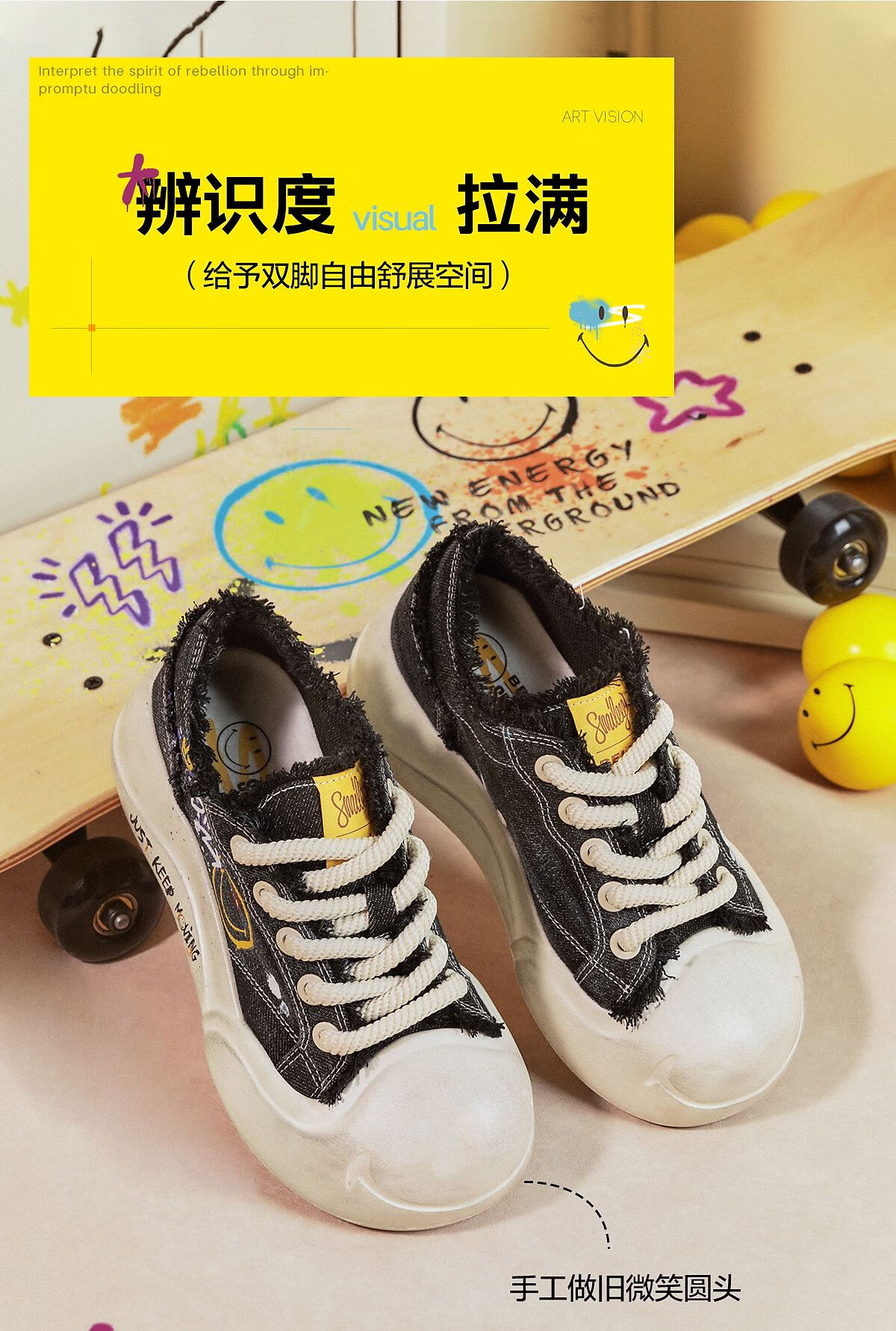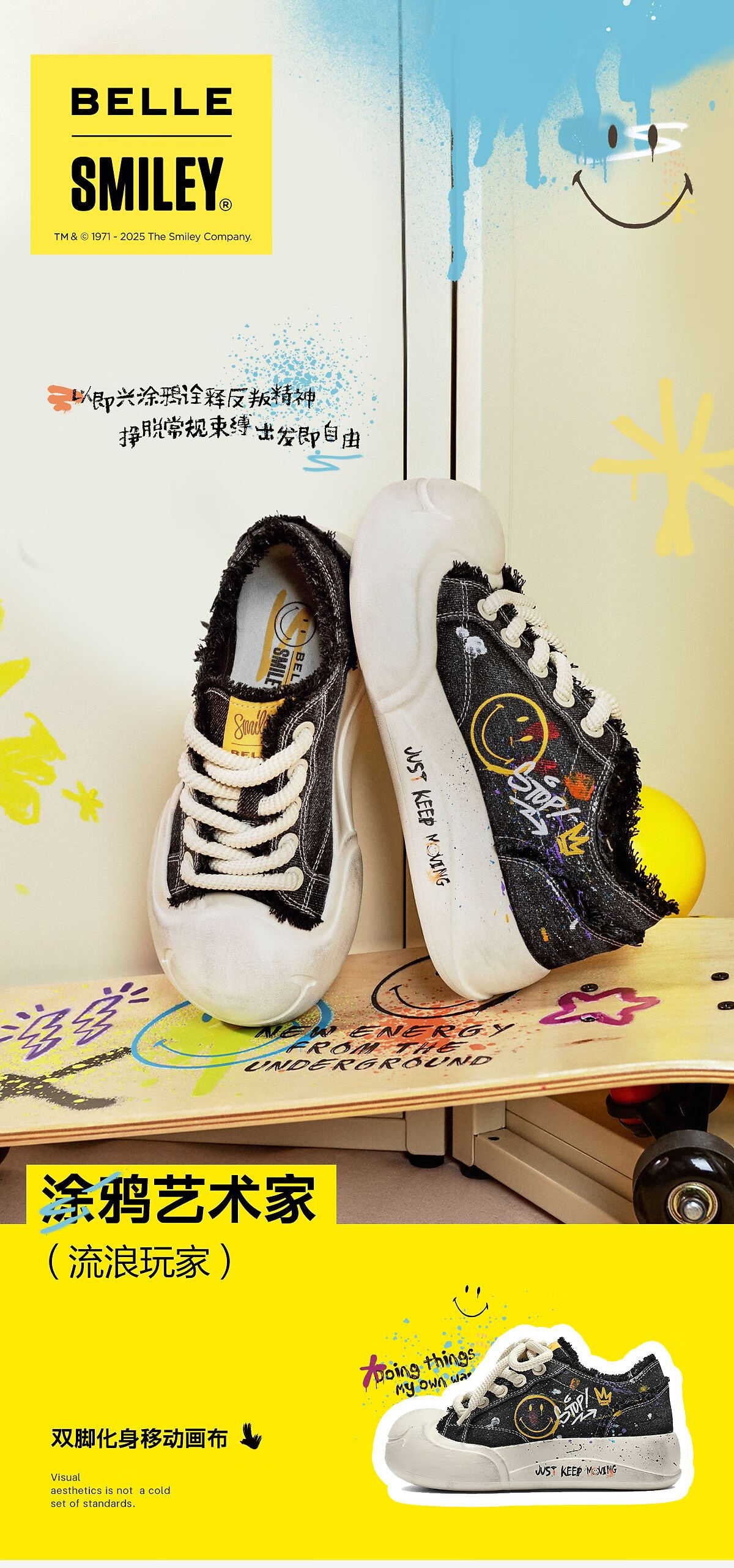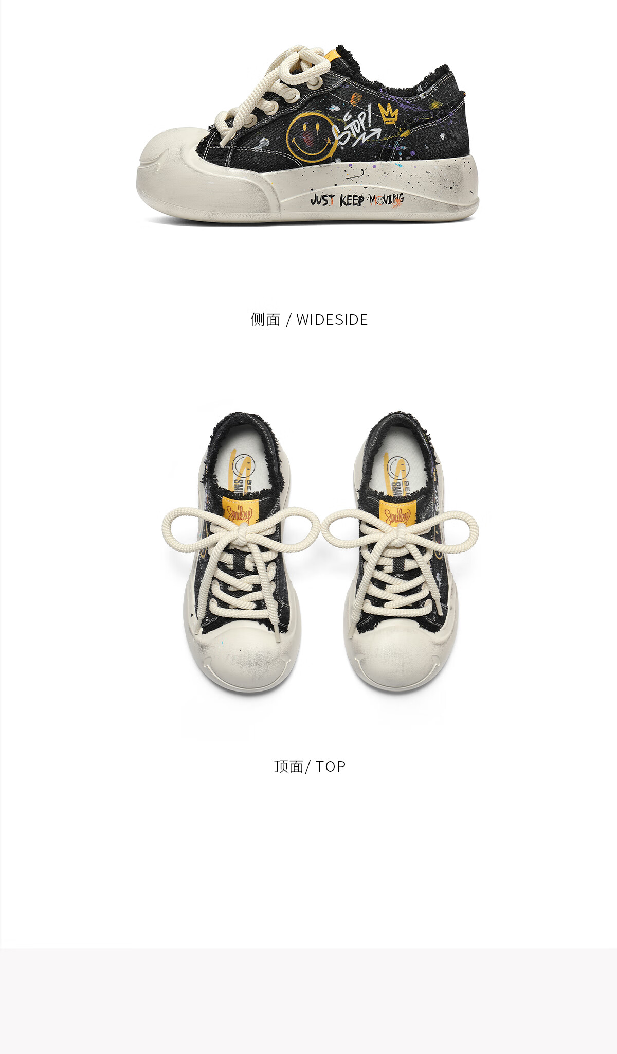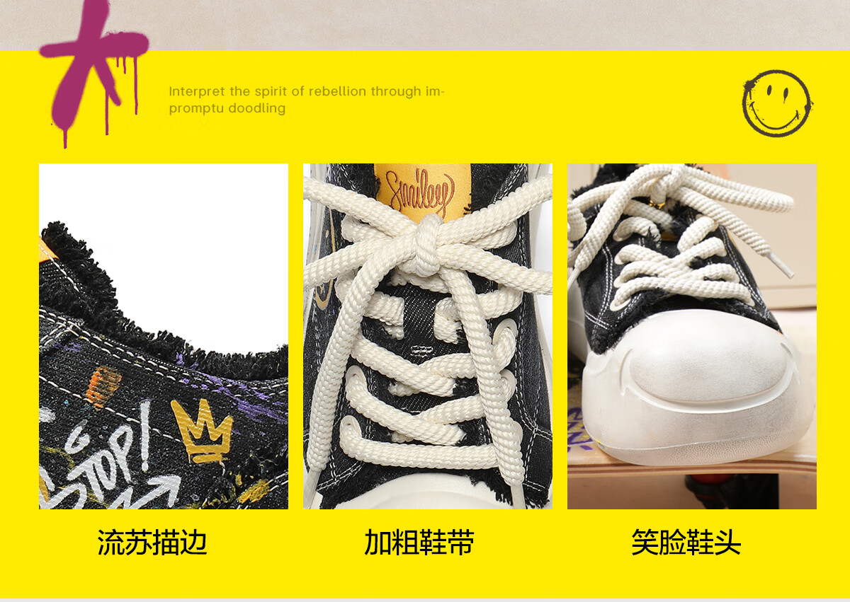 百丽SMILEY联名流浪玩家涂鸦帆布鞋女25秋新商场款高帮休闲鞋3ZJC4CM5 黑色 36