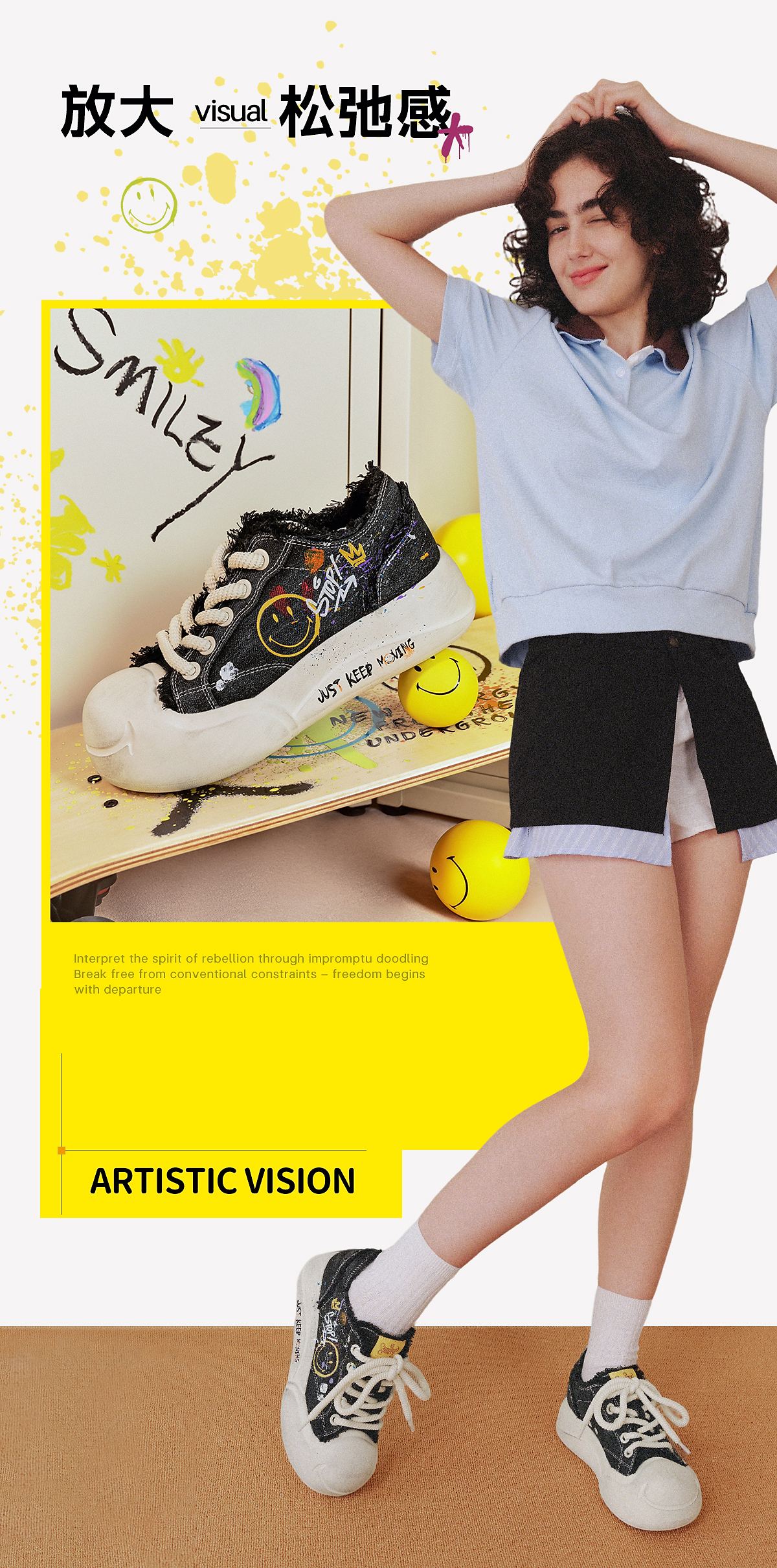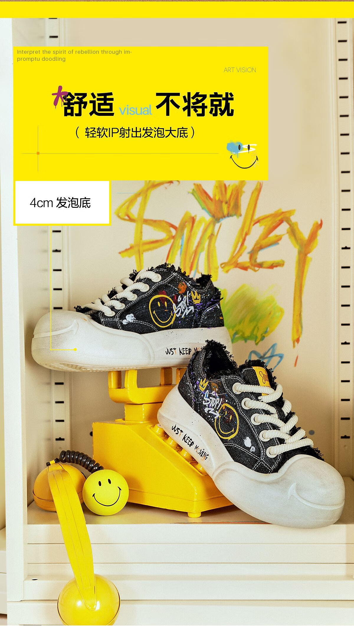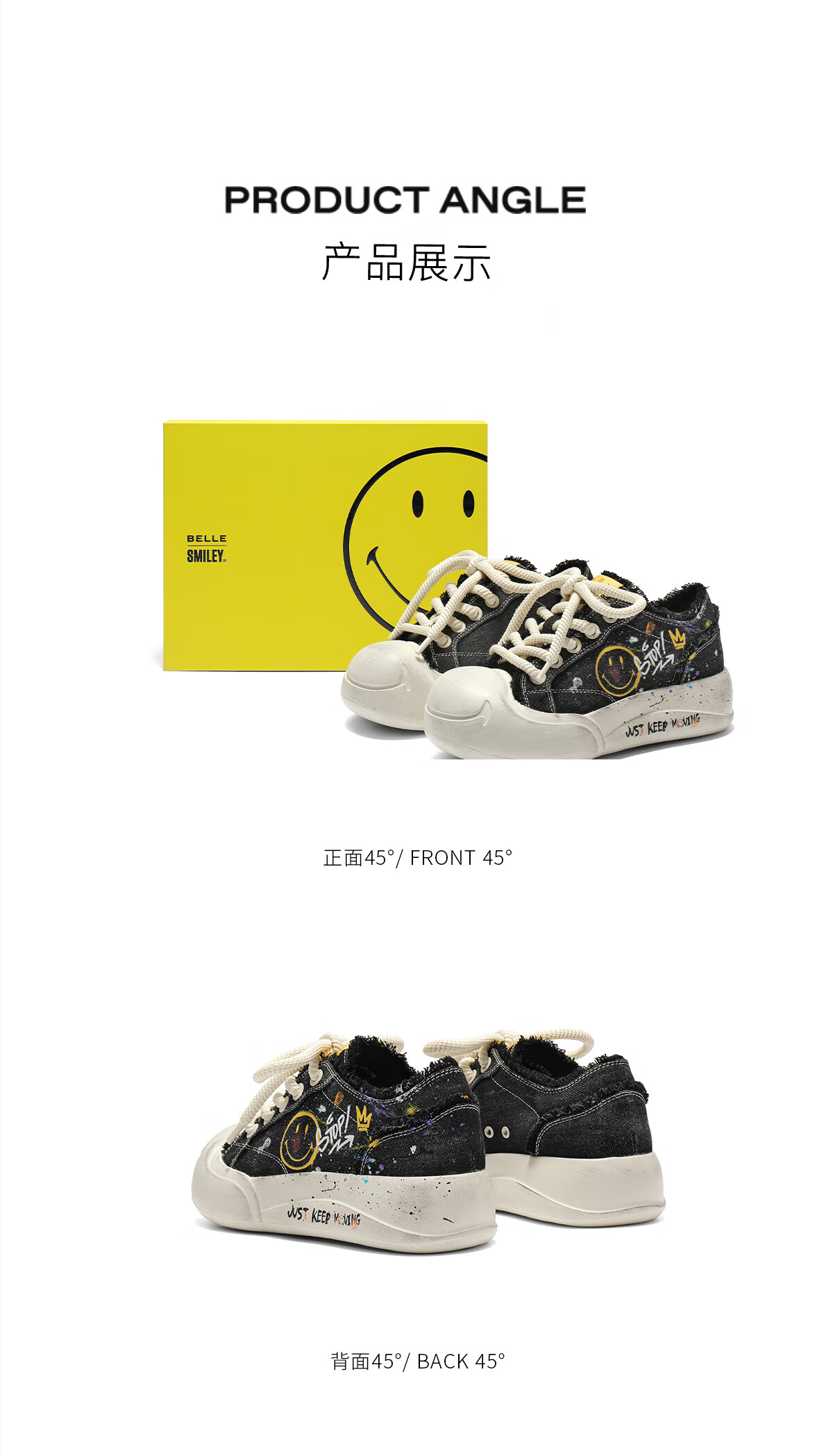 百丽SMILEY联名流浪玩家涂鸦帆布鞋女25秋新商场款高帮休闲鞋3ZJC4CM5 黑色 36