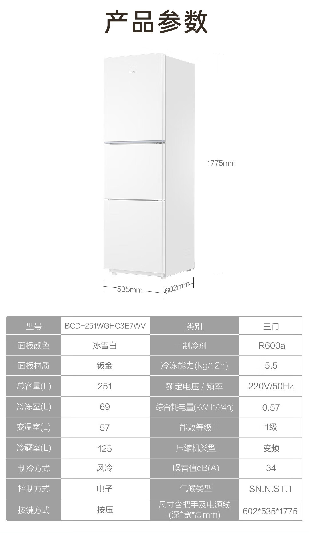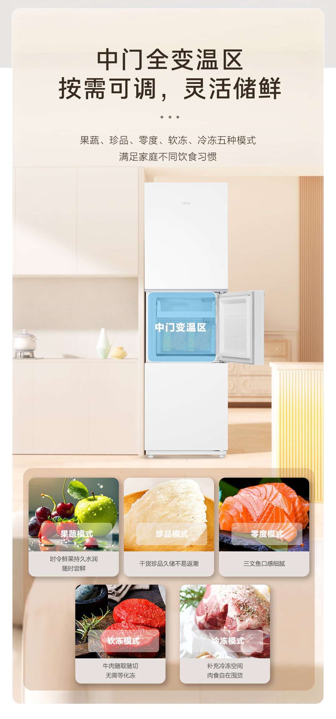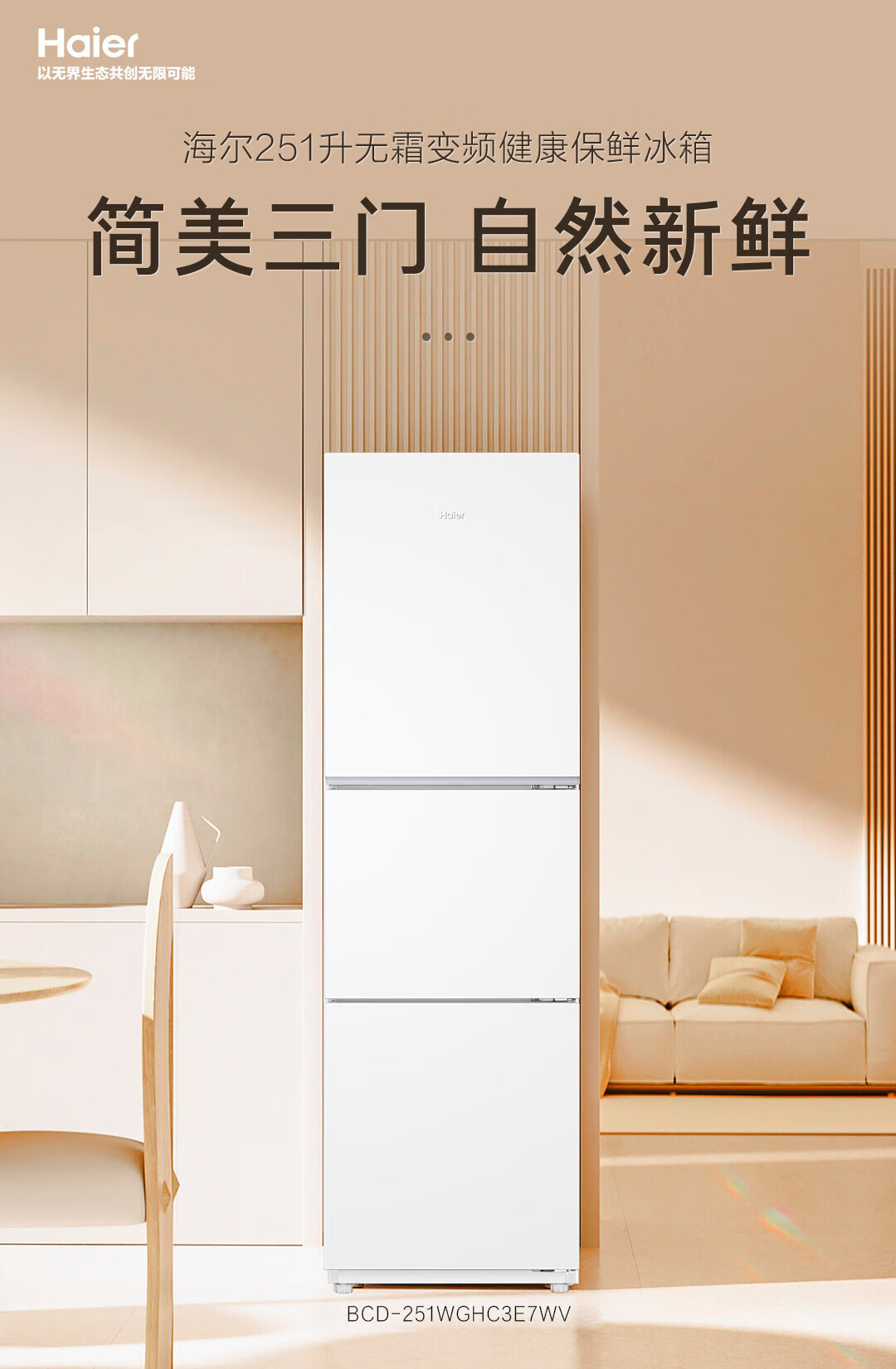 海尔冰箱251升风冷无霜三开门多门家用小冰箱小型迷你宿舍租房一级能效节能255升级款 风冷无霜丨中门变温室丨抗菌率99.99%丨251L