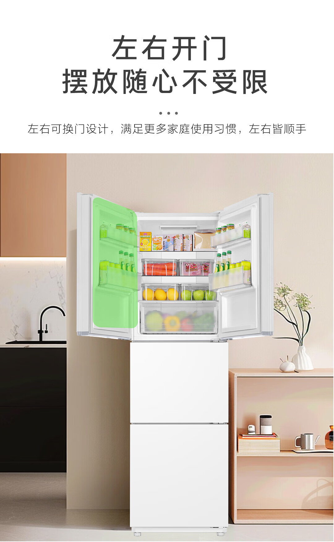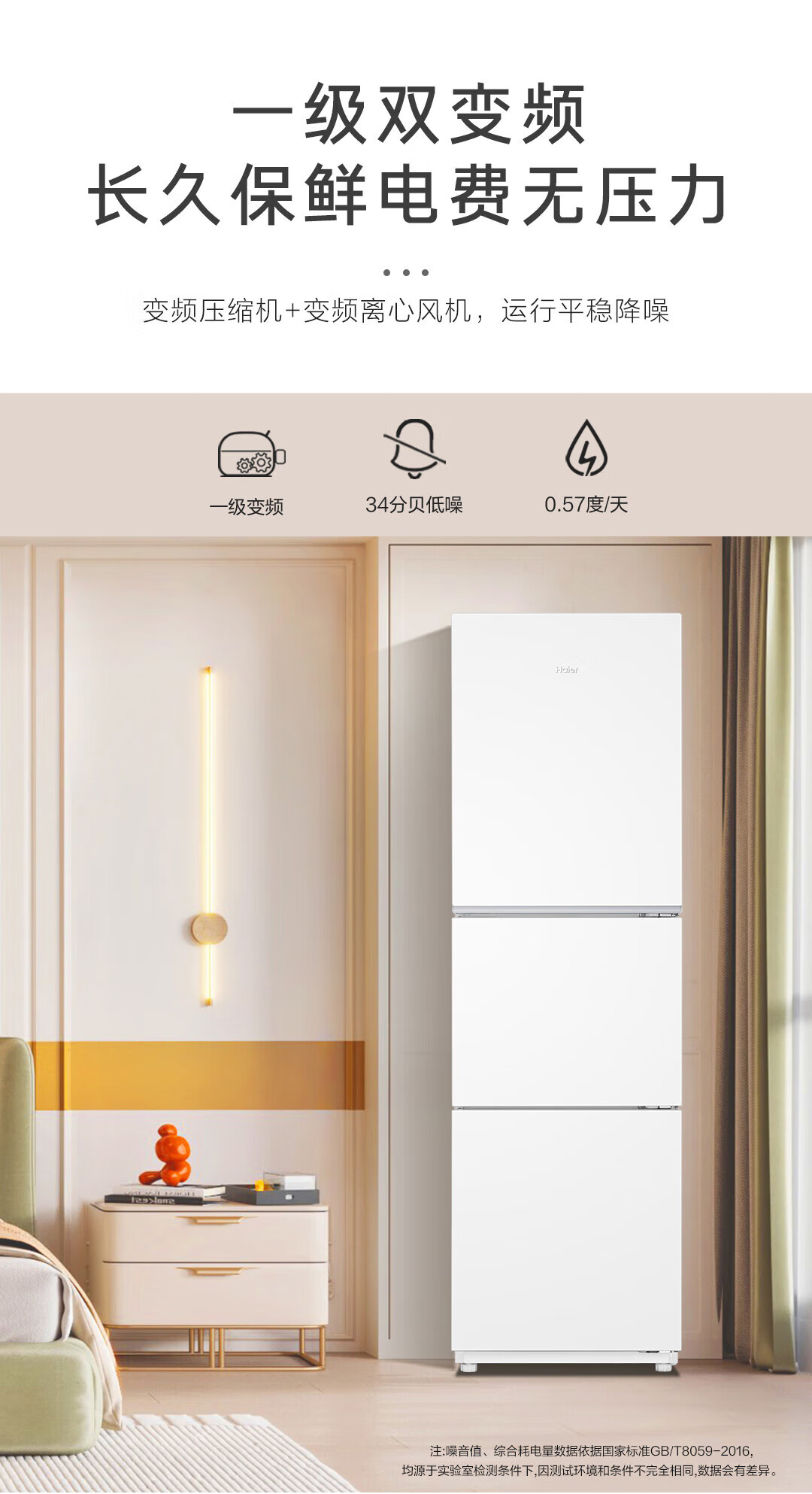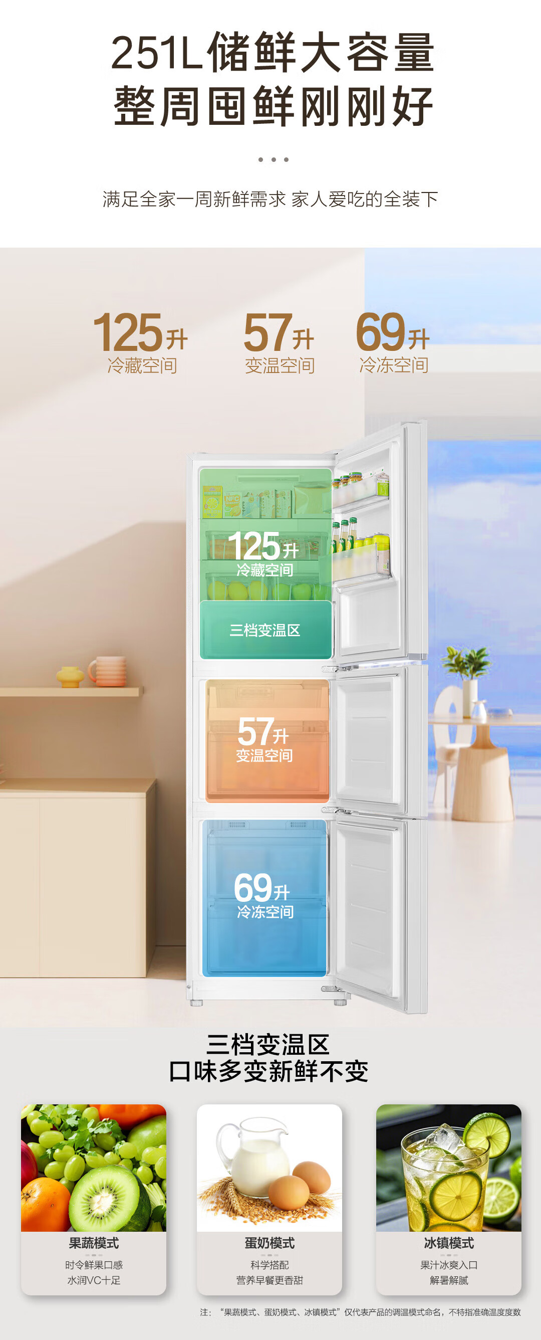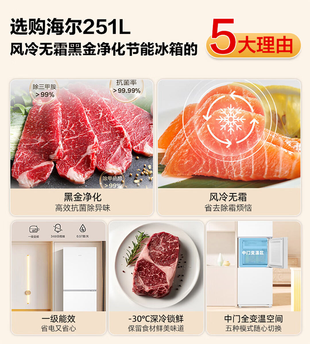 海尔冰箱251升风冷无霜三开门多门家用小冰箱小型迷你宿舍租房一级能效节能255升级款 风冷无霜丨中门变温室丨抗菌率99.99%丨251L