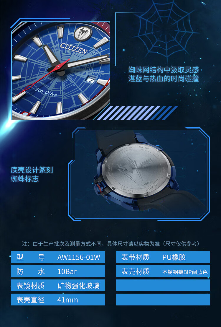 西铁城(CITIZEN)手表男日韩表漫威蜘蛛侠款光动能PU带学生送礼物男友AW1156-01W