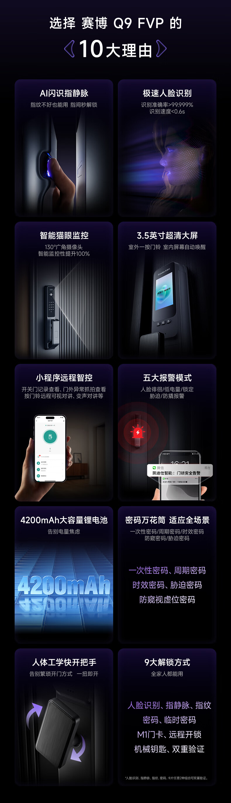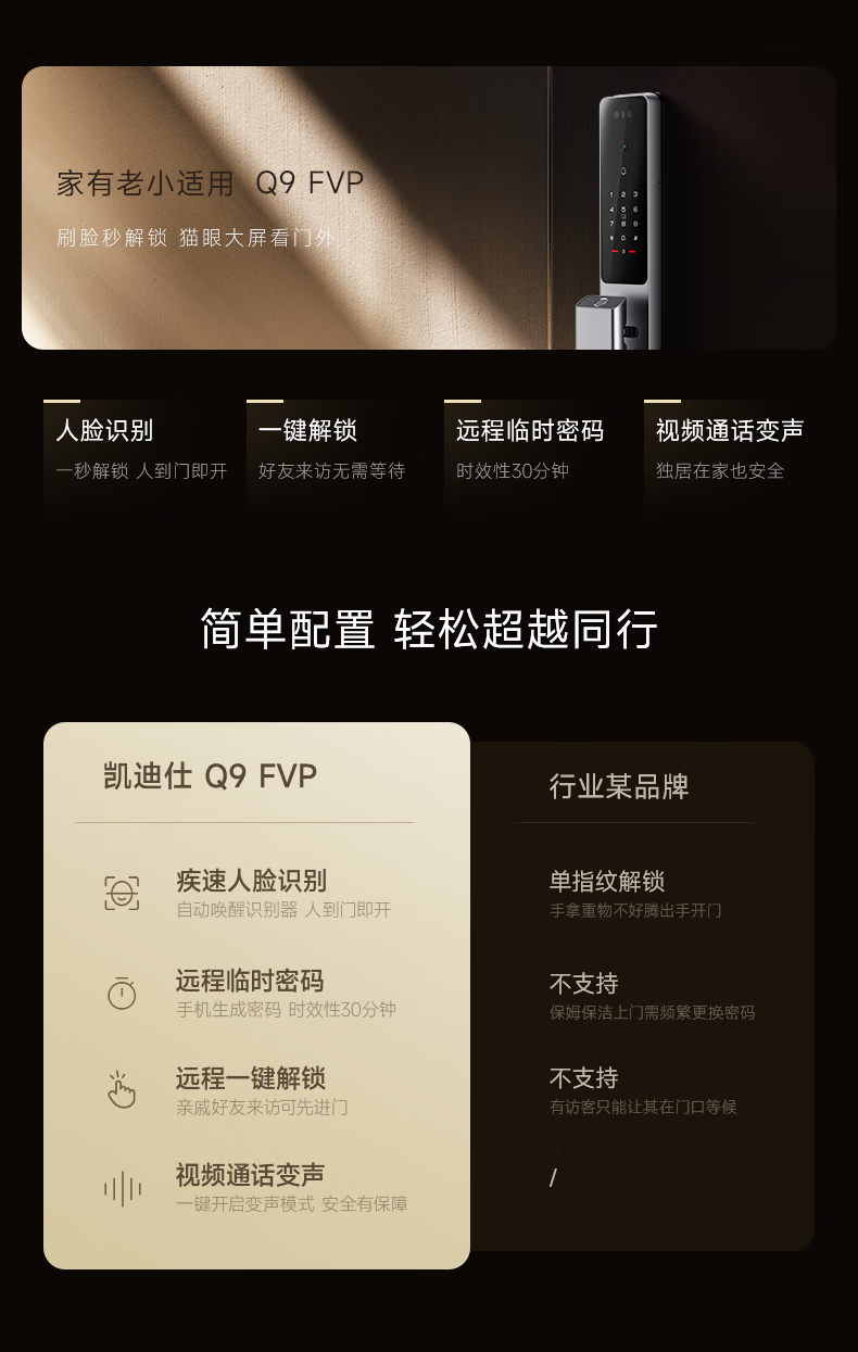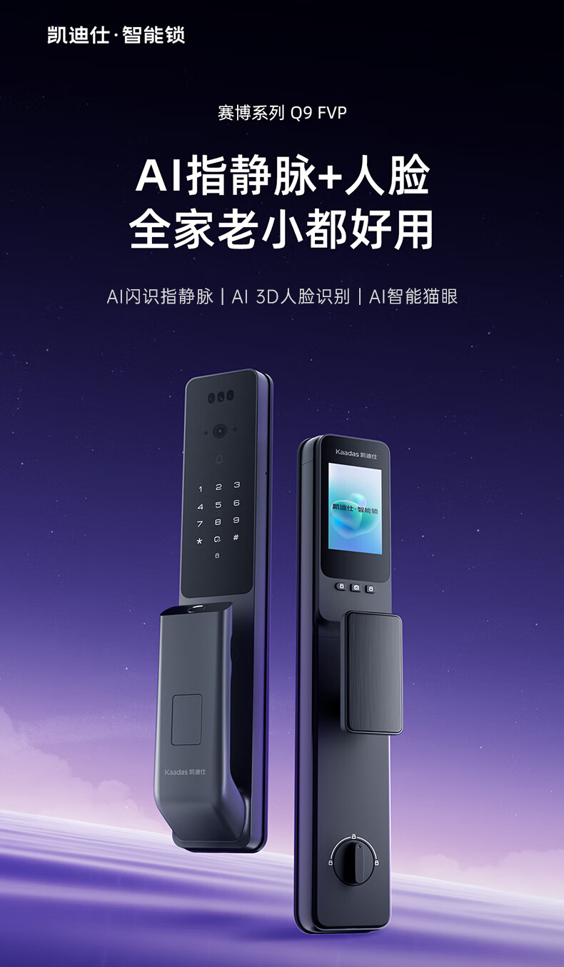 凯迪仕(kaadas)智能门锁指静脉智能锁指纹锁 可视猫眼人脸 赛博Q9 FVP