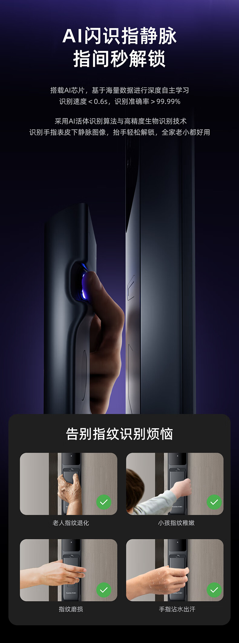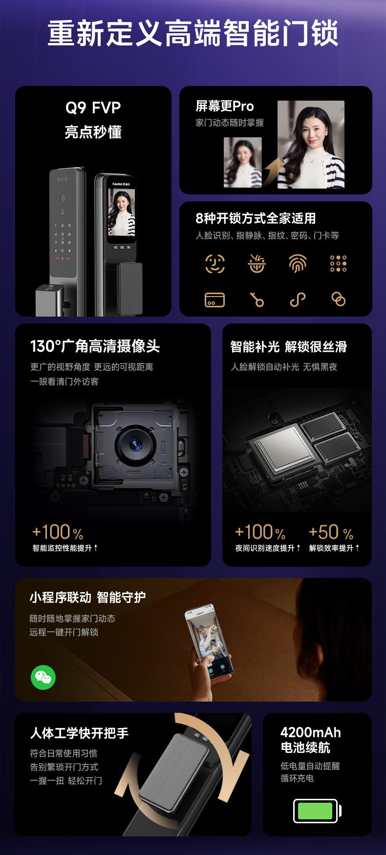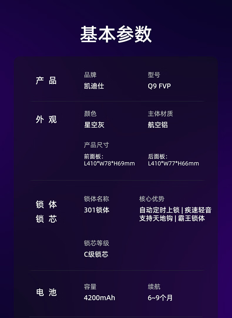 凯迪仕(kaadas)智能门锁指静脉智能锁指纹锁 可视猫眼人脸 赛博Q9 FVP