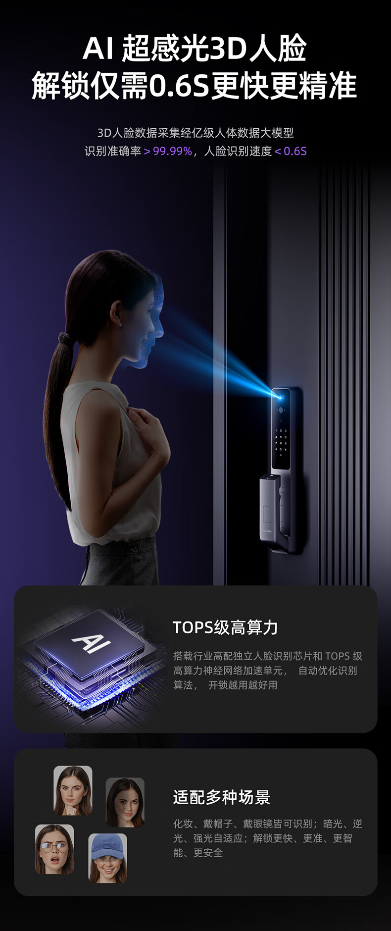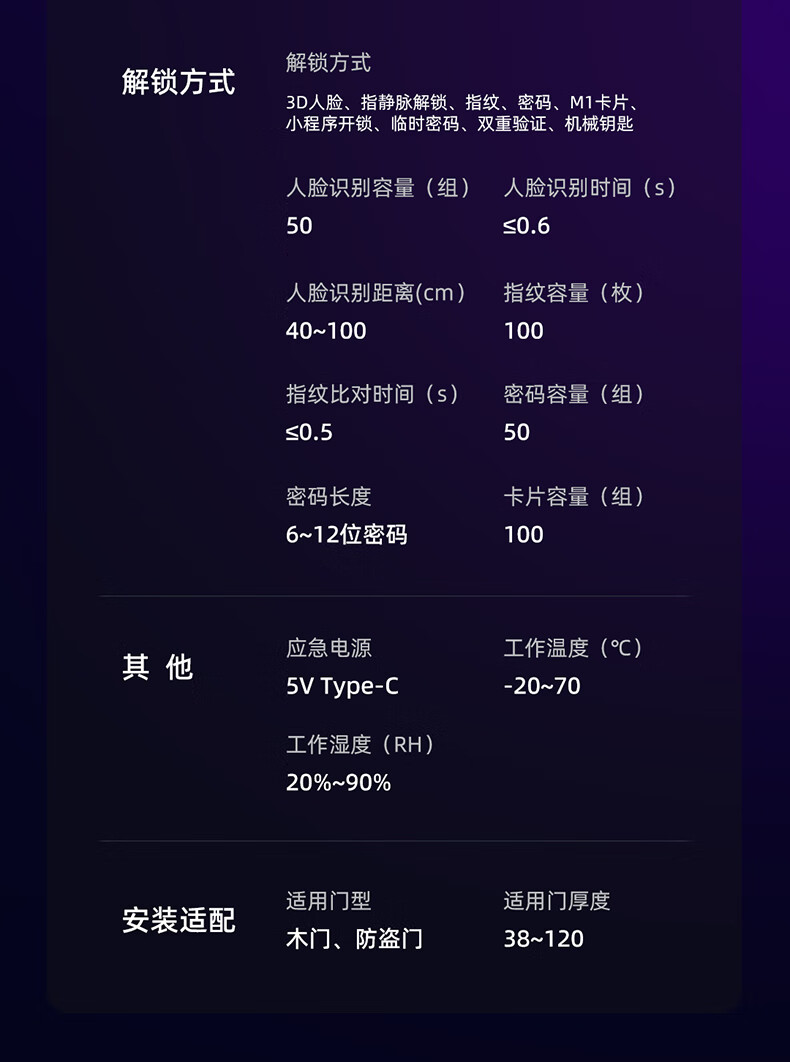 凯迪仕Q20F Pro人脸识别智能门锁高清大屏猫眼指纹电子锁银河小超跑 Q20F Pro双摄版