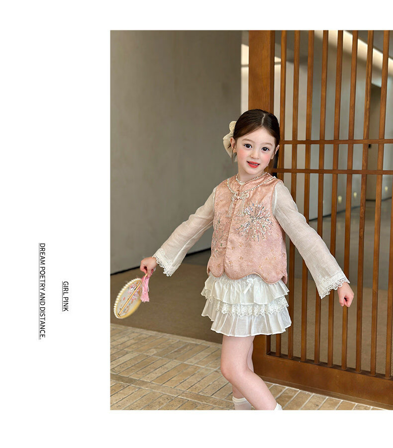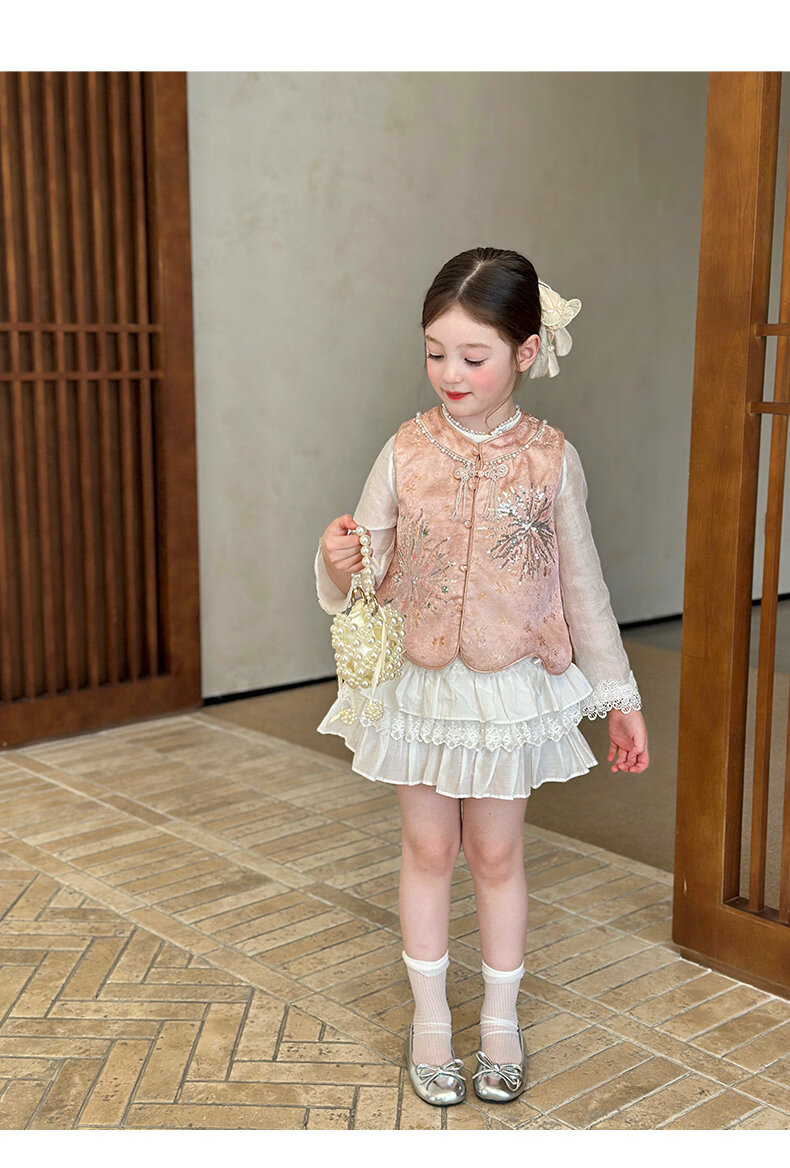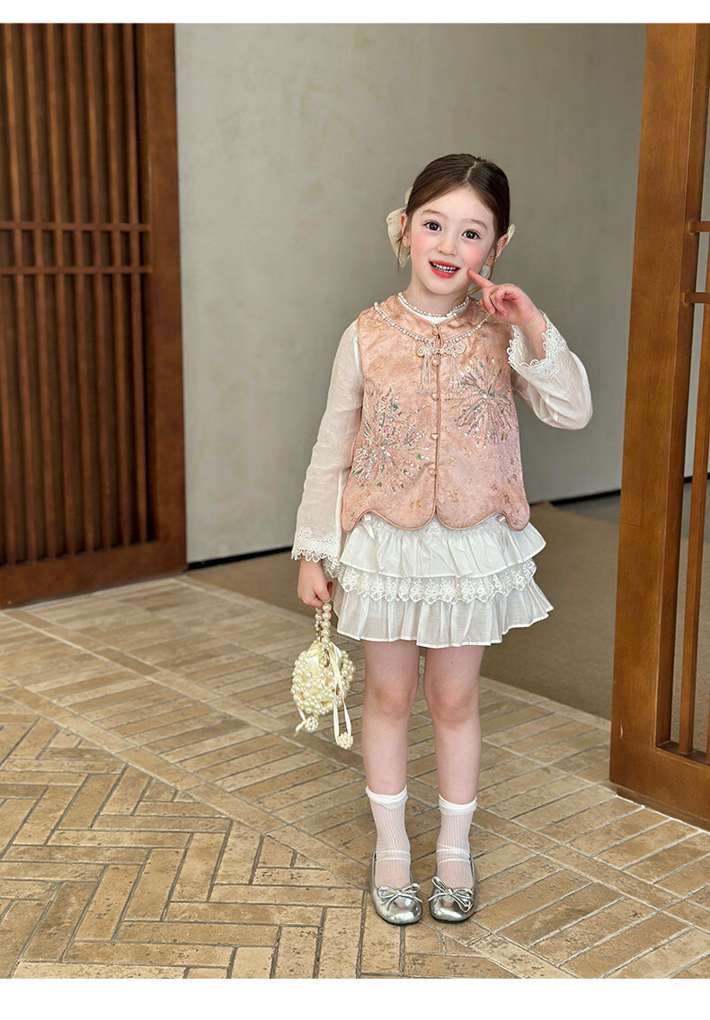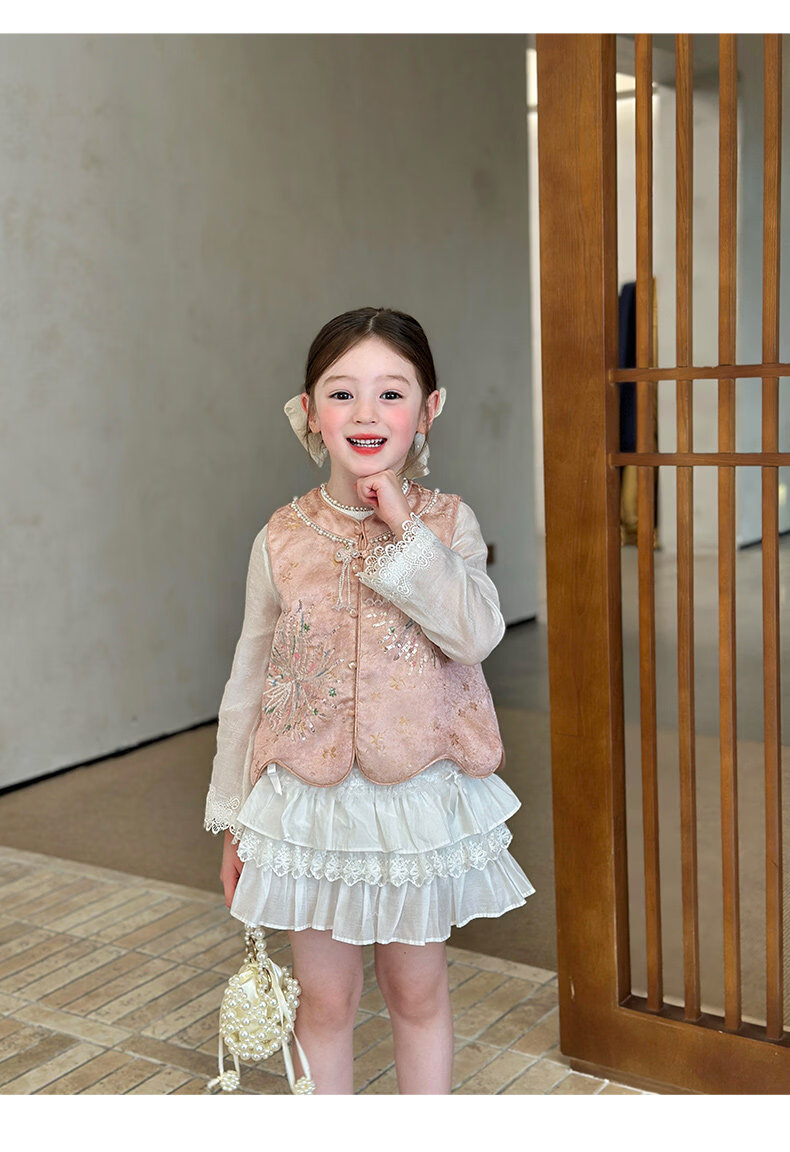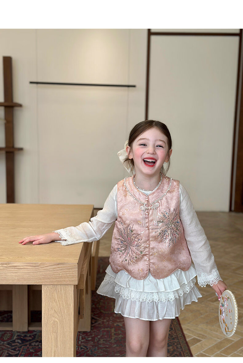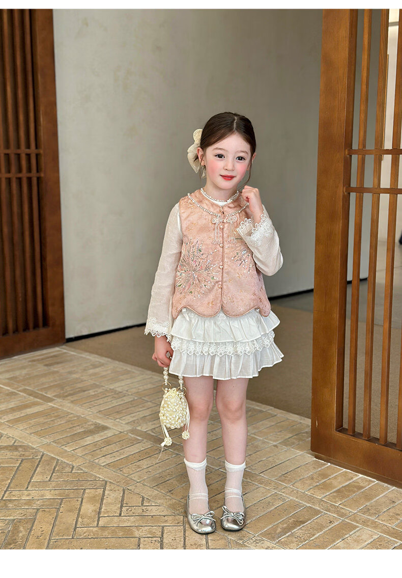 栀了成长记童装女童新中式圆领马甲2026春季儿童国风亮片无袖上衣 粉色 马甲 100 cm