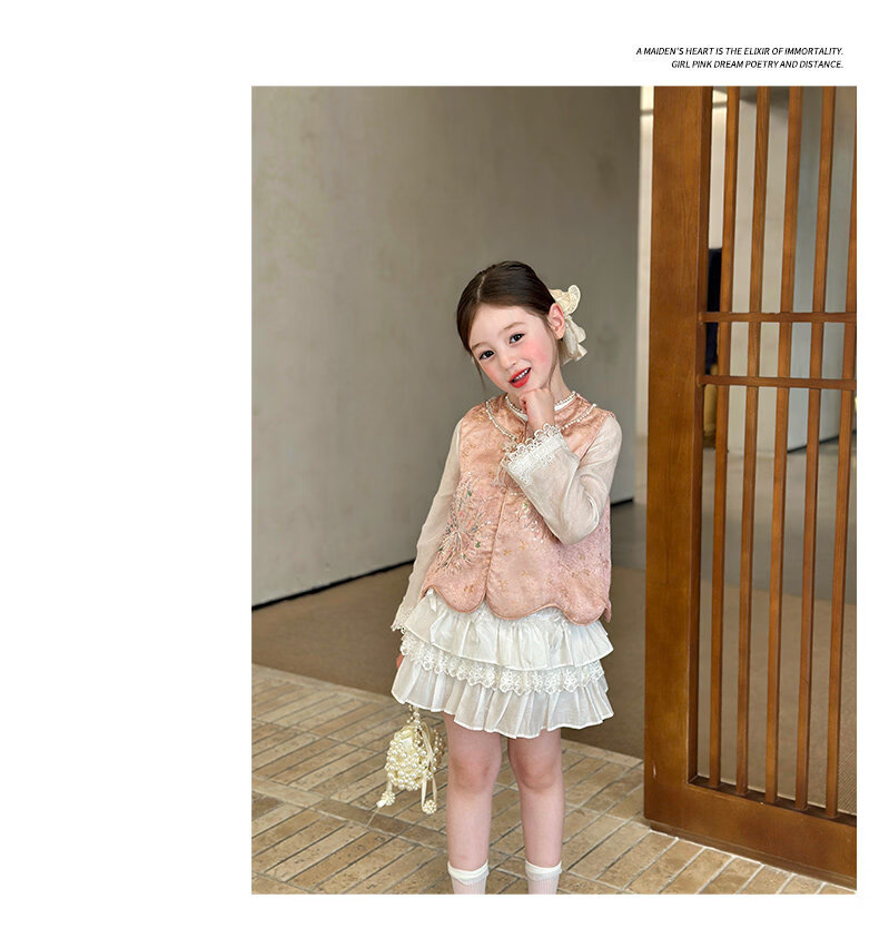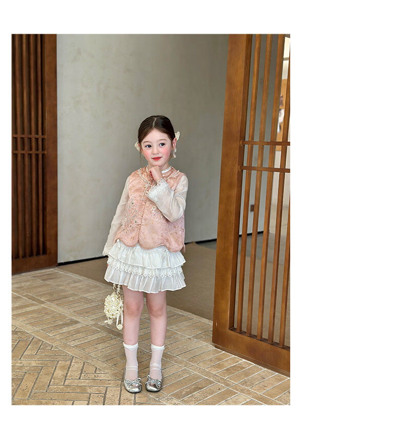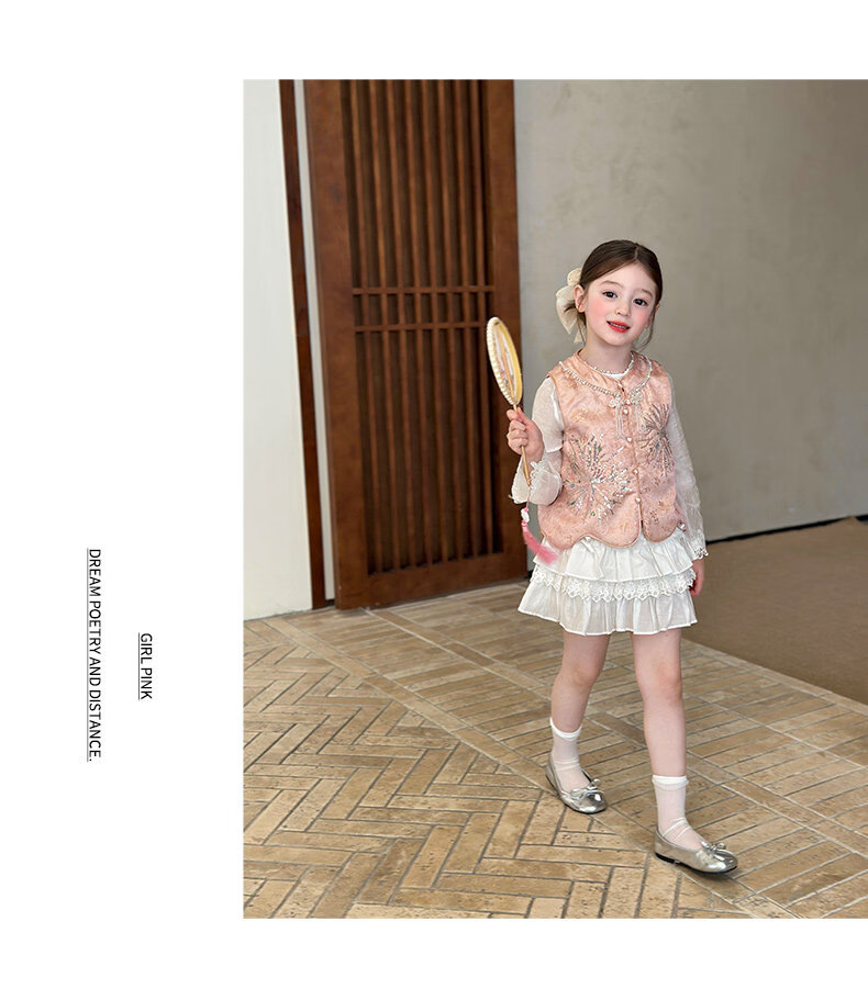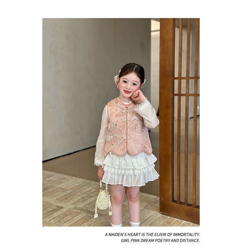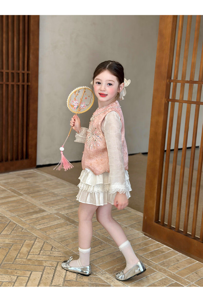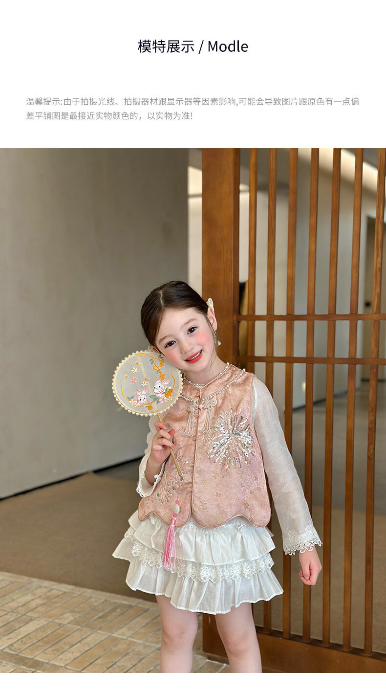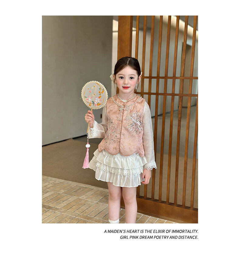 栀了成长记童装女童新中式圆领马甲2026春季儿童国风亮片无袖上衣 粉色 马甲 100 cm