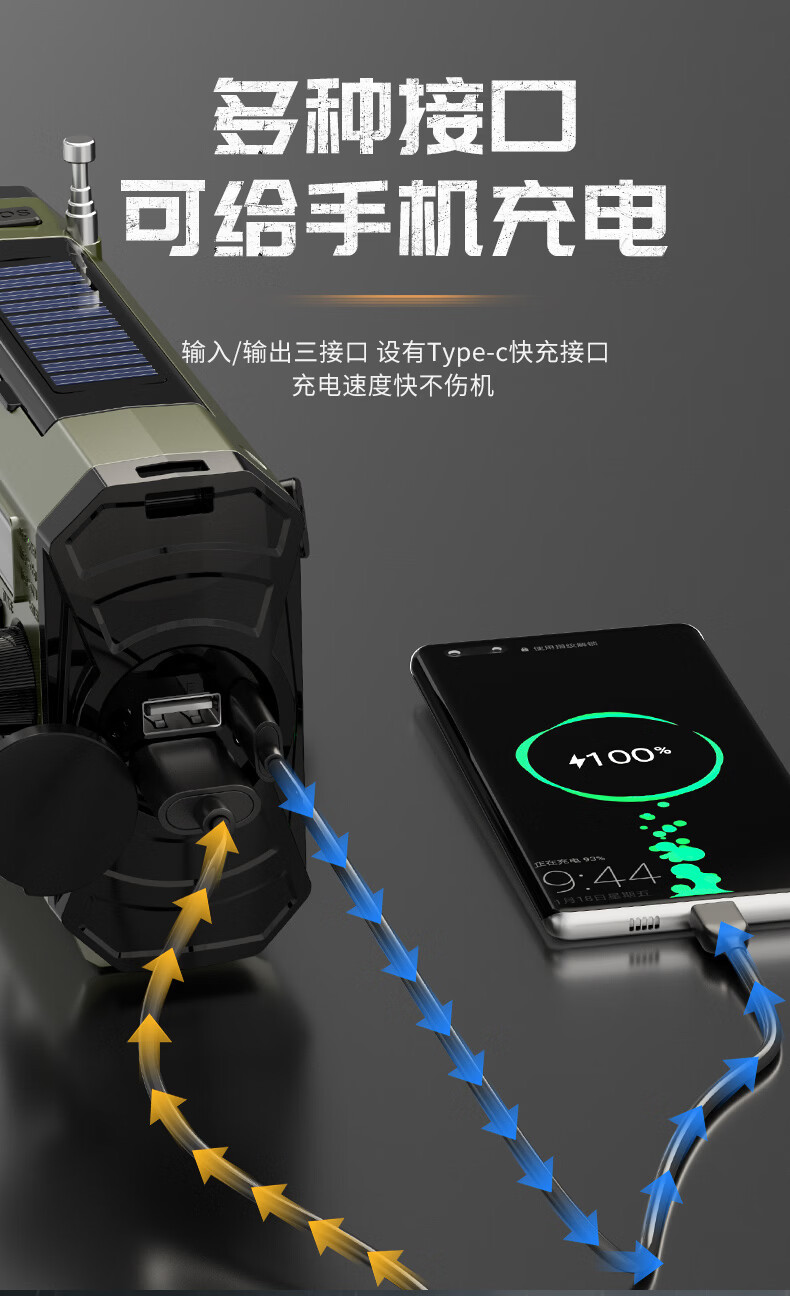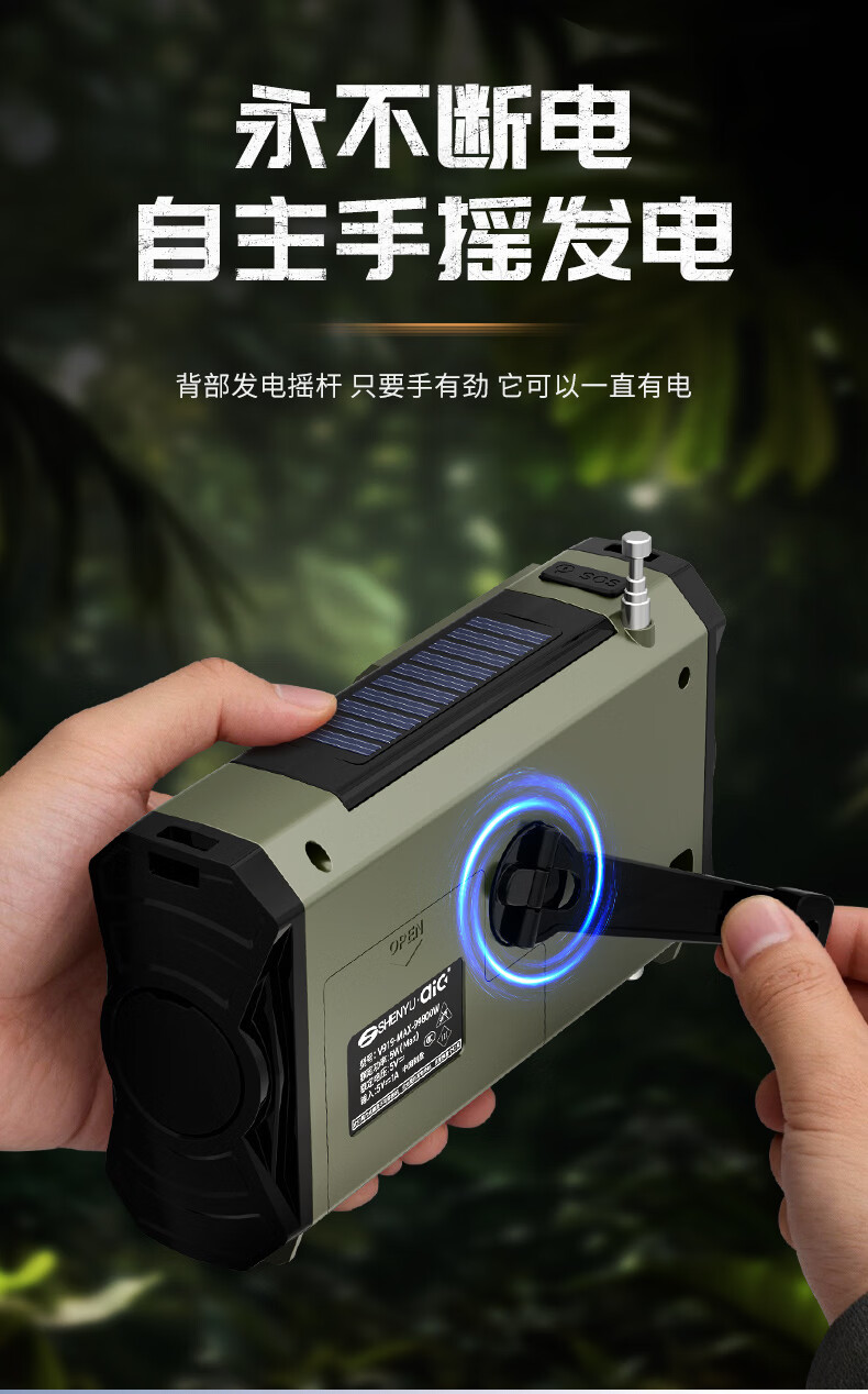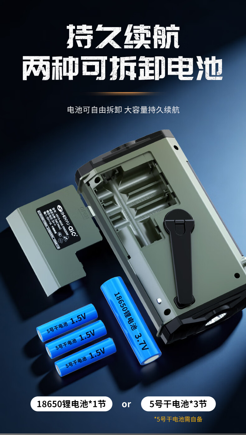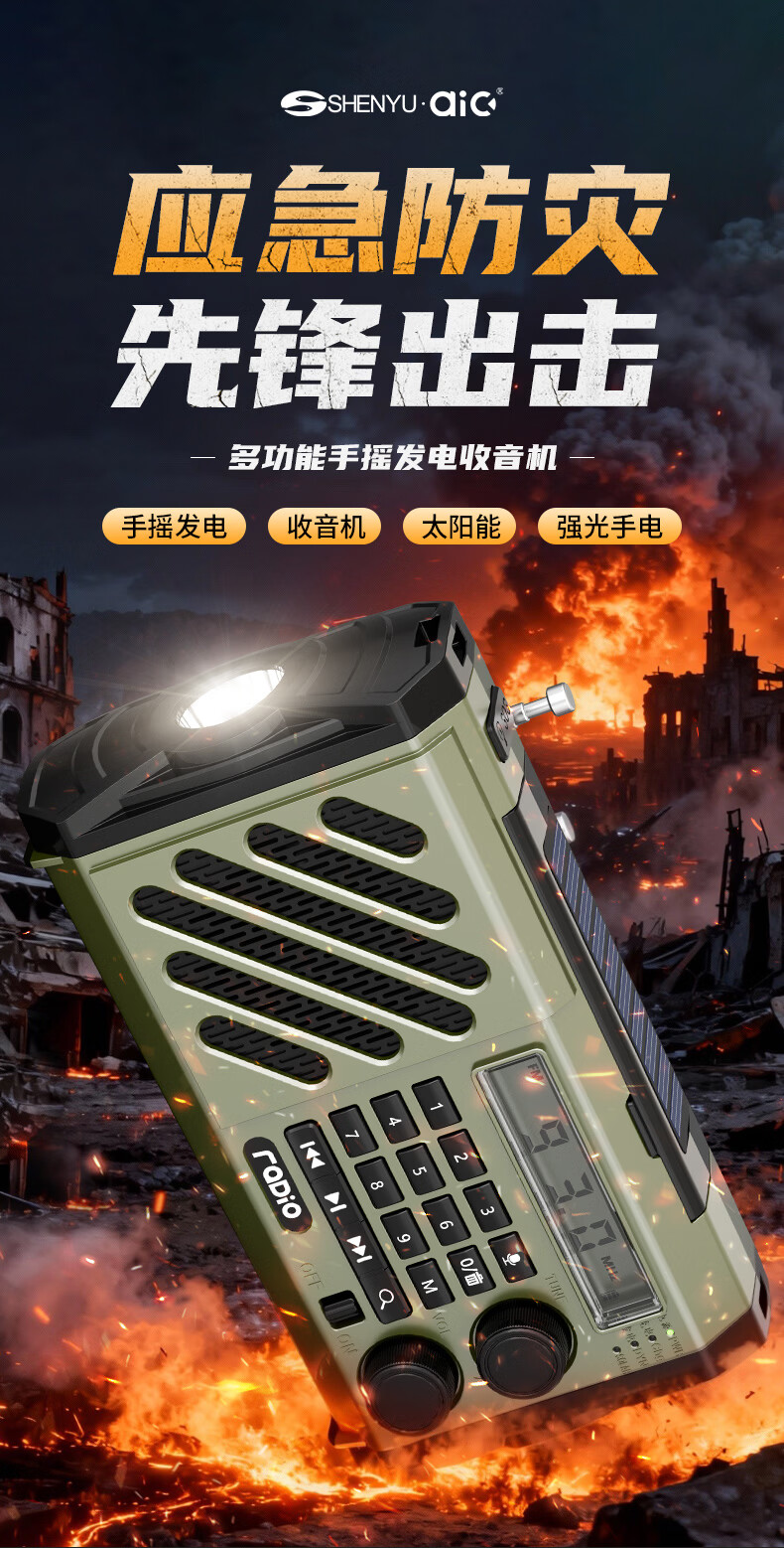 SHENYU应急战备救援防灾收音机手电筒高亮LED手摇太阳能充电sos户外照明 应急防灾-太阳能充电-手摇充电-输出-SOS