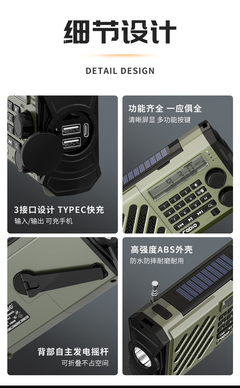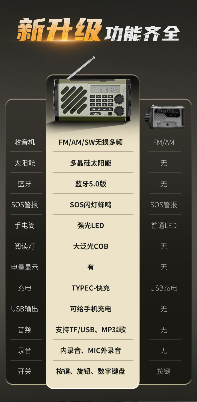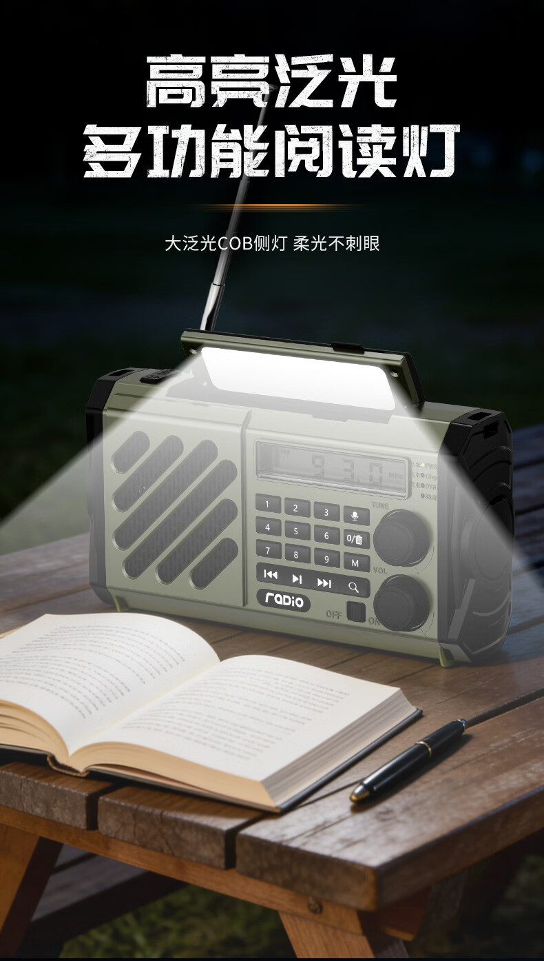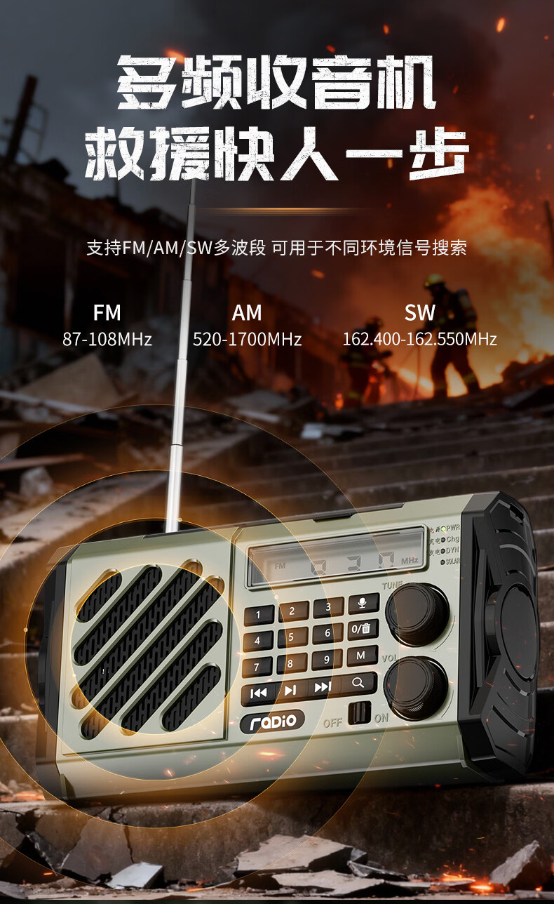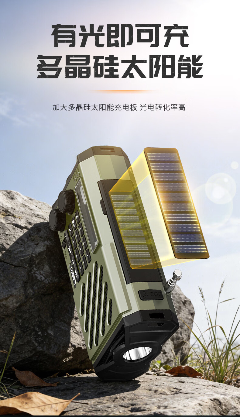 SHENYU应急战备救援防灾收音机手电筒高亮LED手摇太阳能充电sos户外照明 应急防灾-太阳能充电-手摇充电-输出-SOS