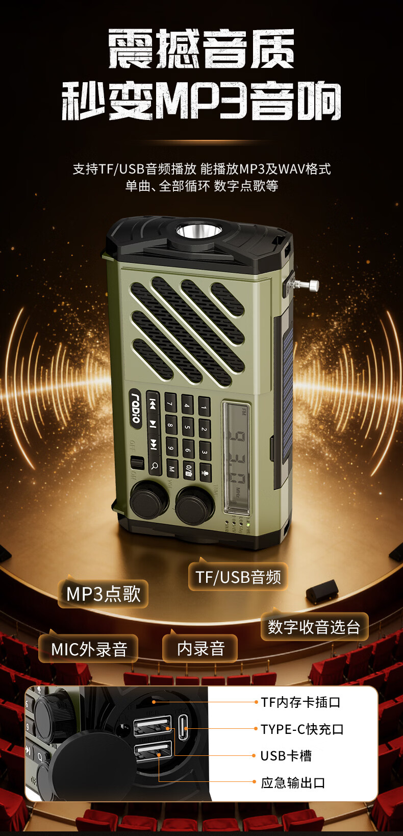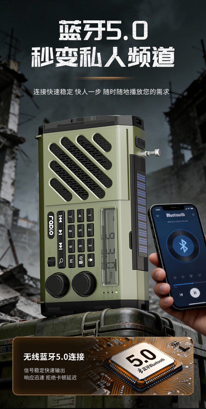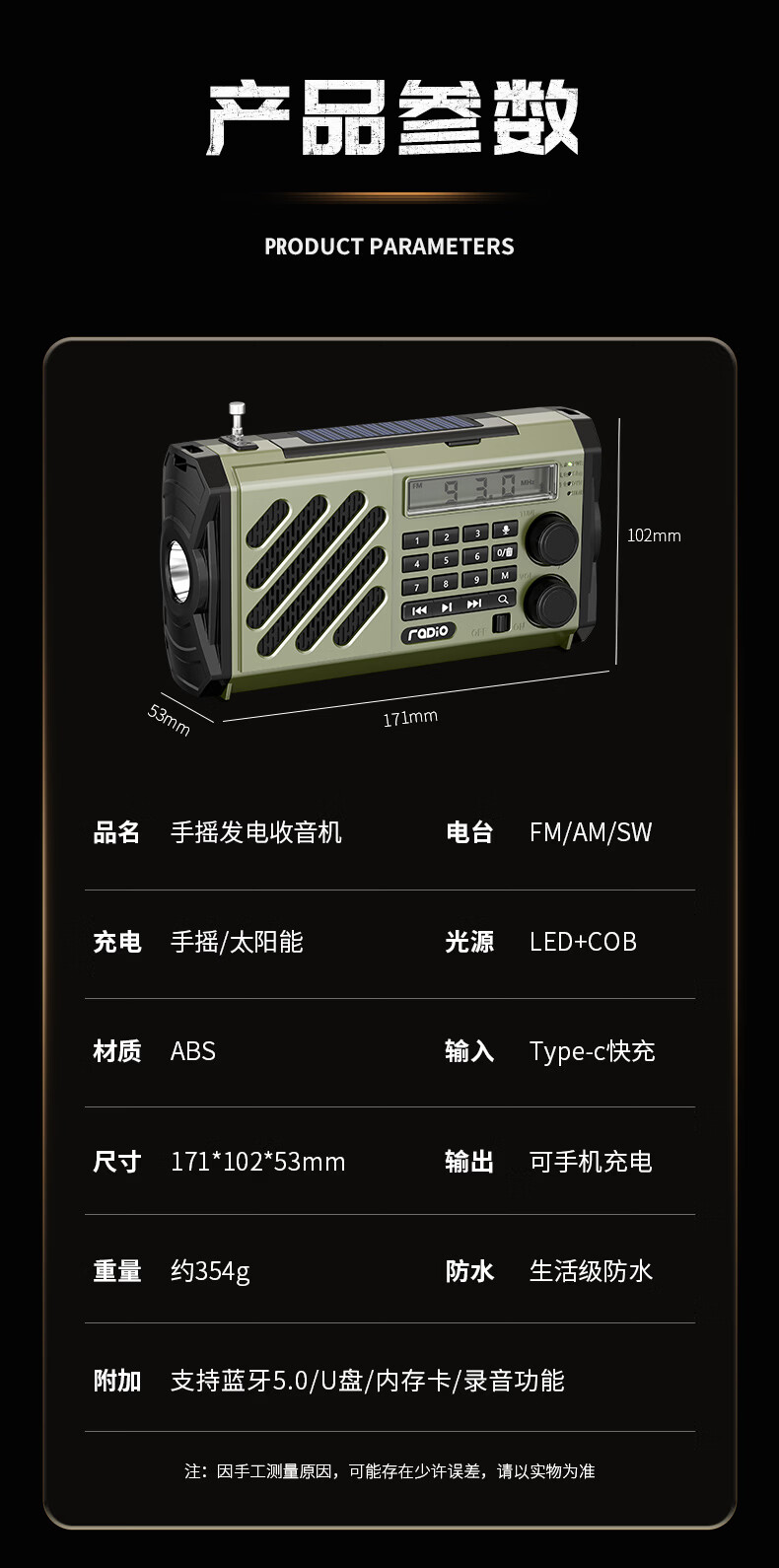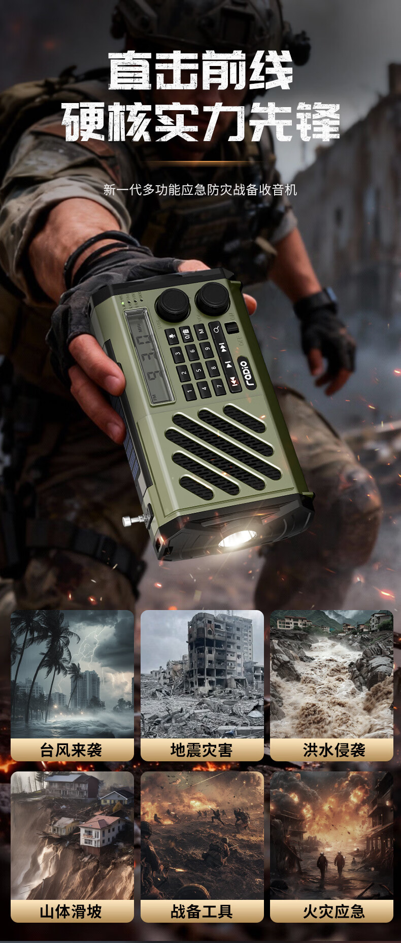 SHENYU应急战备救援防灾收音机手电筒高亮LED手摇太阳能充电sos户外照明 应急防灾-太阳能充电-手摇充电-输出-SOS