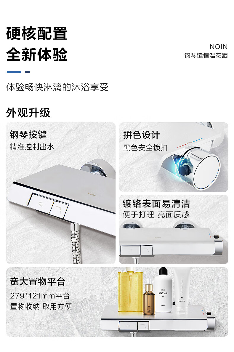 悍高(HIGOLD)淋浴花洒 四功能数显花洒套装浴室枪灰色家用明装淋浴套装 四功能天瀑增压花洒(枪灰色)