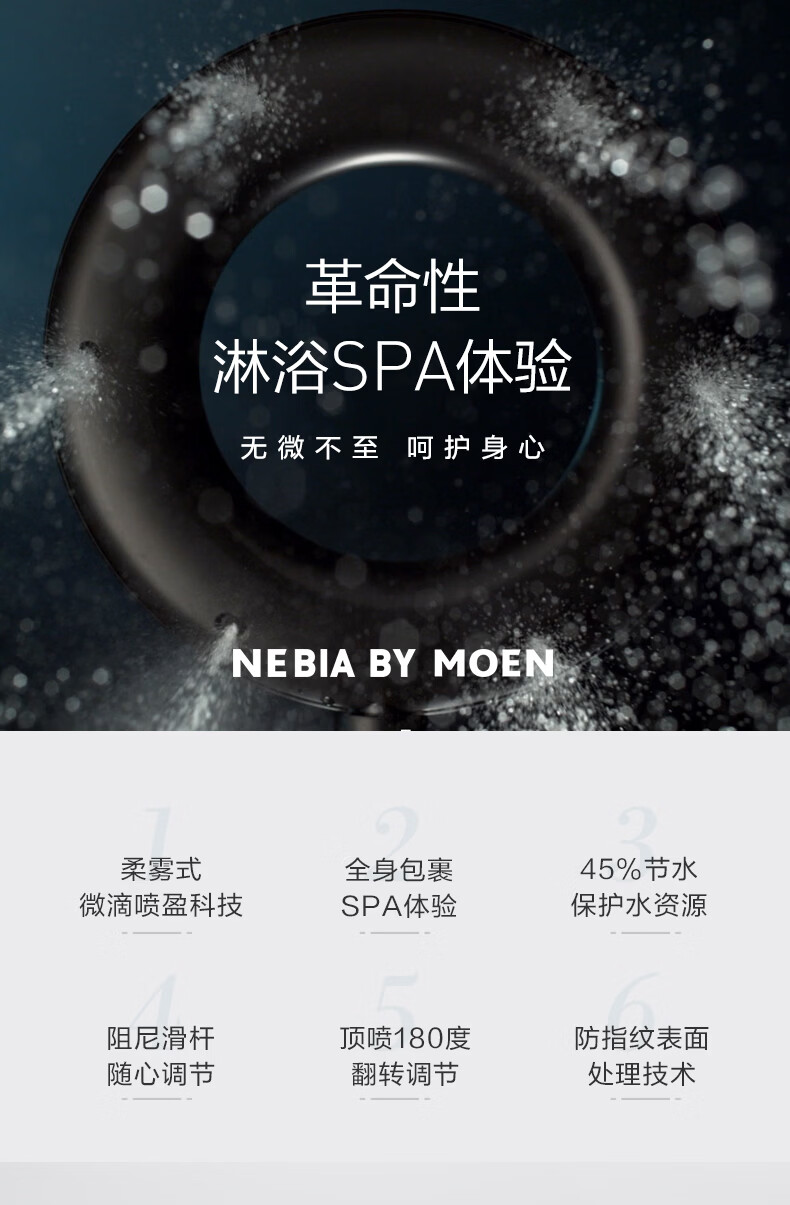摩恩(MOEN)【新品上市首发预售】弥漫系列SPA柔雾式微滴喷全身包裹雨淋套装 Nebia柔雾喷盈四功能恒温款下出水