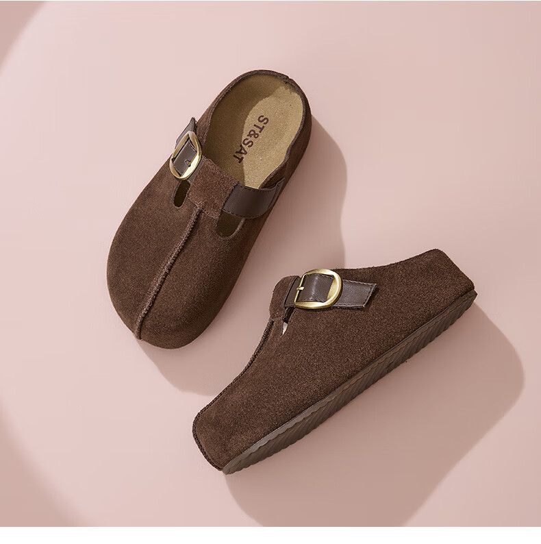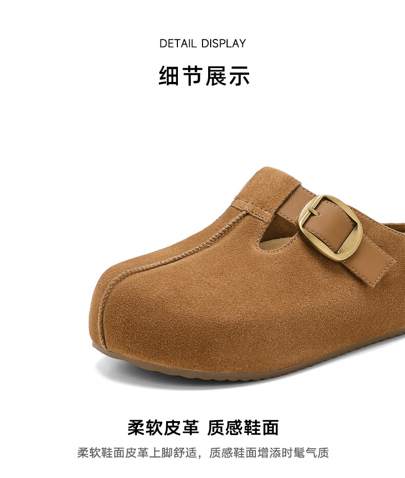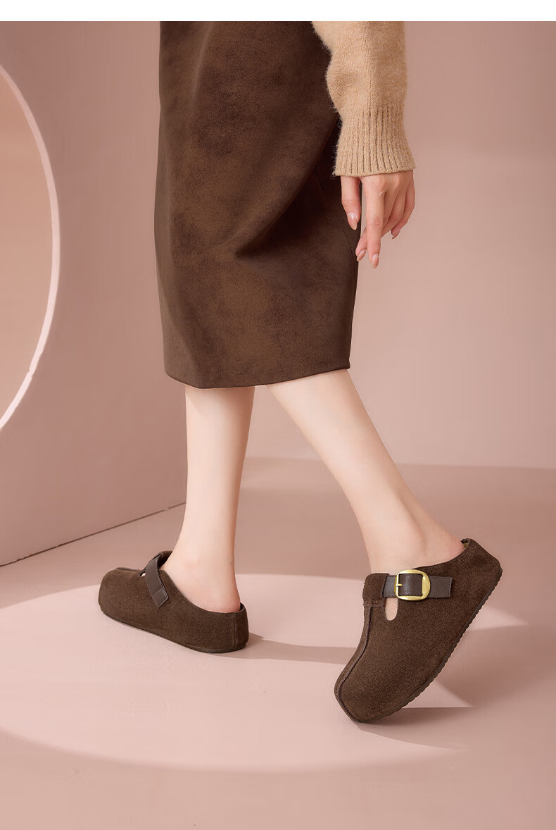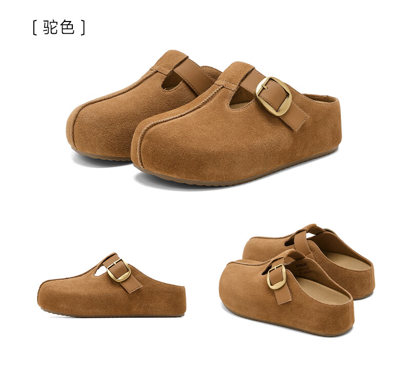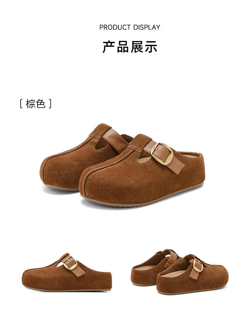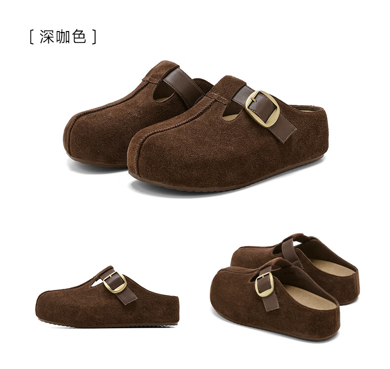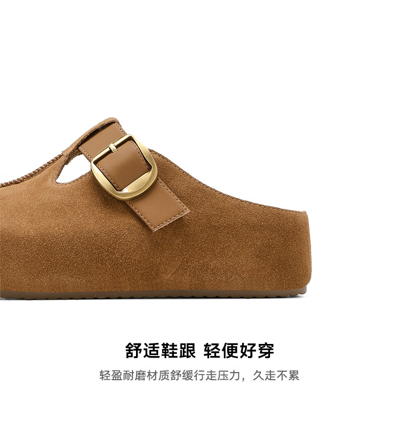星期六真皮半包勃肯鞋女2025新款秋冬厚底增高包头拖外穿懒人一脚蹬拖鞋 棕色 【四季百搭】跟高3cm 35