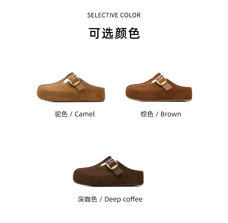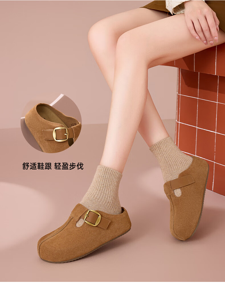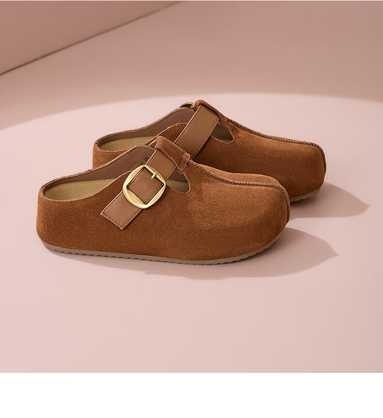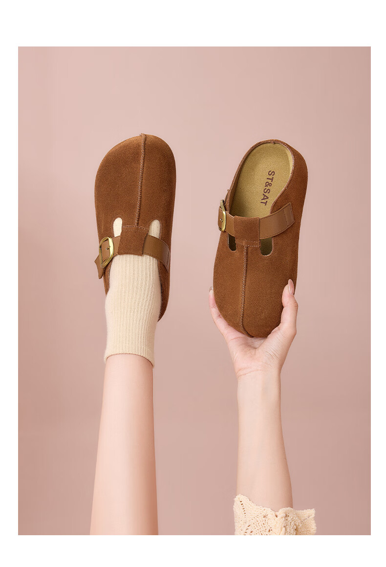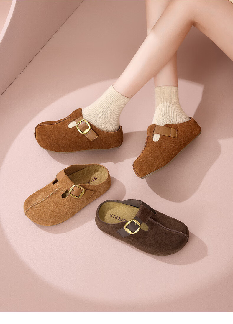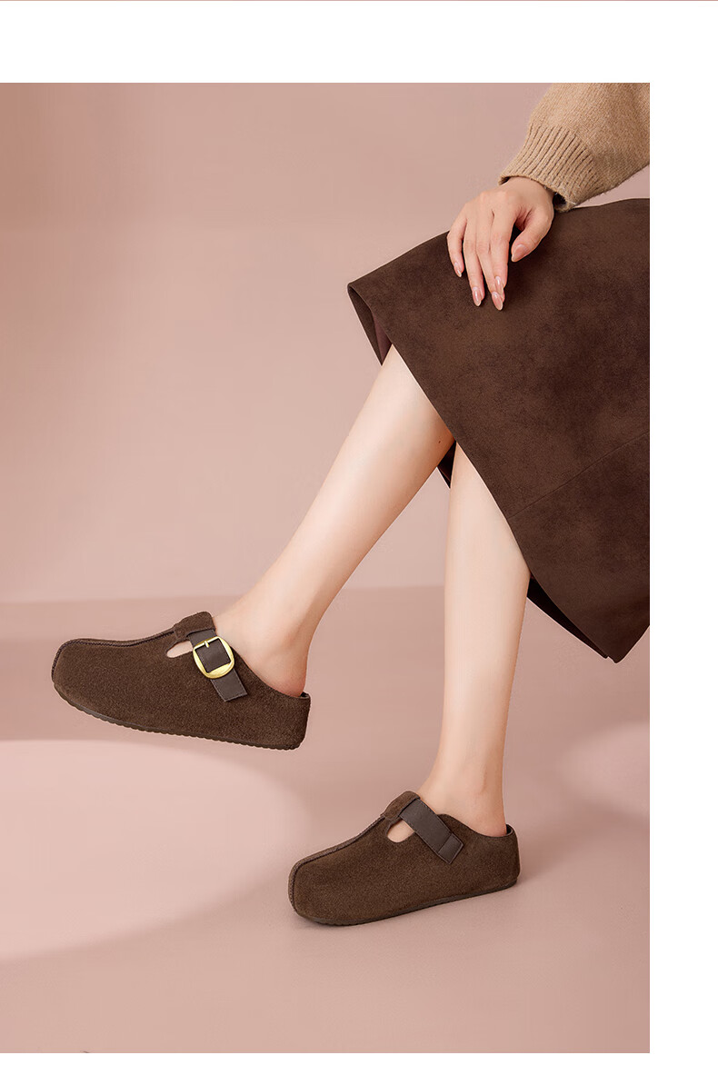 星期六真皮半包勃肯鞋女2025新款秋冬厚底增高包头拖外穿懒人一脚蹬拖鞋 棕色 【四季百搭】跟高3cm 35