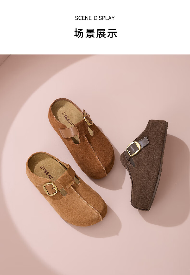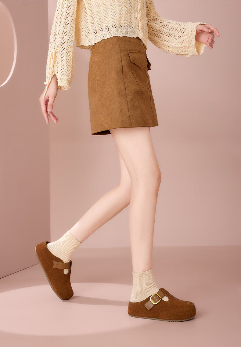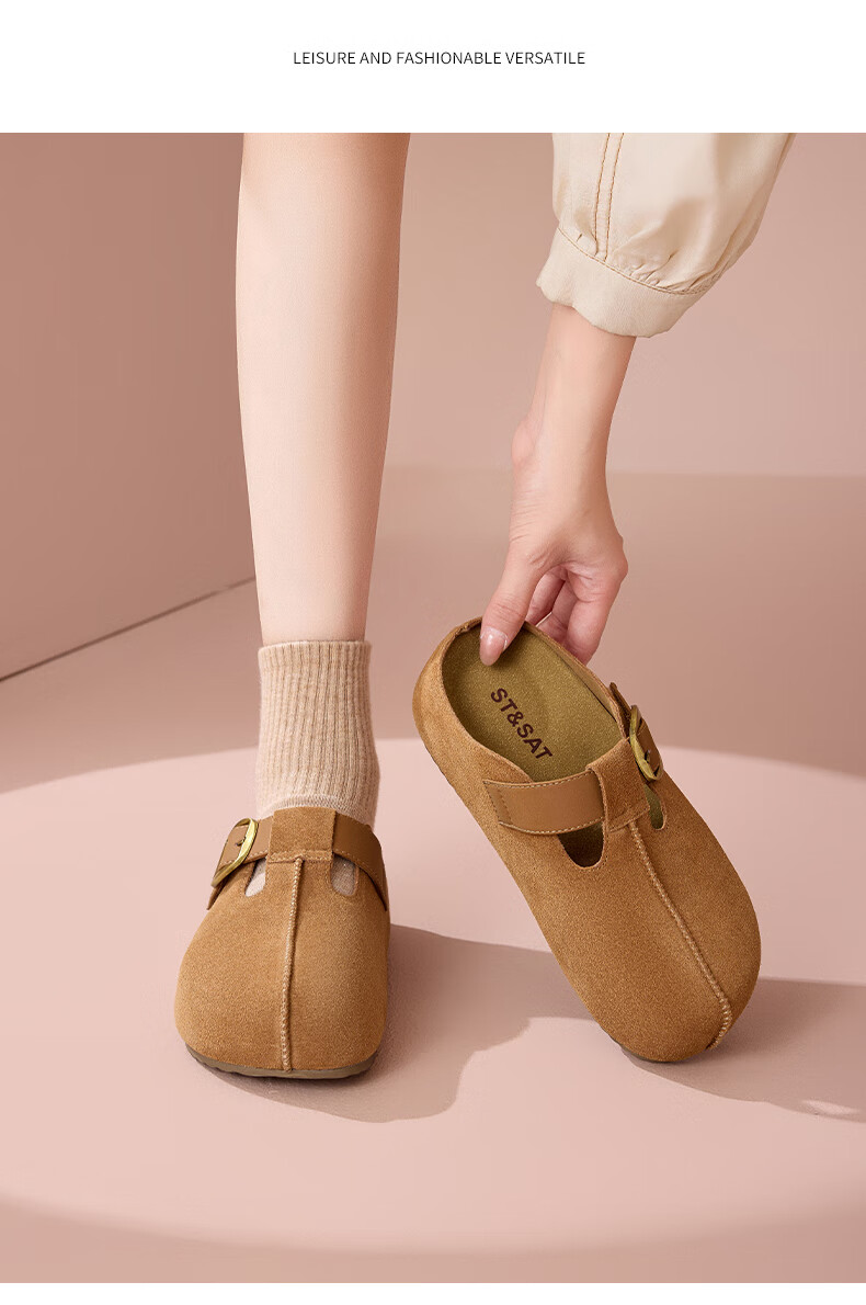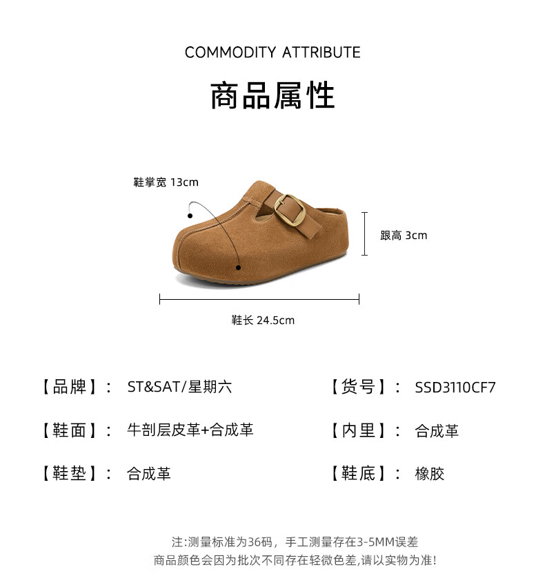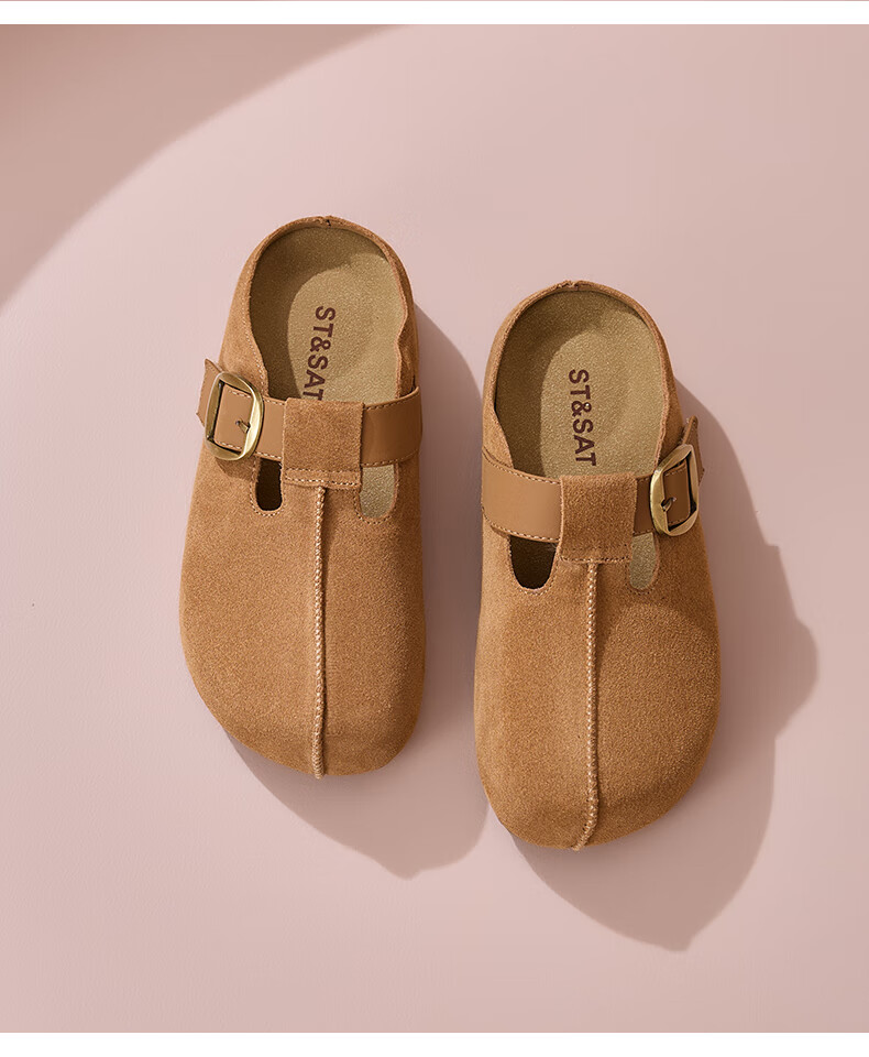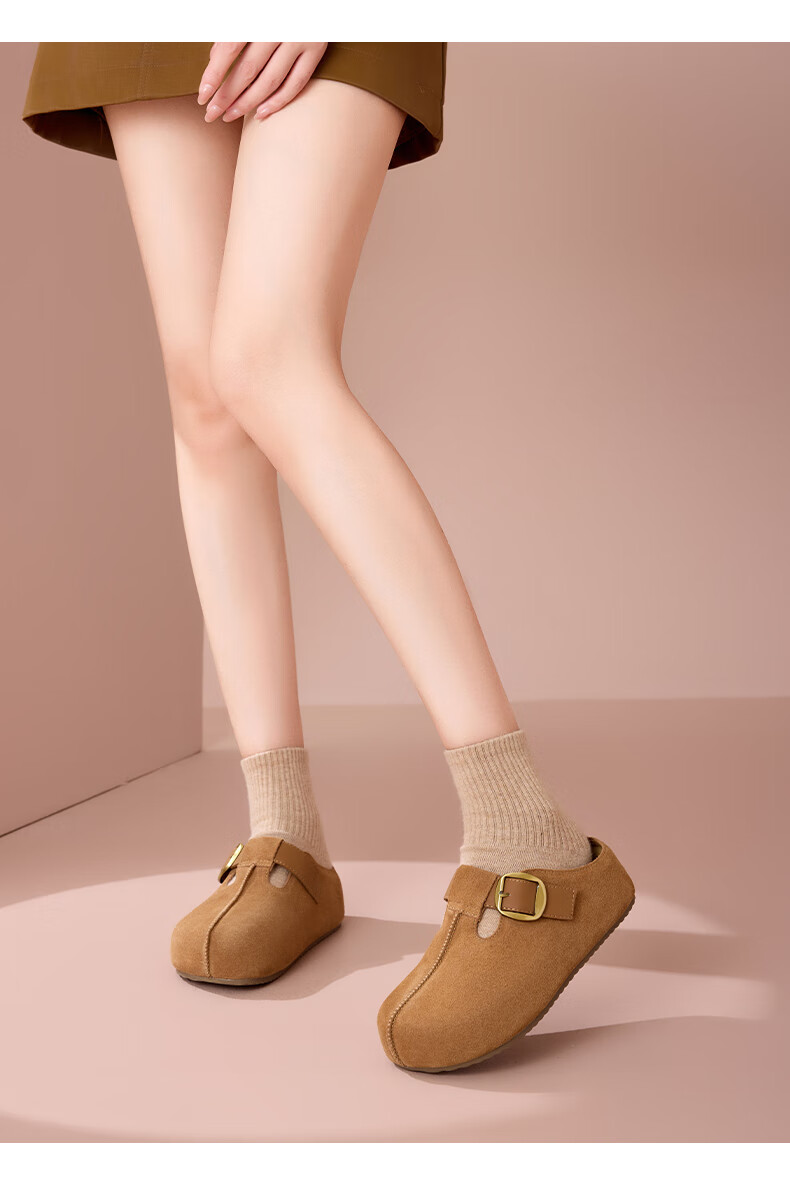 星期六真皮半包勃肯鞋女2025新款秋冬厚底增高包头拖外穿懒人一脚蹬拖鞋 棕色 【四季百搭】跟高3cm 35