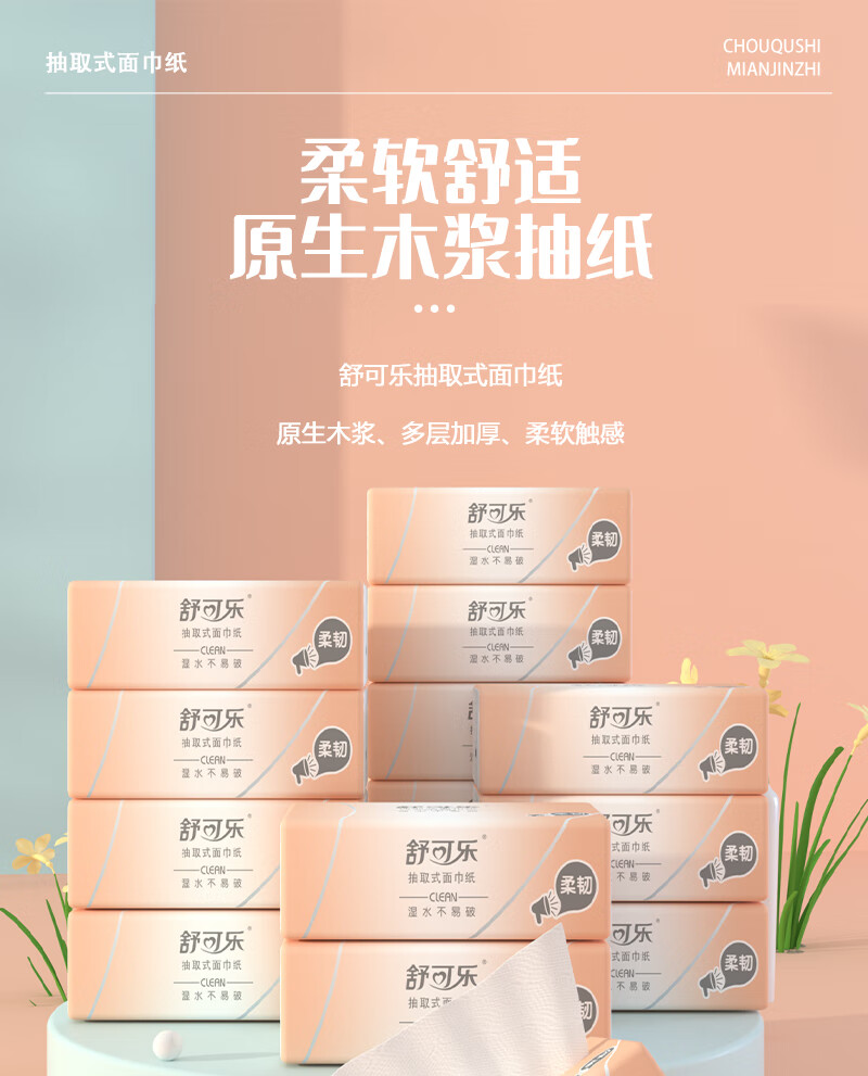 舒可乐【甄选直发】原木纸巾抽纸小包纸抽一次性餐巾纸家用囤货卫生纸厕 4层 160张*20包