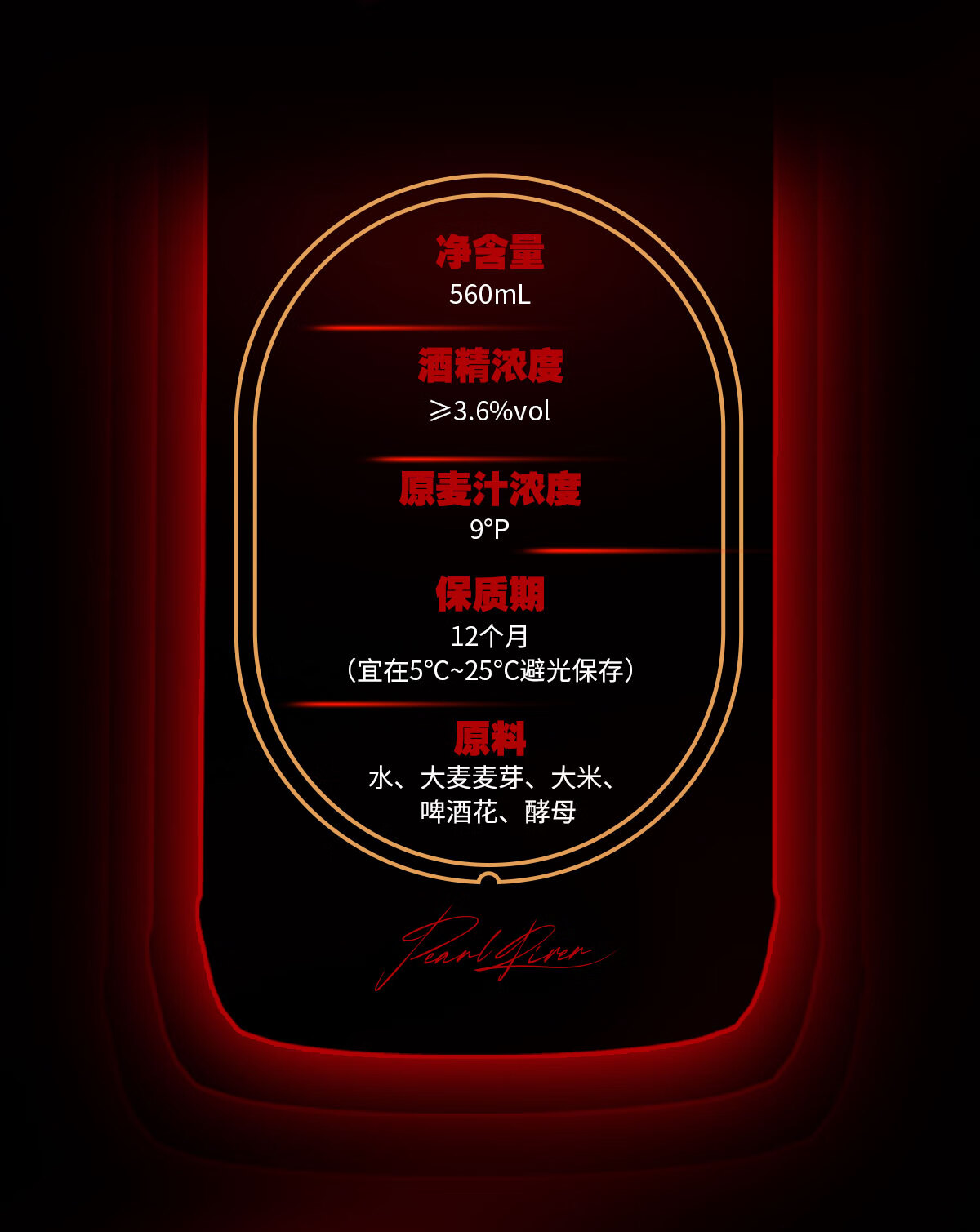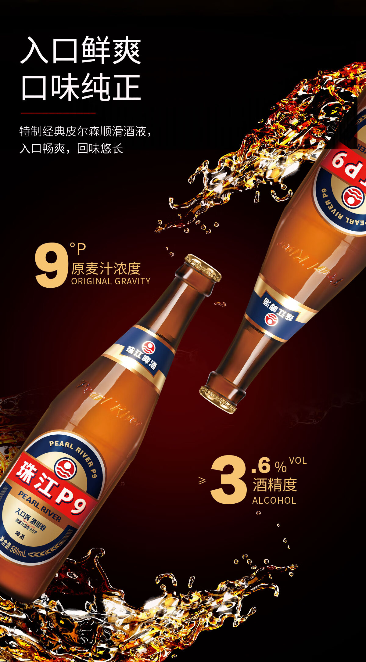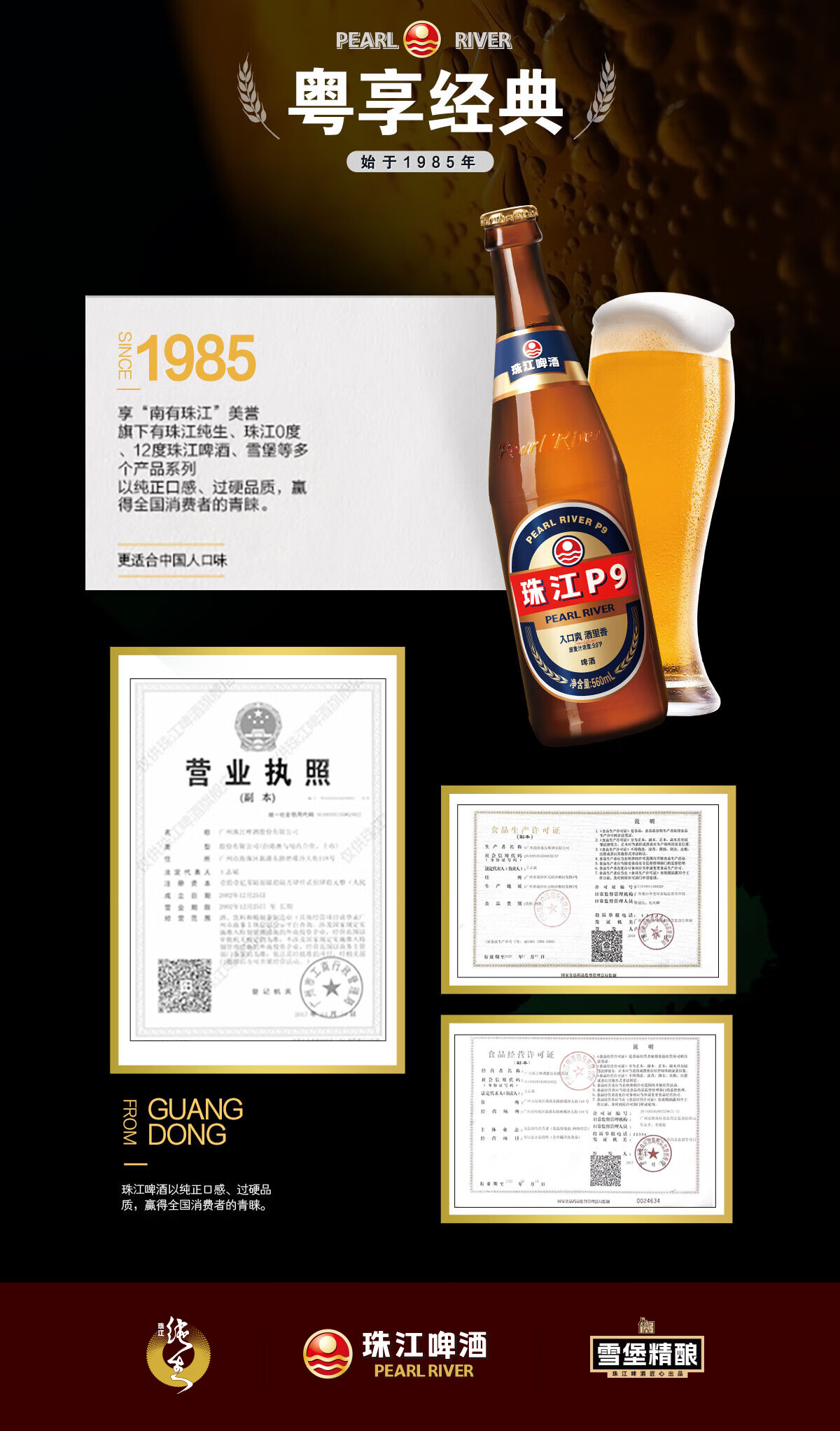 珠江啤酒9度 珠江P9啤酒 560ml*12瓶 整箱装 京东自营