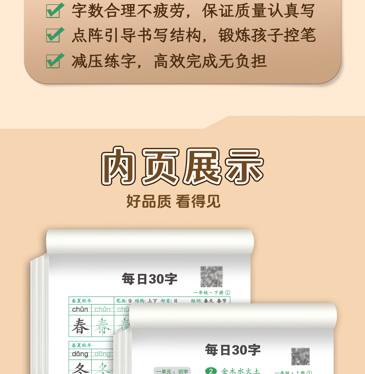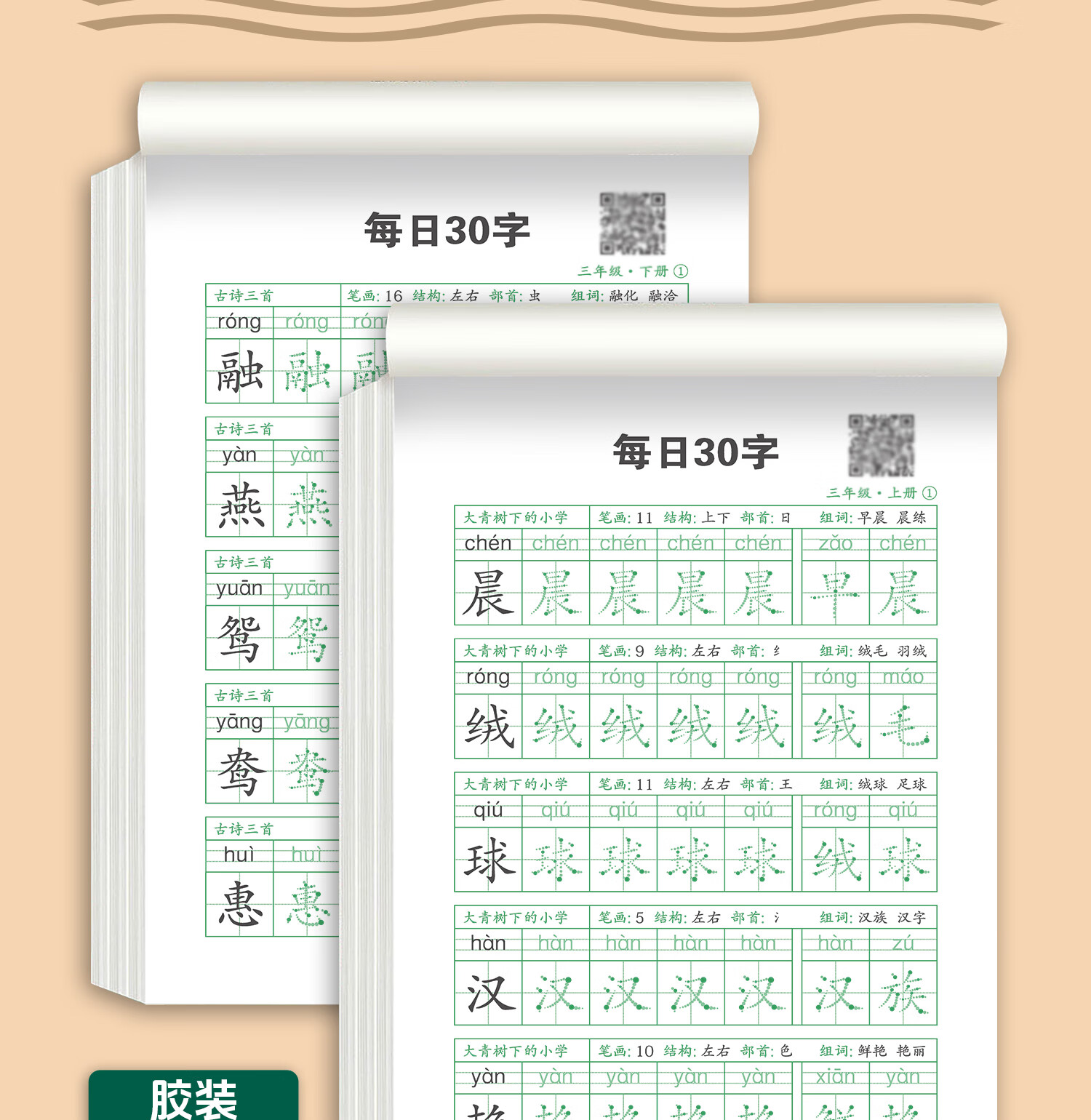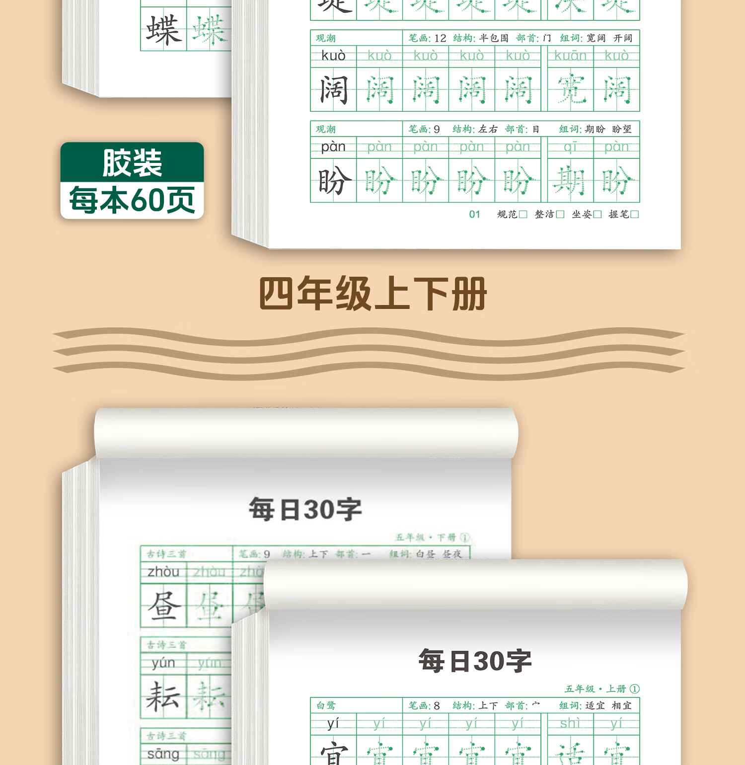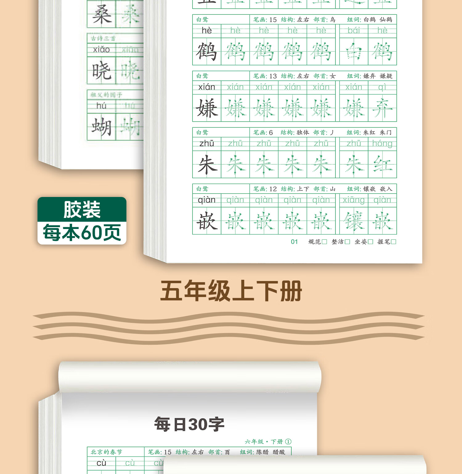 嘟乐仔学生一年级减压练字帖语文字帖点阵每日30字生字描红练字本上册 【课本同步】1年级 上册3本(3本/60页)