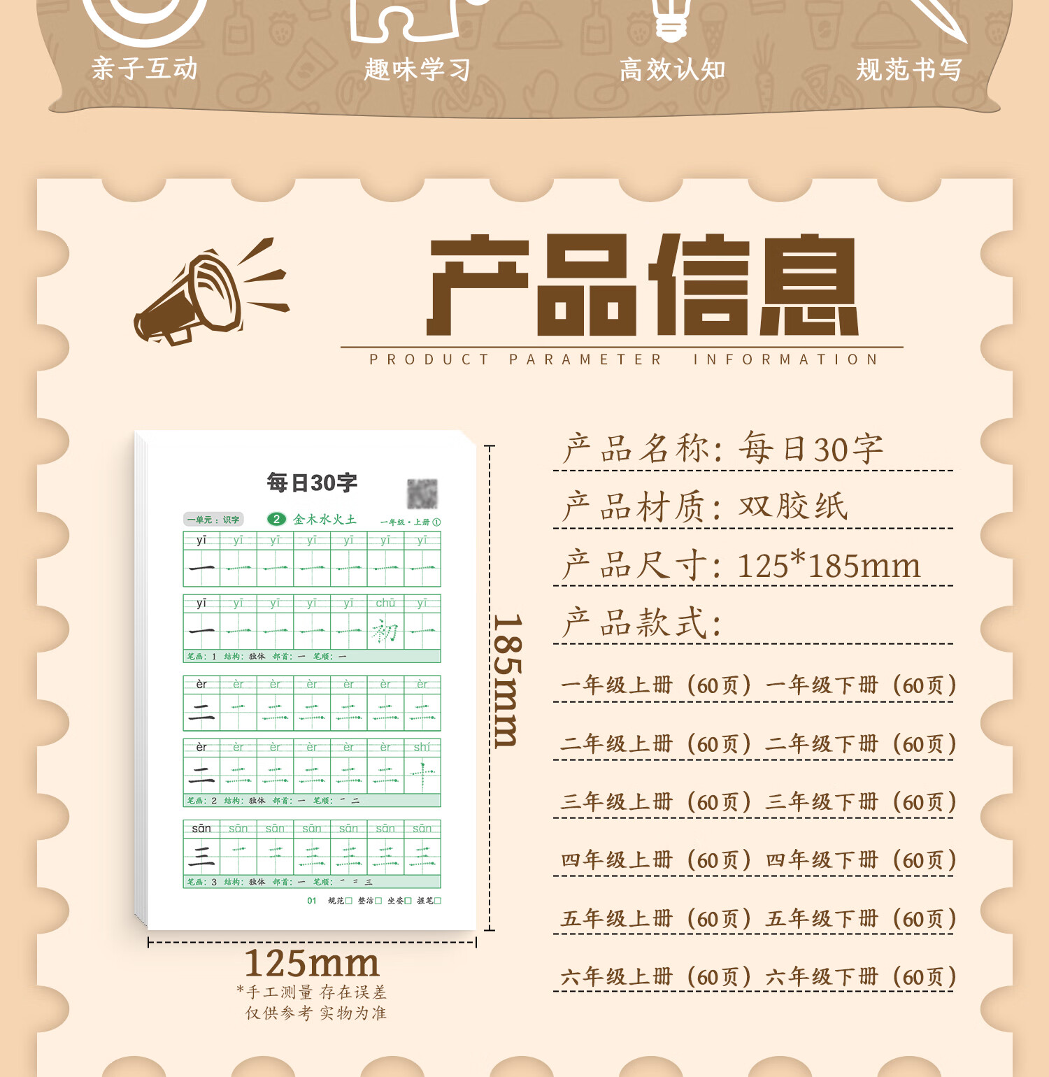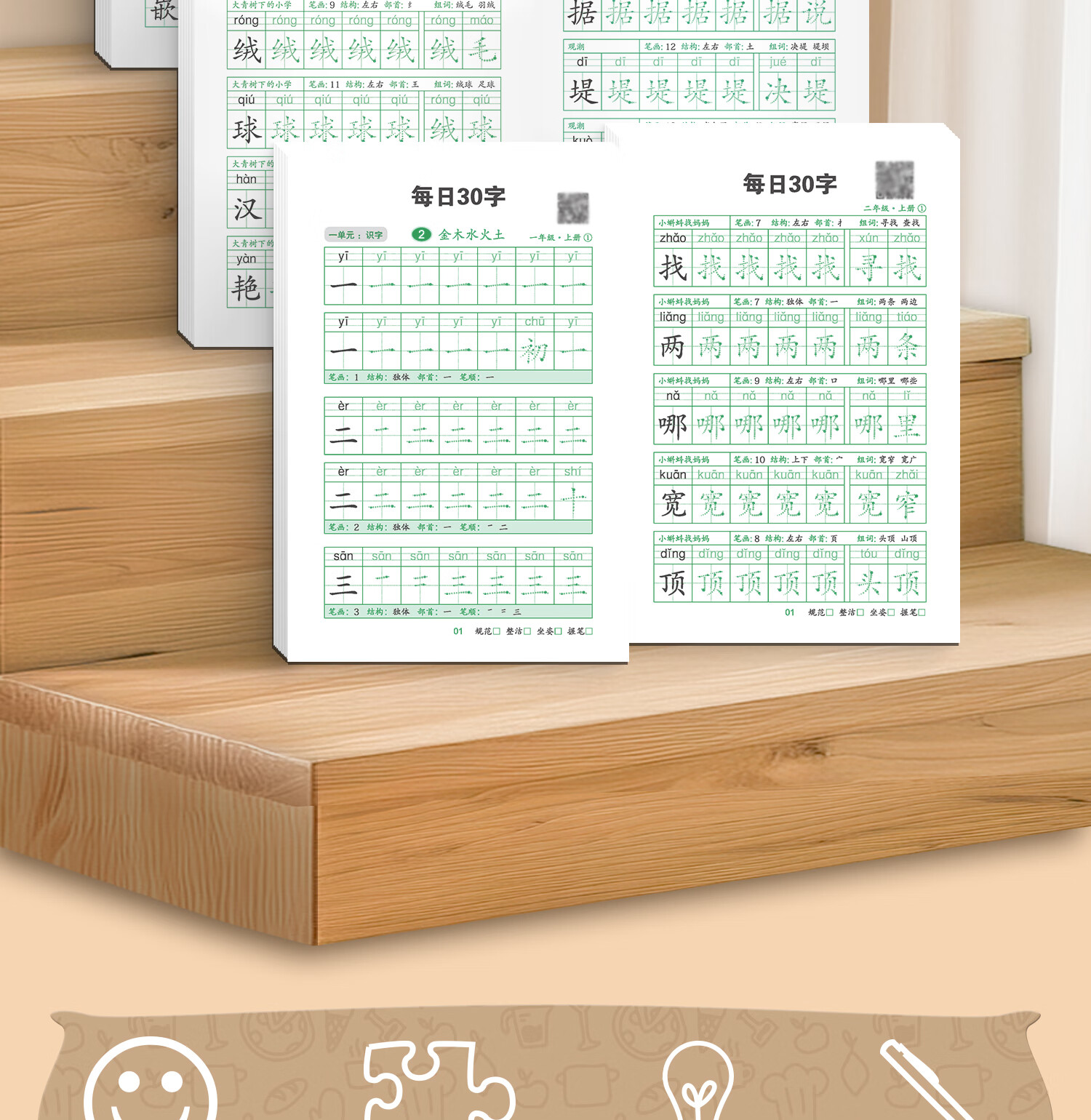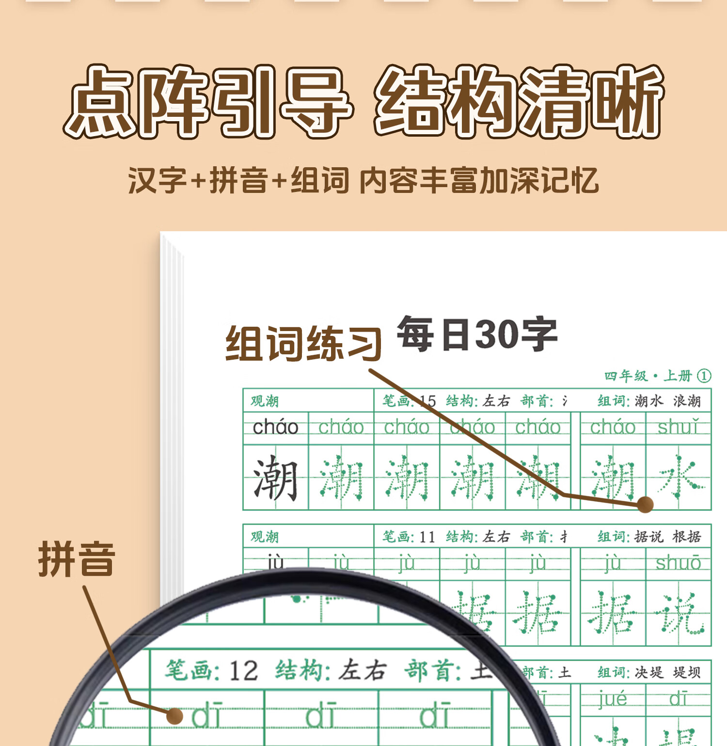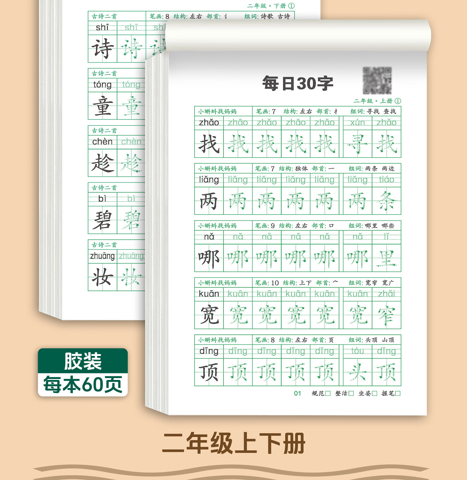 嘟乐仔学生一年级减压练字帖语文字帖点阵每日30字生字描红练字本上册 【课本同步】1年级 上册3本(3本/60页)