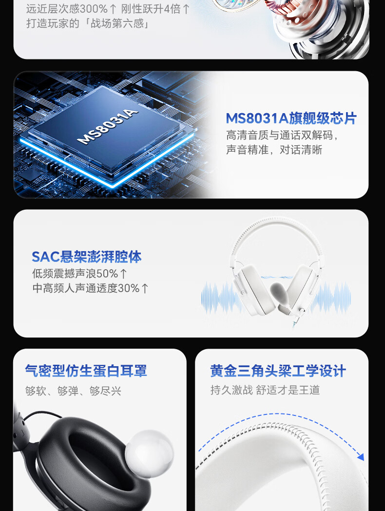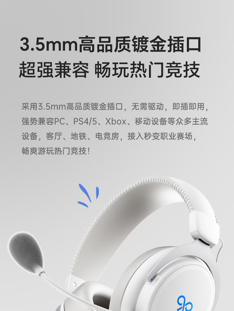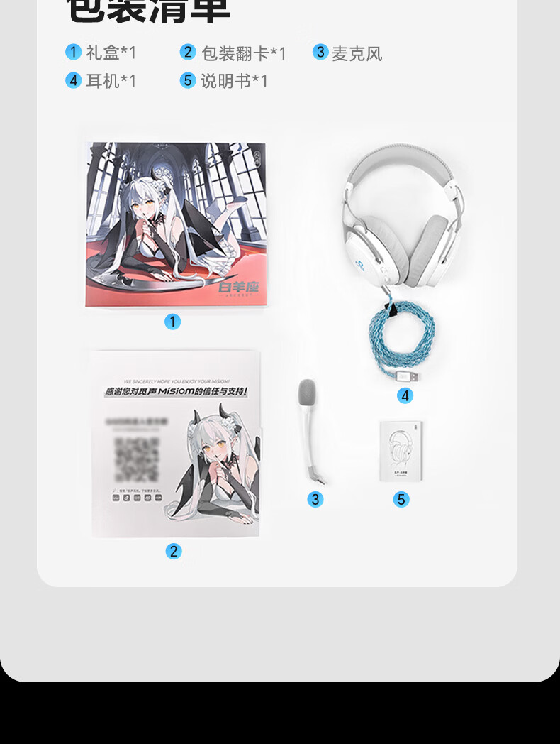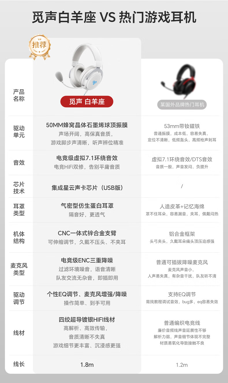 觅声白羊座游戏耳机头戴式有线带麦电竞专用电脑耳麦三角洲行动3.5/usb接口虚拟7.1音效声卡降噪麦克风 USB接口雪域白-赠耳机支架-集成星云声卡芯片