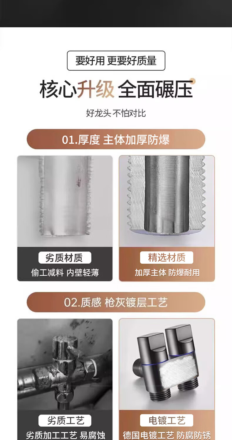 卓贝诗厨房水龙头单冷精铜主体万向旋转增压防溅水洗菜盆洗碗池水槽龙头 冰川银【两档防溅】单冷龙头 加厚精铜主体丨单双槽通用