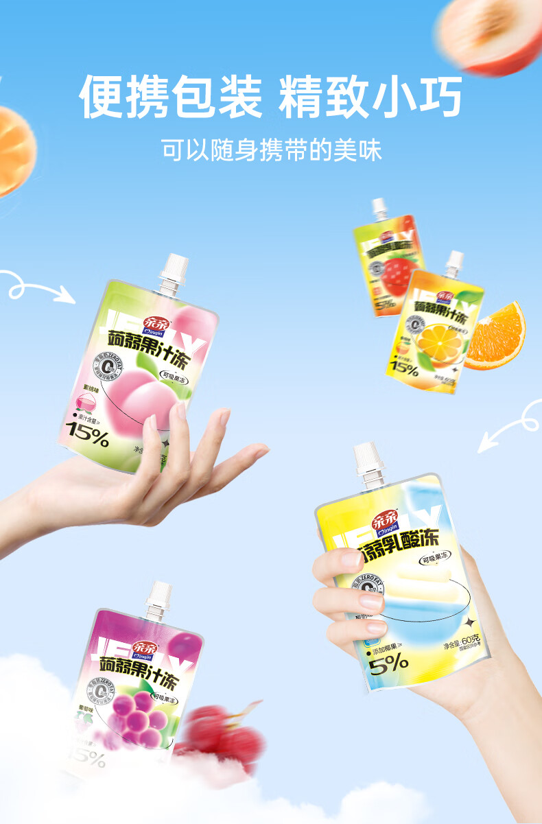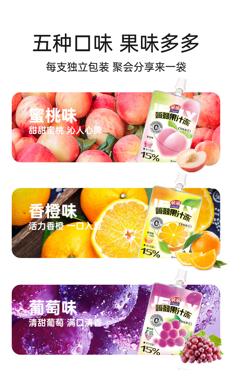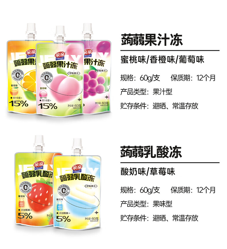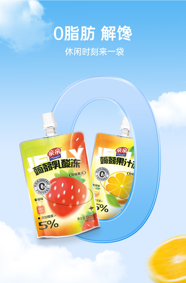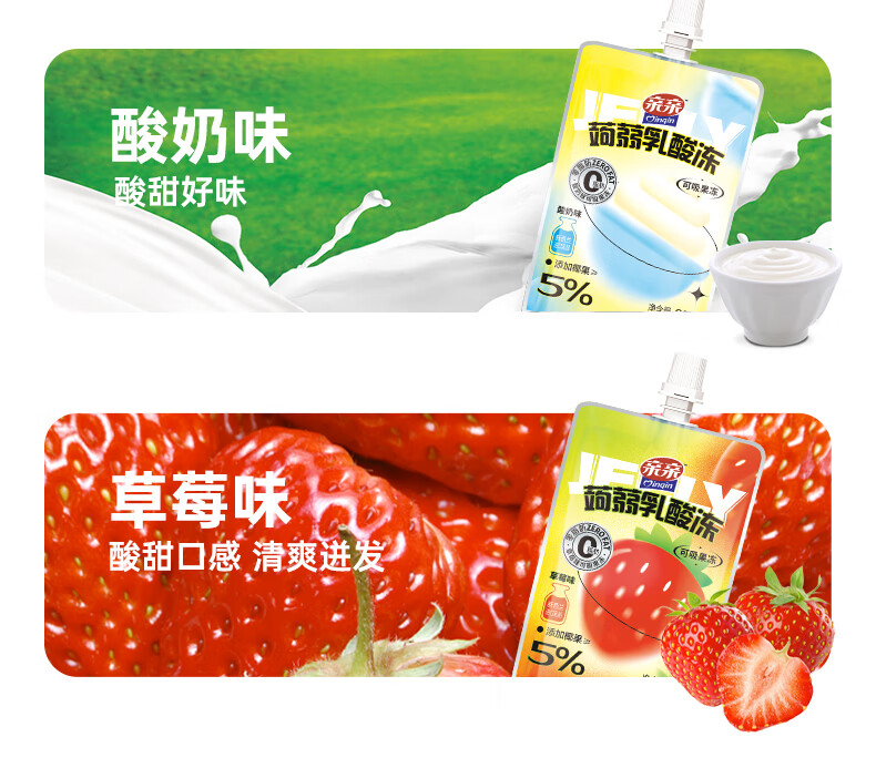 亲亲(Qinqin)蒟蒻吸吸果汁冻60g儿童休闲小零食冷藏口感更佳 蒟蒻乳酸冻(草莓味)60g1个