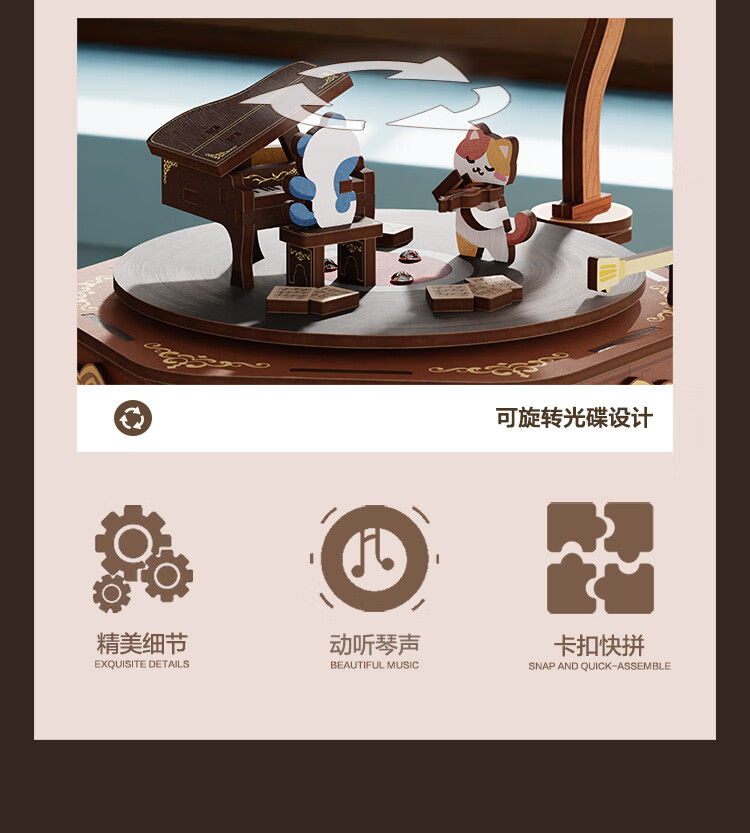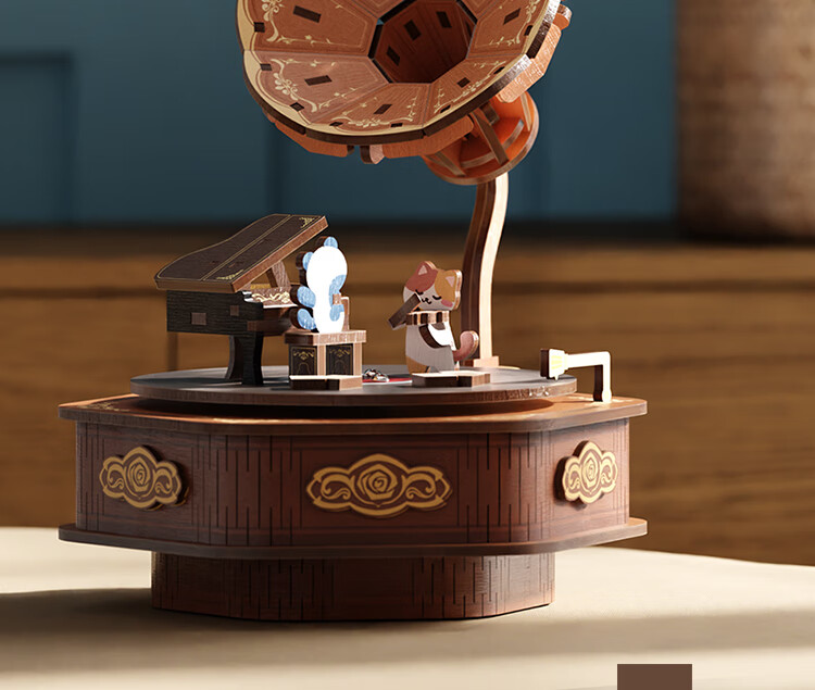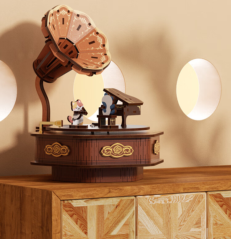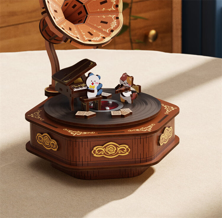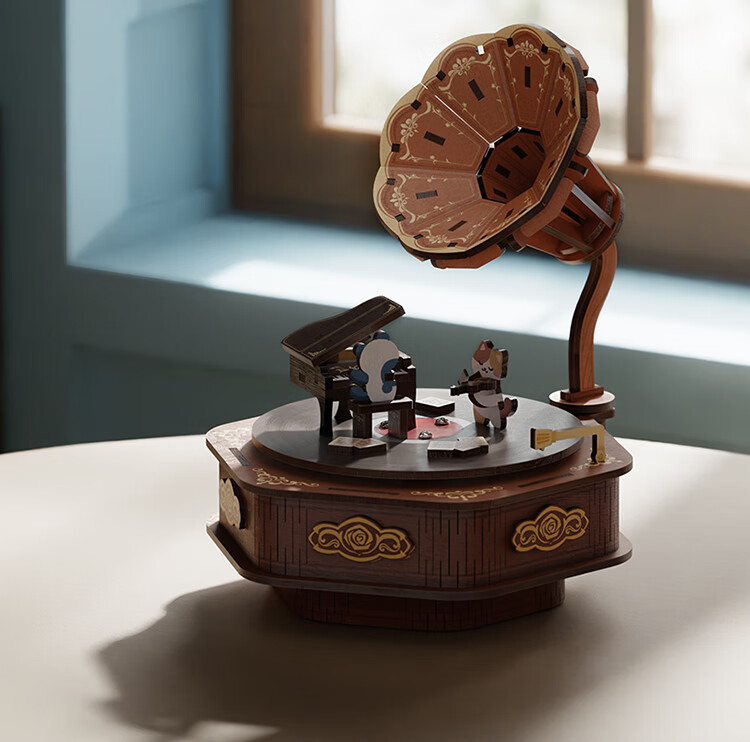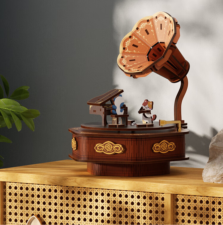 铭塔留声机八音盒音乐盒积木手工diy拼装模型玩具生日礼物 留声机八音盒